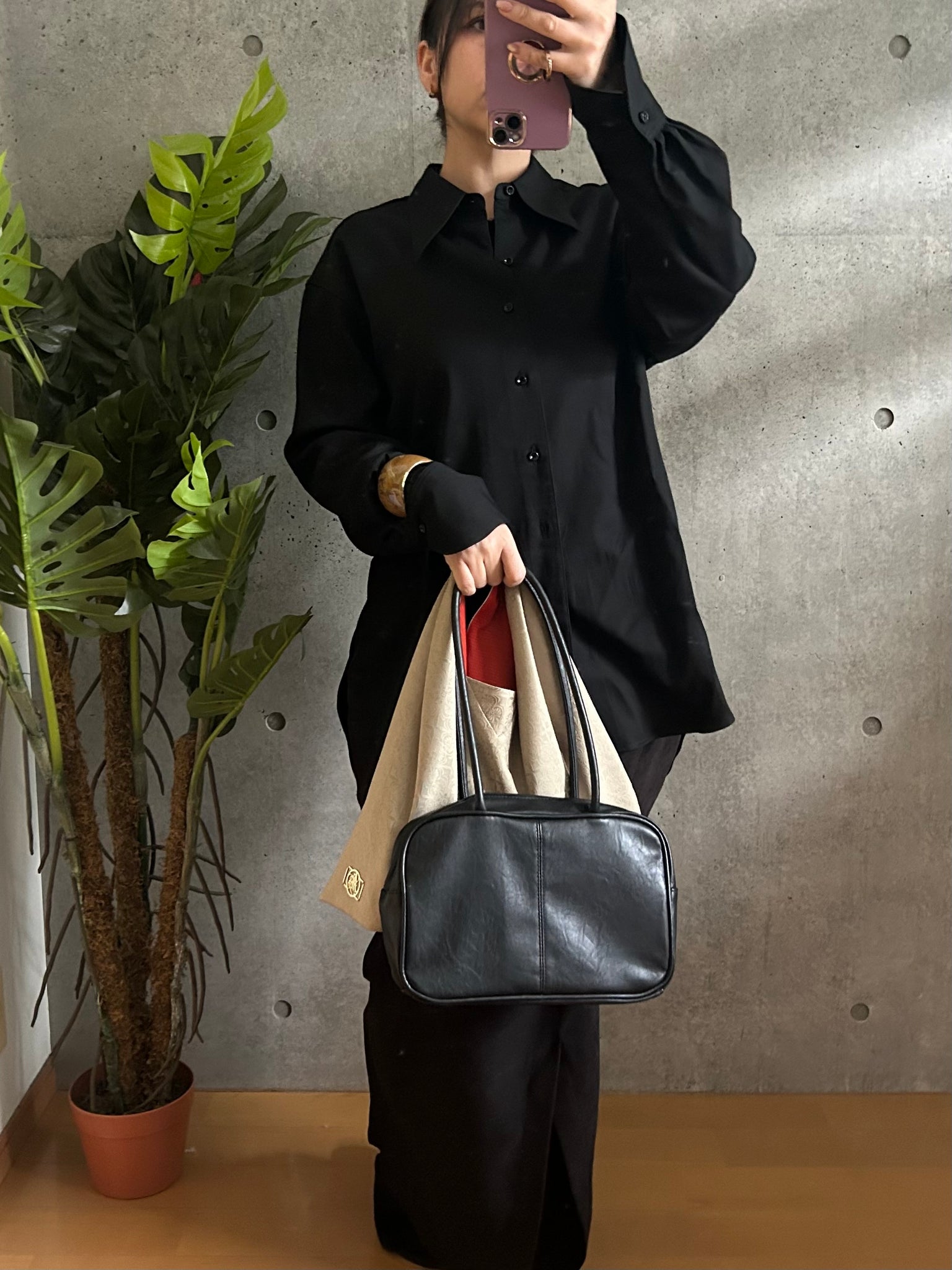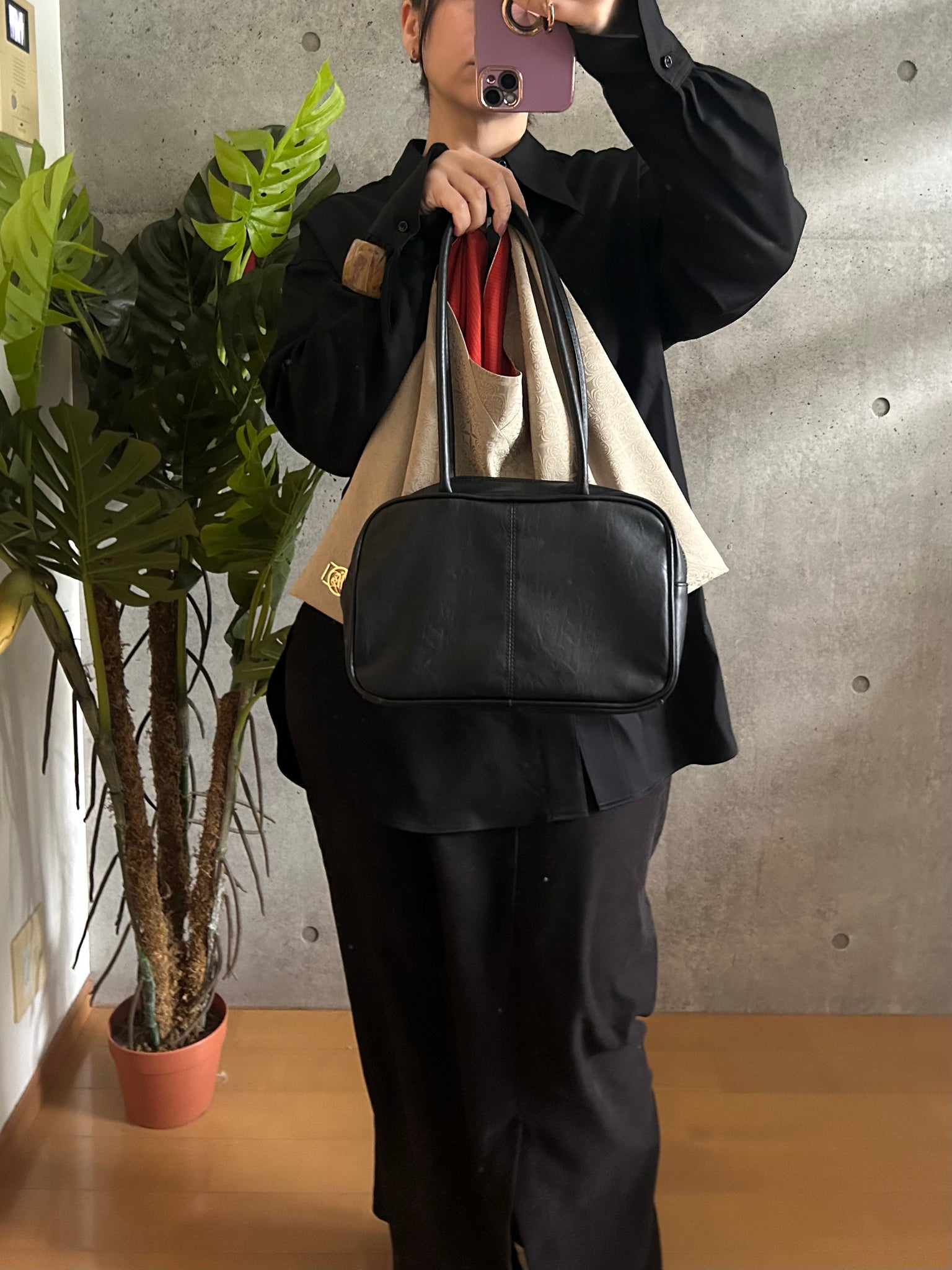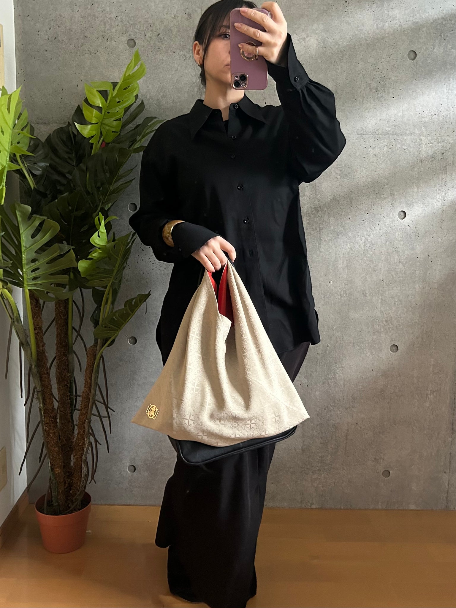 ・手持ちの角がシワになりましたらアイロンで綺麗にお戻しができます。必ず当て布をして裏地のポリエステルの面からアイロンをあててください。