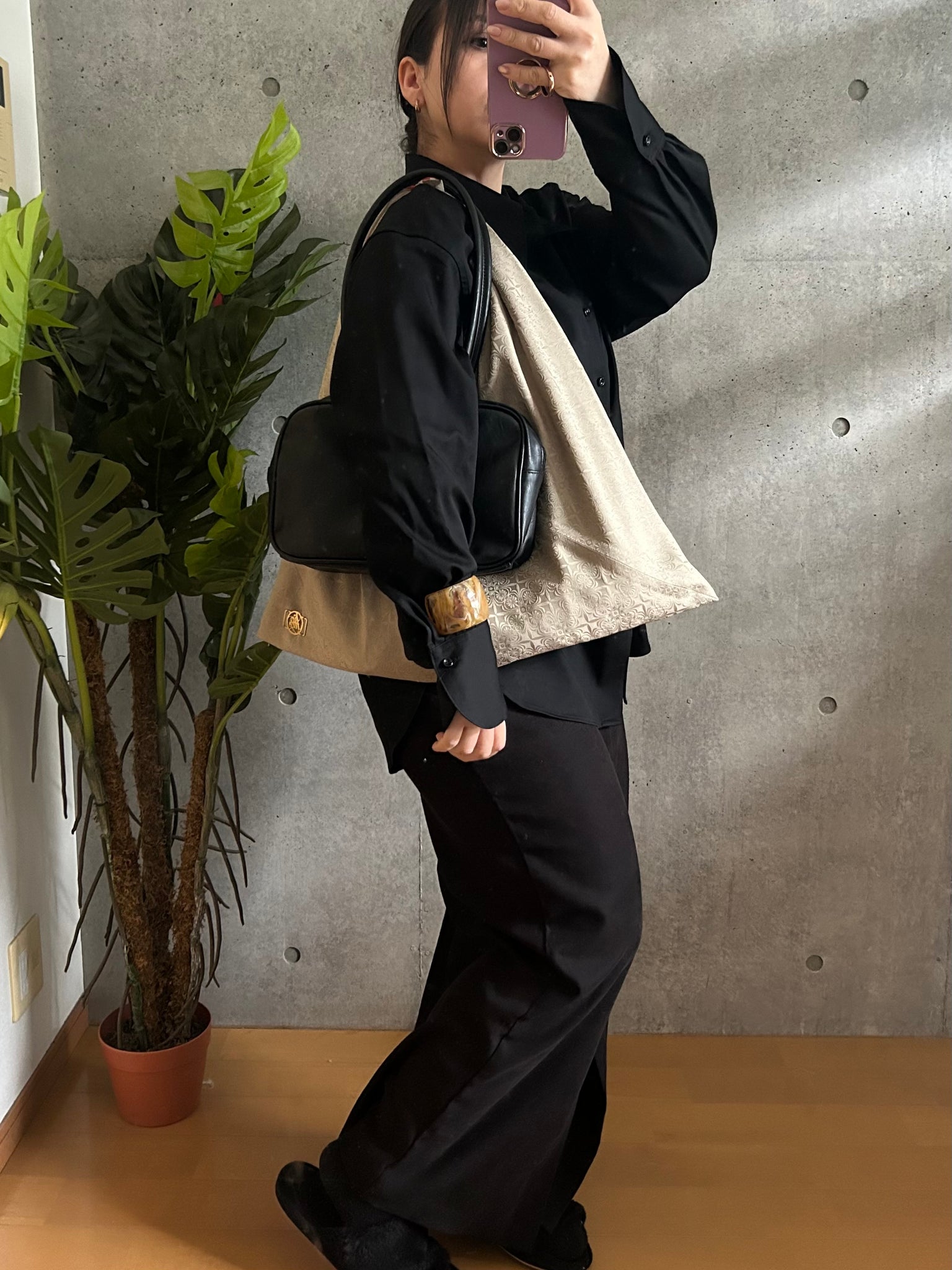 持ち手は、一度結んだあとにスナップボタンで固定する特別仕様です。「結び目が解けるかもしれない」という不安を解消し、重い荷物を入れた際も安定感があり、肩への負担をやさしく支えます。ひとつで主役になるメインバッグとしてはもちろん、メインバッグの容量を補うサブバッグとしても活躍する使い勝手のケニあずま袋。自由で頼もしい、日常に溶け込む機能美をお楽しみください。