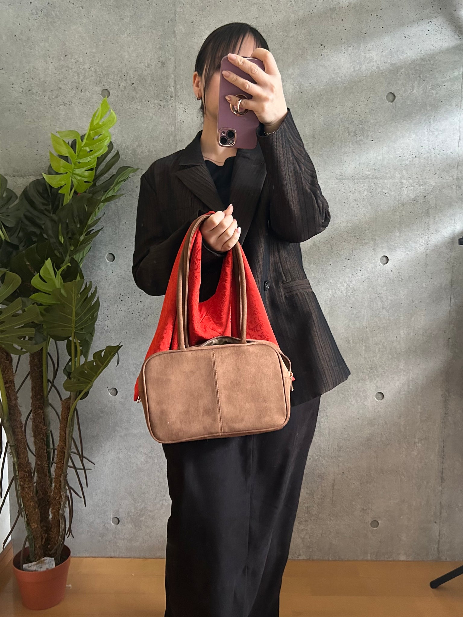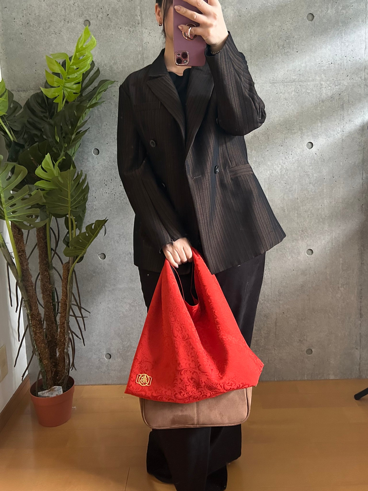 ・手持ちの角がシワになりましたらアイロンで綺麗にお戻しができます。必ず当て布をして裏地のポリエステルの面からアイロンをあててください。
