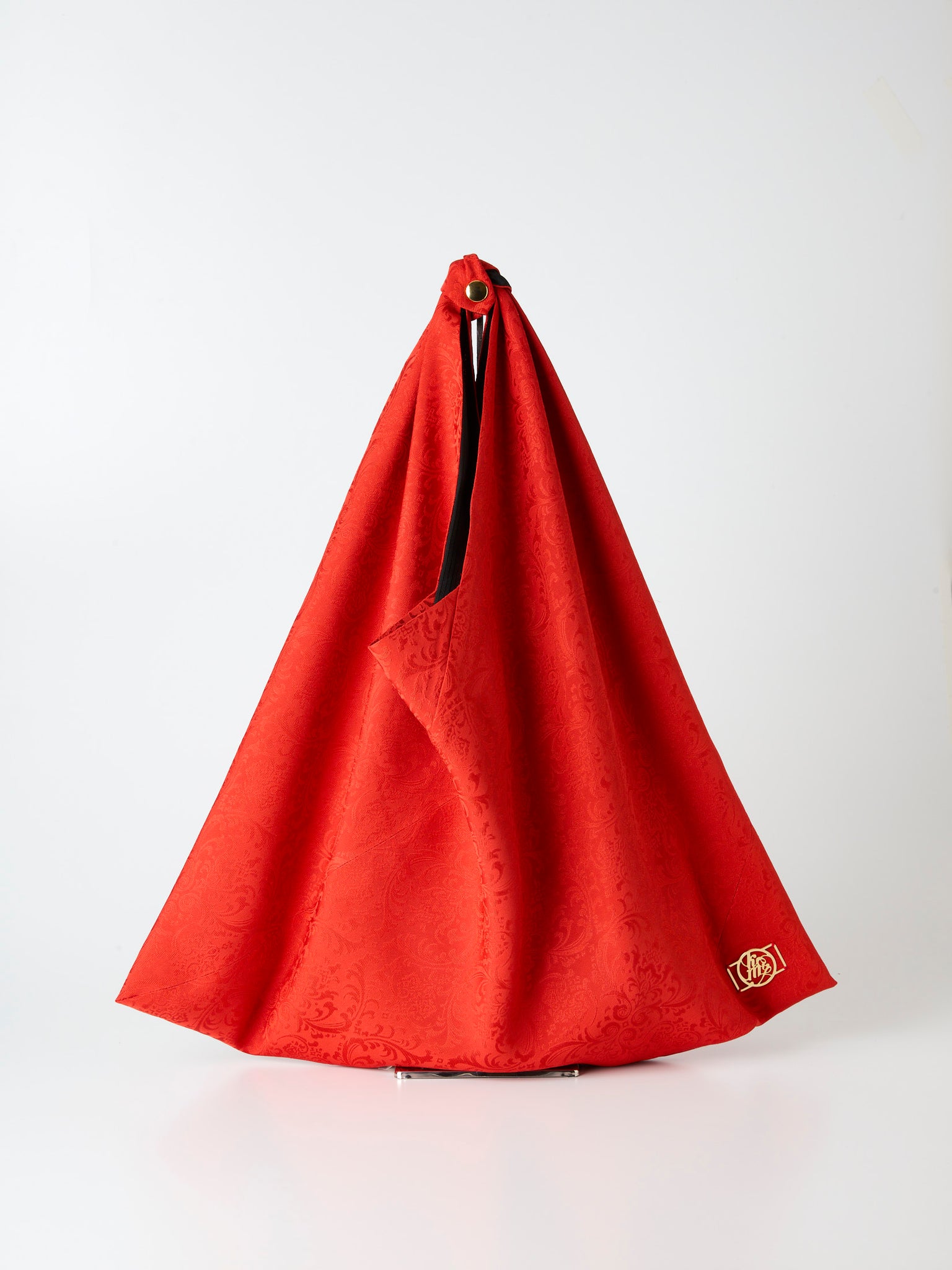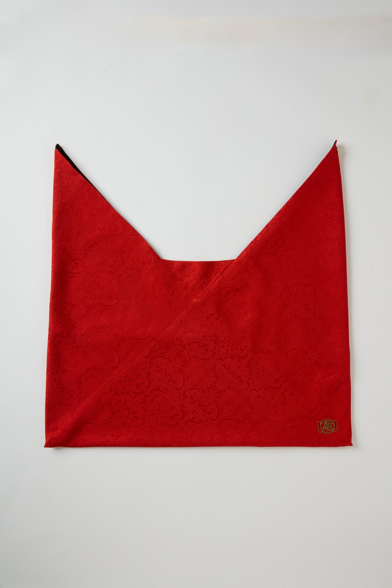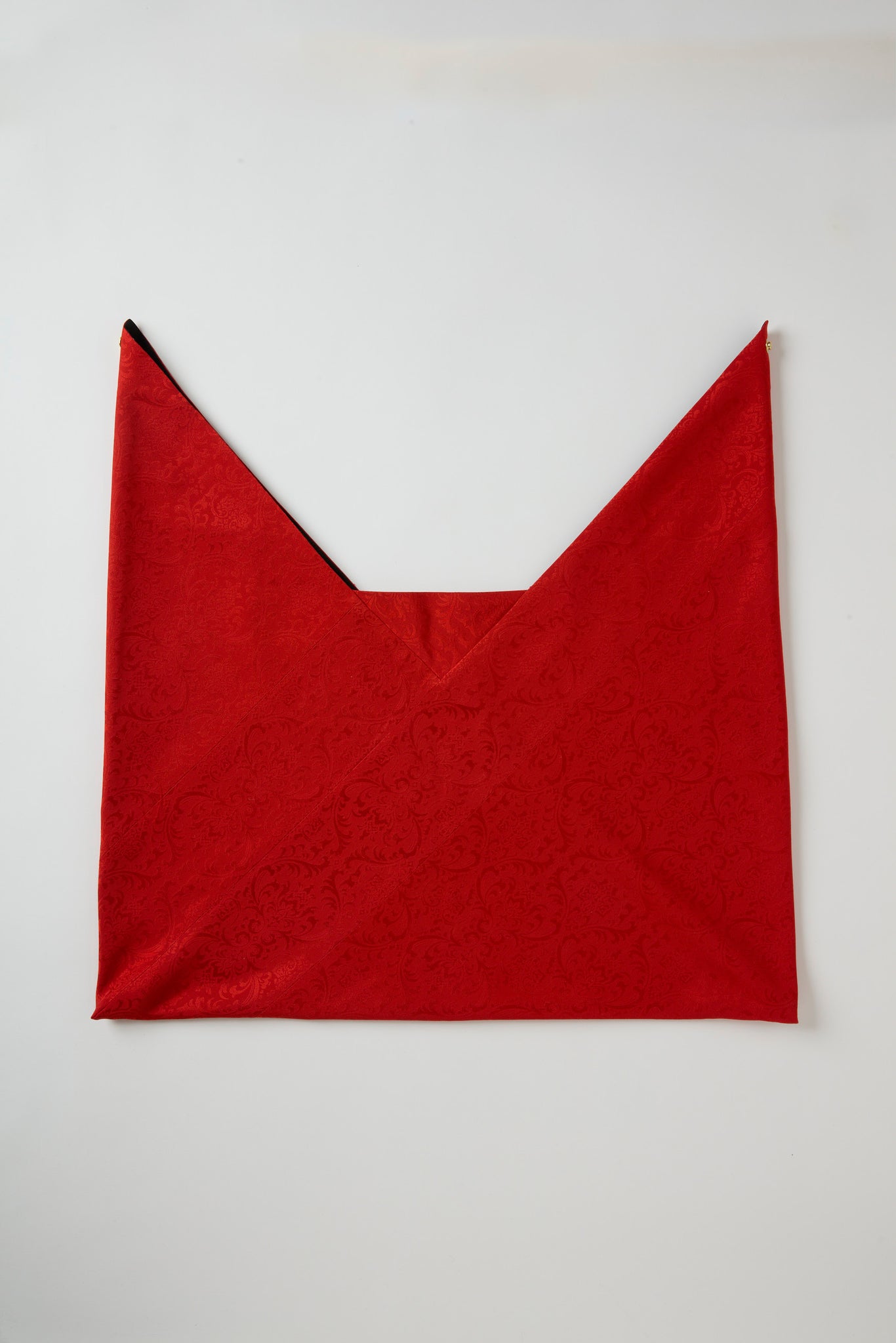 世界でもっとも美しく赤を染められるのは日本だと自負していますが、現在は規制の影響でかつての色味をそのまま再現することが難しくなっています。だからこそ今回、あえて赤に挑みました。古典的な紅緋に、洋風の花飾りの地紋を掛け合わせ、現代の装いに鮮やかな「紅一点」を添えるデザインに仕上げています。
