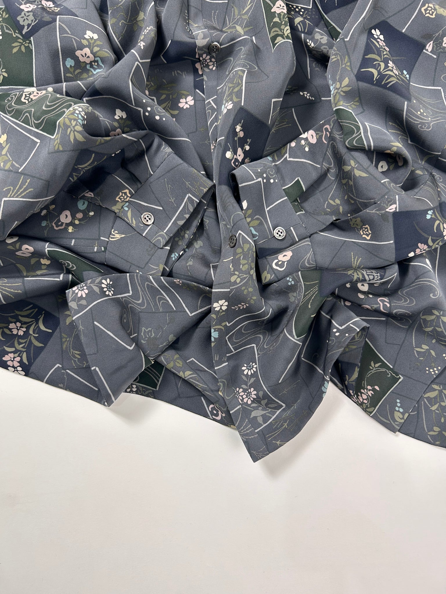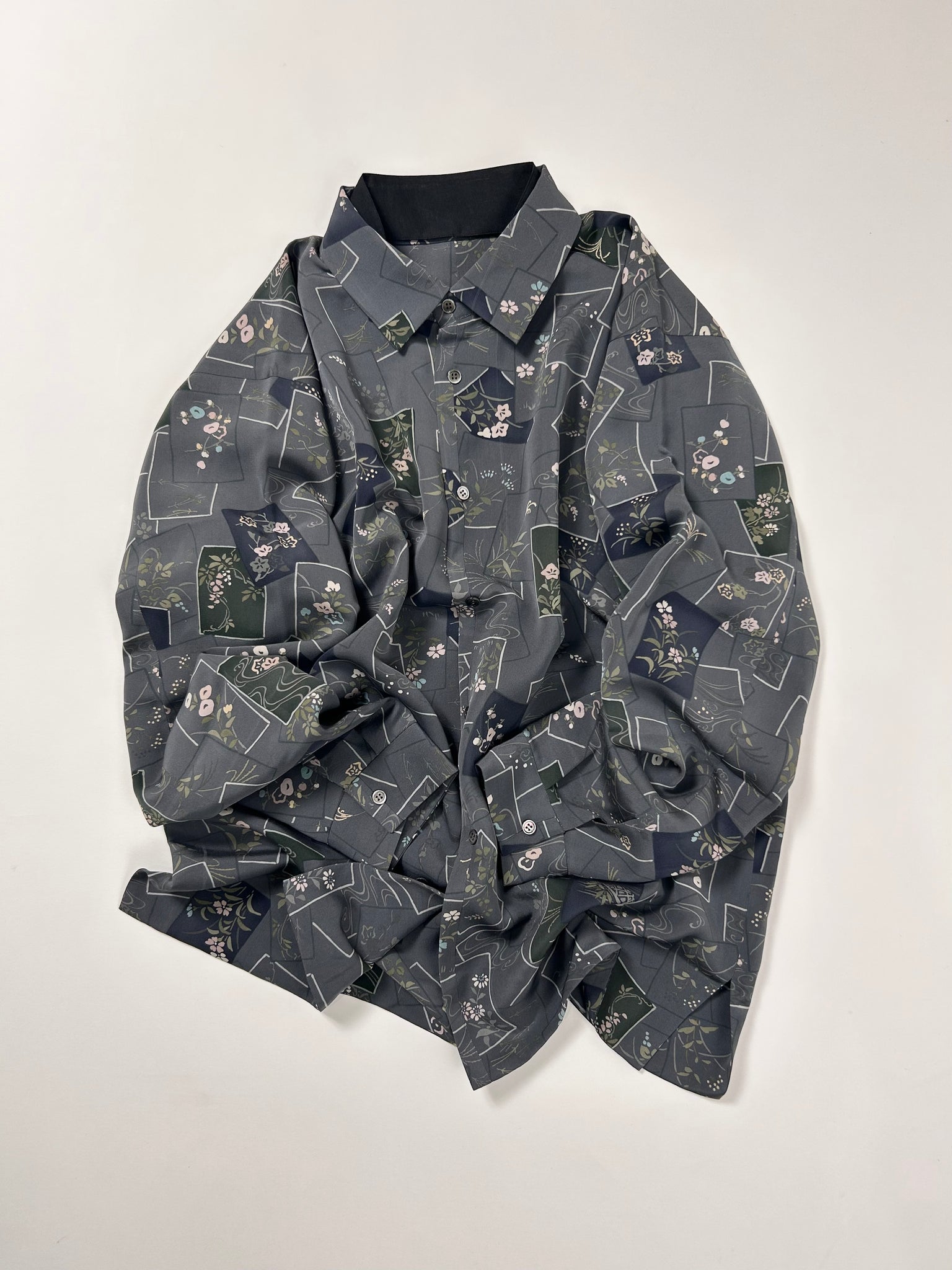 これまでと変わらず、ケニシャツは一反(約12メートル)のお着物生地を余すことなく使用し、総裏仕立ての二枚合わせにてお作りしております。そのため、程よい厚みと重みがあり、お着物一反から一点のみお作りできる、貴重なお品です。