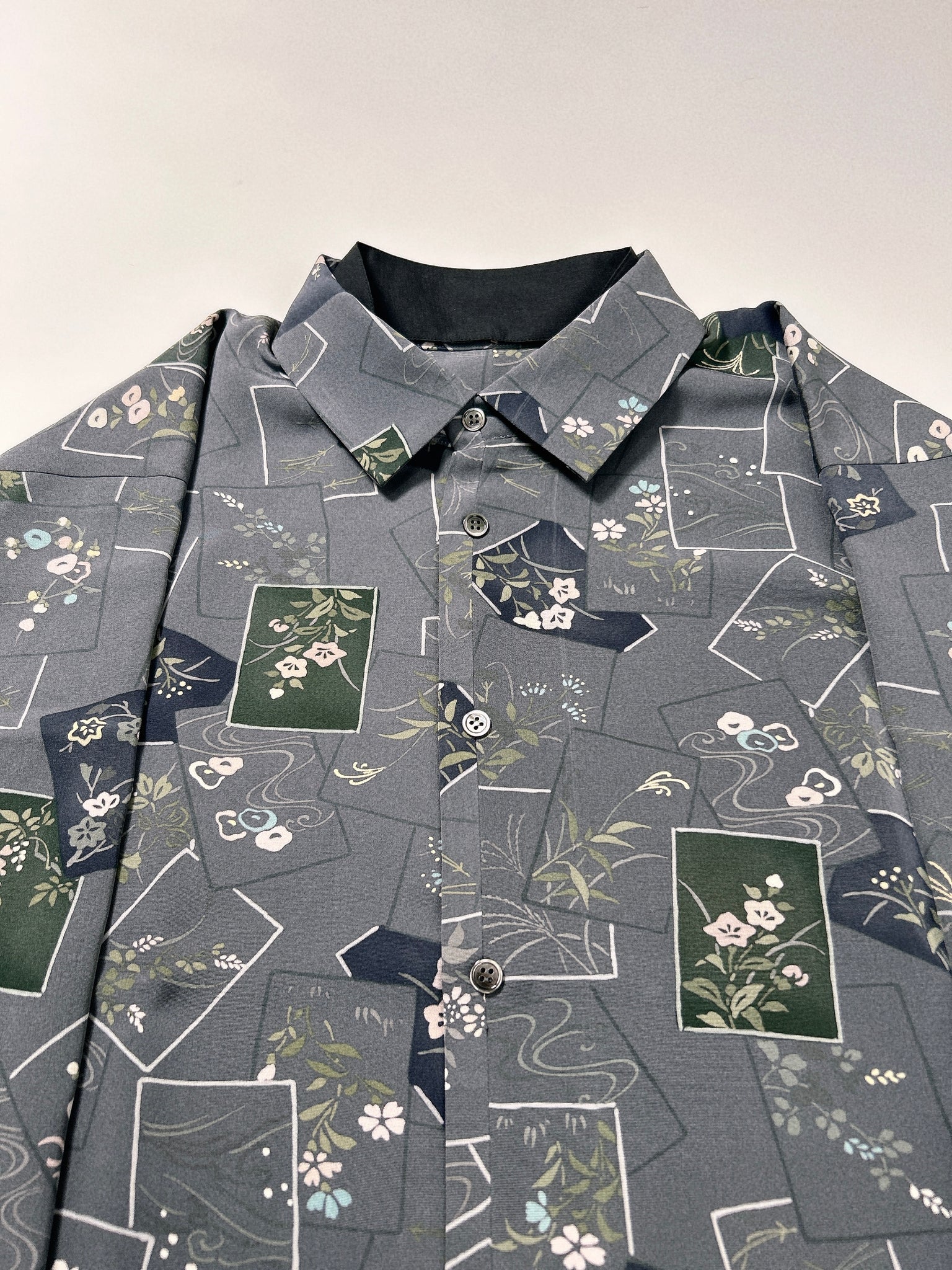 今季は、和裁の縫製仕様を踏襲するだけでなく、より「きものを纏う感覚」に近づけるために、シャツとしての肩線やヨークを省き、首元には付け襟を施しました。これにより、首回りのカーブをお着物の襟に見立てた、独自の設計となっております。