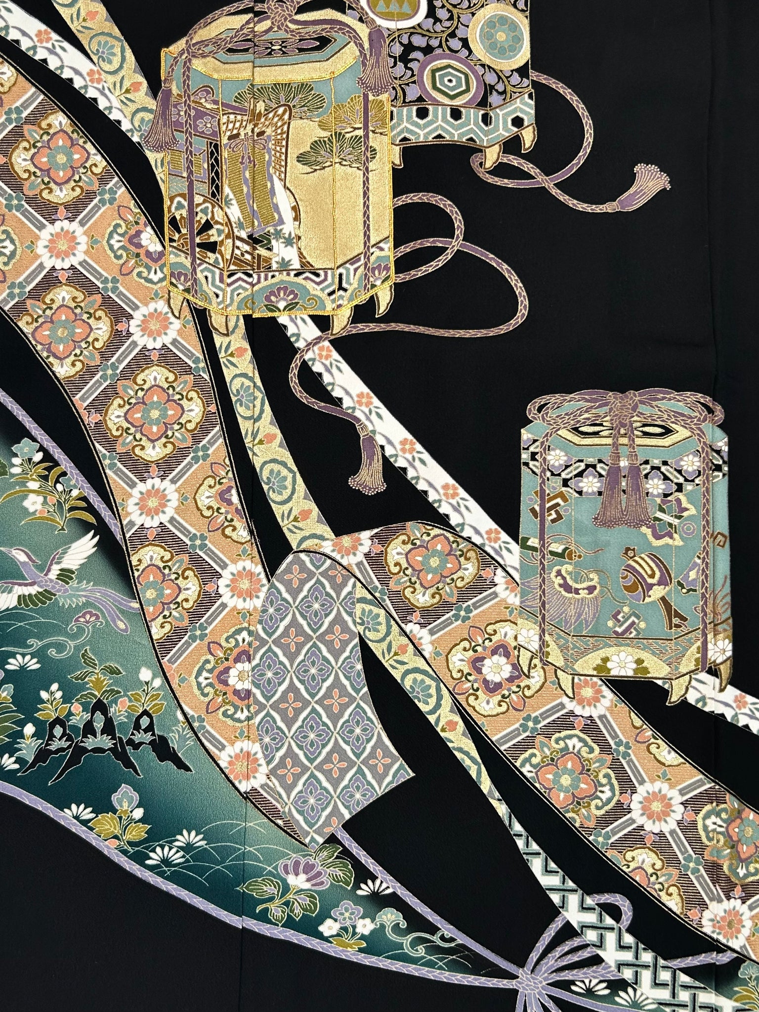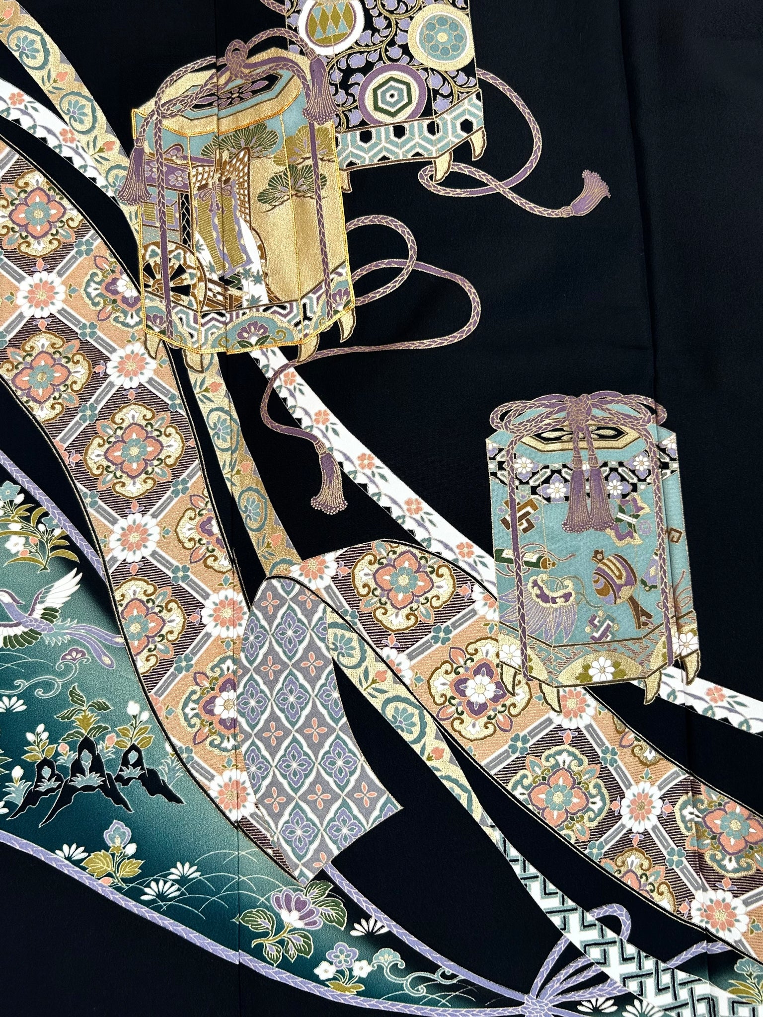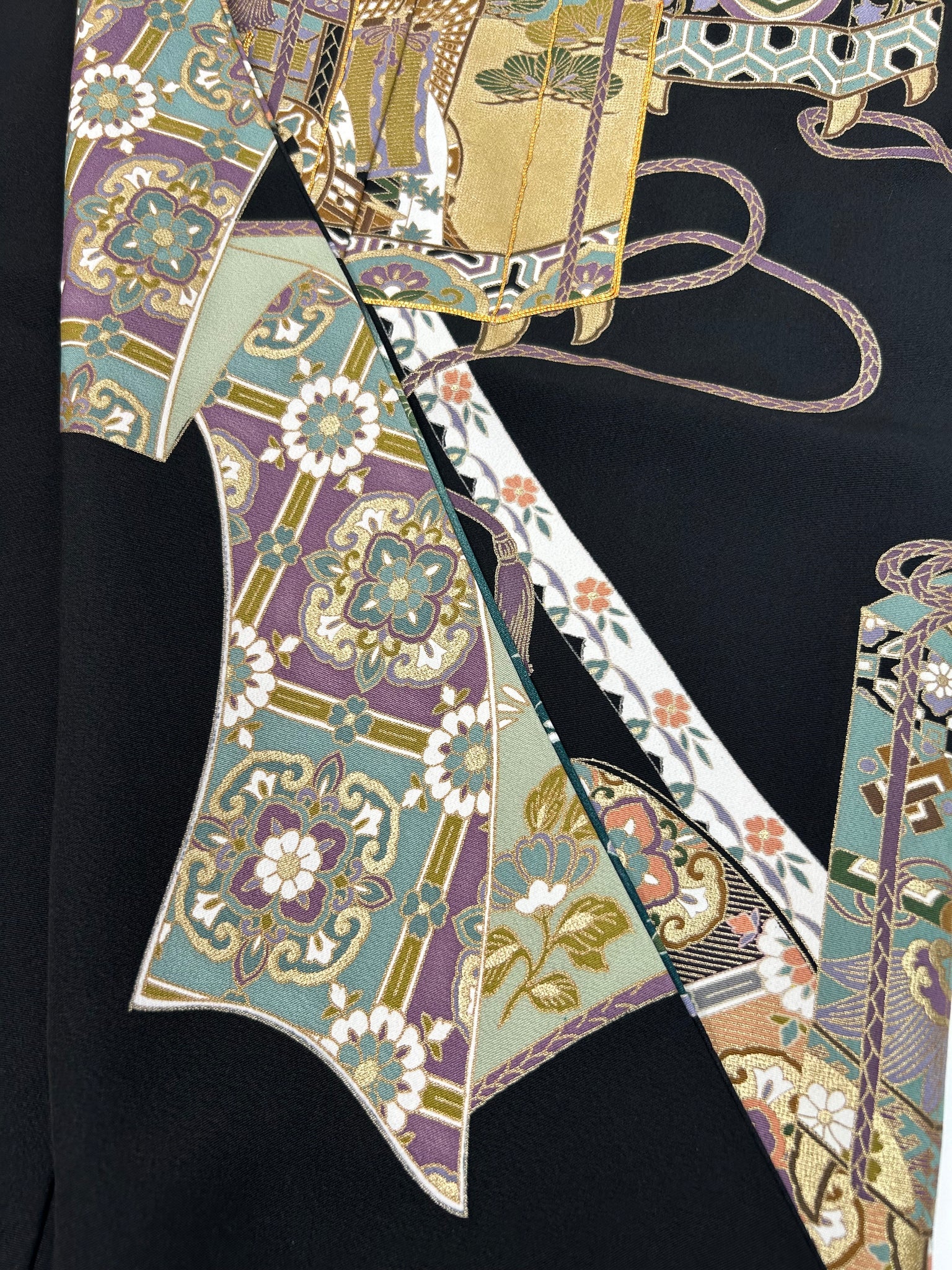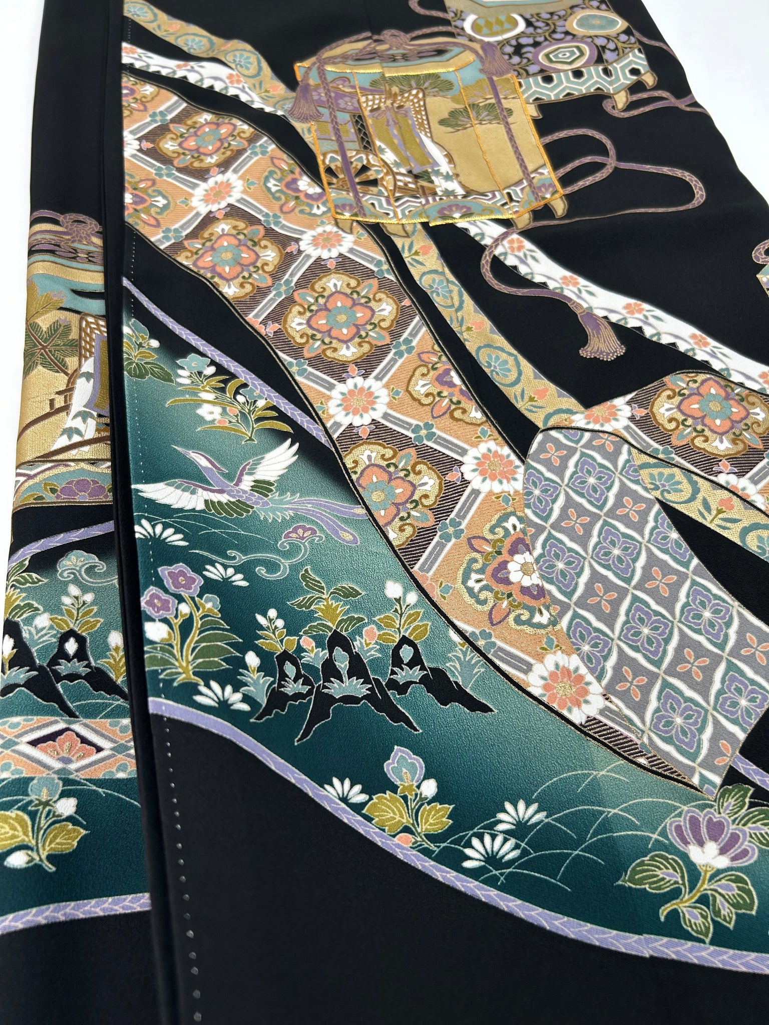 【予約品】金駒刺練に貝桶吉祥花模様黒留袖【フォーマルシュッケニ】