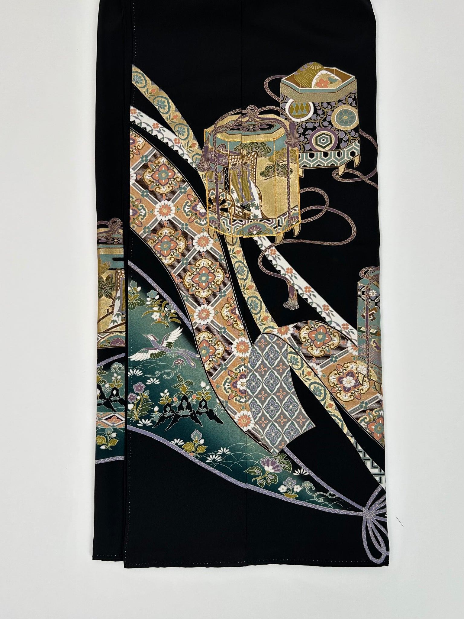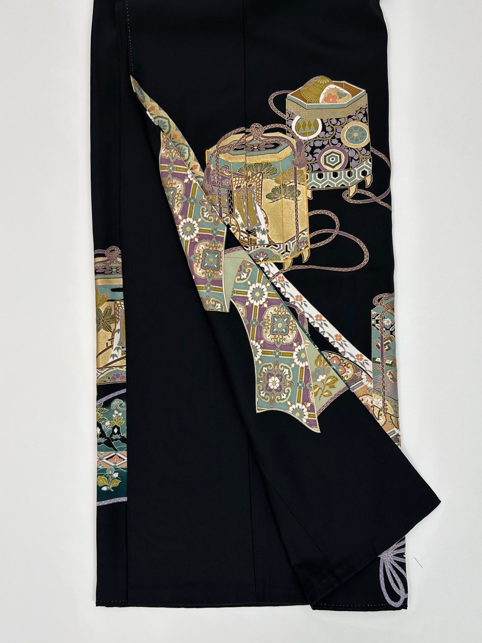 • 画像をギャラリービューアに読み込む, 【予約品】金駒刺練に貝桶吉祥花模様黒留袖【フォーマルシュッケニ】