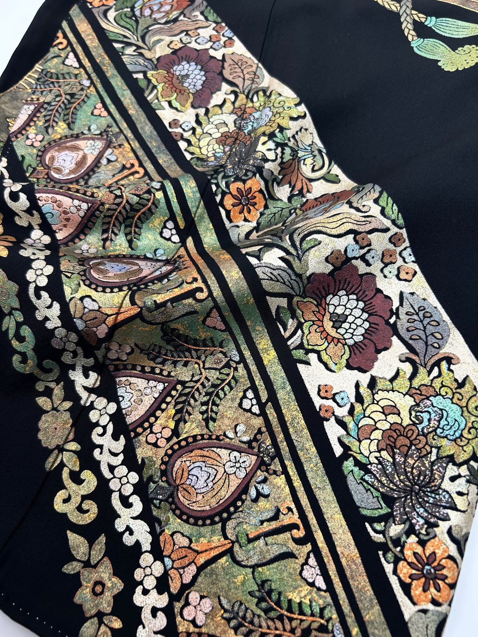 年末年始のご挨拶、お呼ばれのお席、食事会や舞台鑑賞など、「本当は着物で伺いたいけれど、フルセットで装うのは難しい」そんな場面に、フォーマルシュッケニを纏っていただくことで空間に華を添えつつ、日本の美意識と文化を感じさせてくれる一着となるようお作りしました。