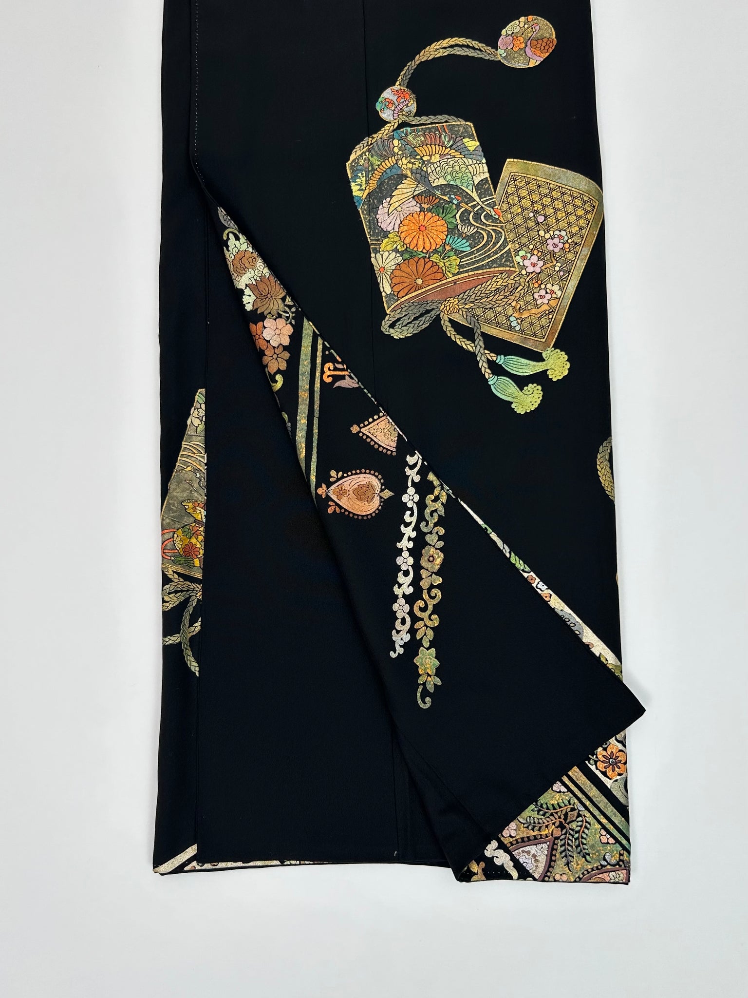 訪問着や付け下げは箔加工や刺繍、模様絵付けが特殊です。また胴裏、八掛がついておりますため水洗い厳禁。水に濡れると色移りする可能性がございます。お手入れはドライクリーニングにてお願い申し上げます。