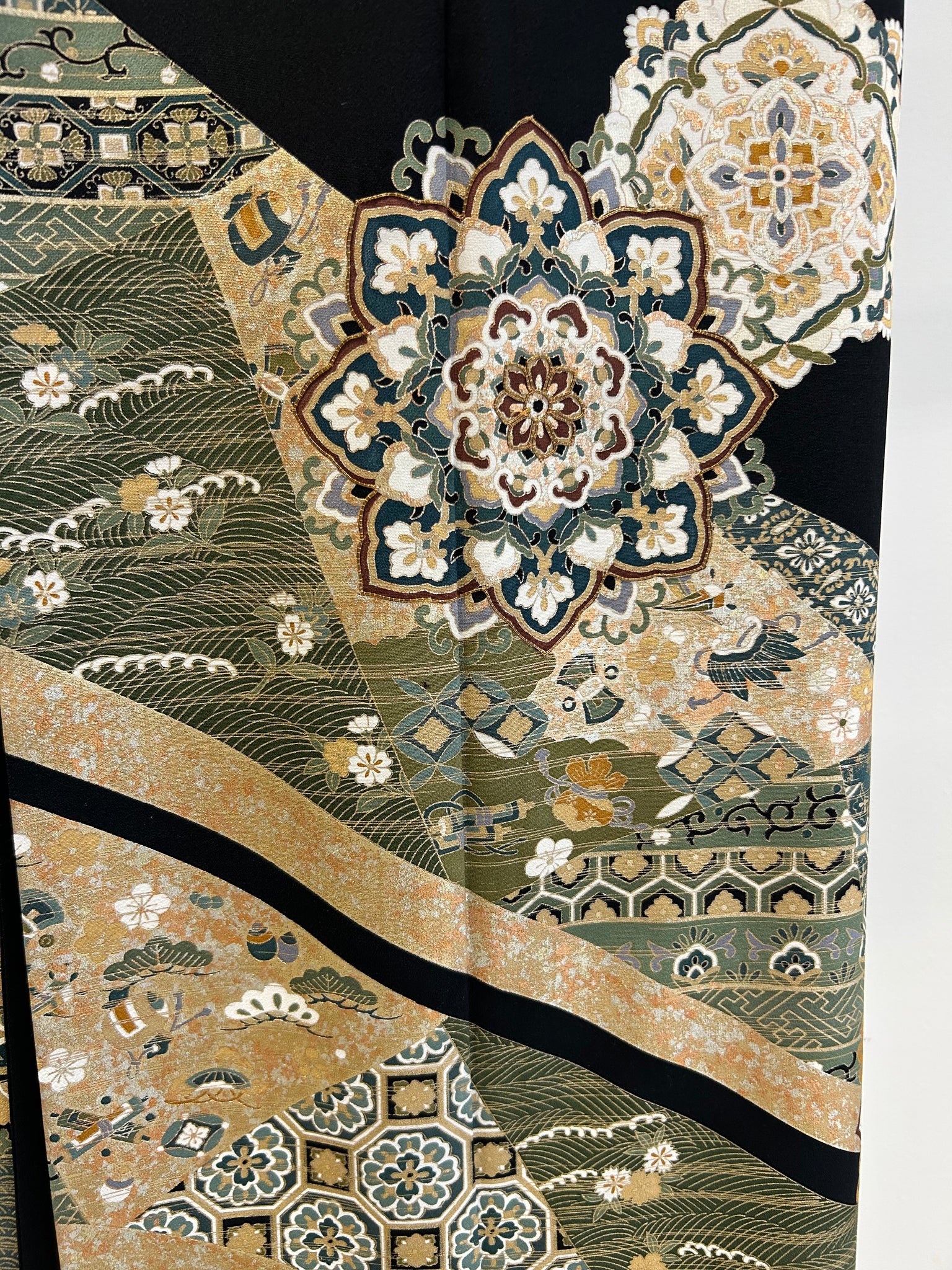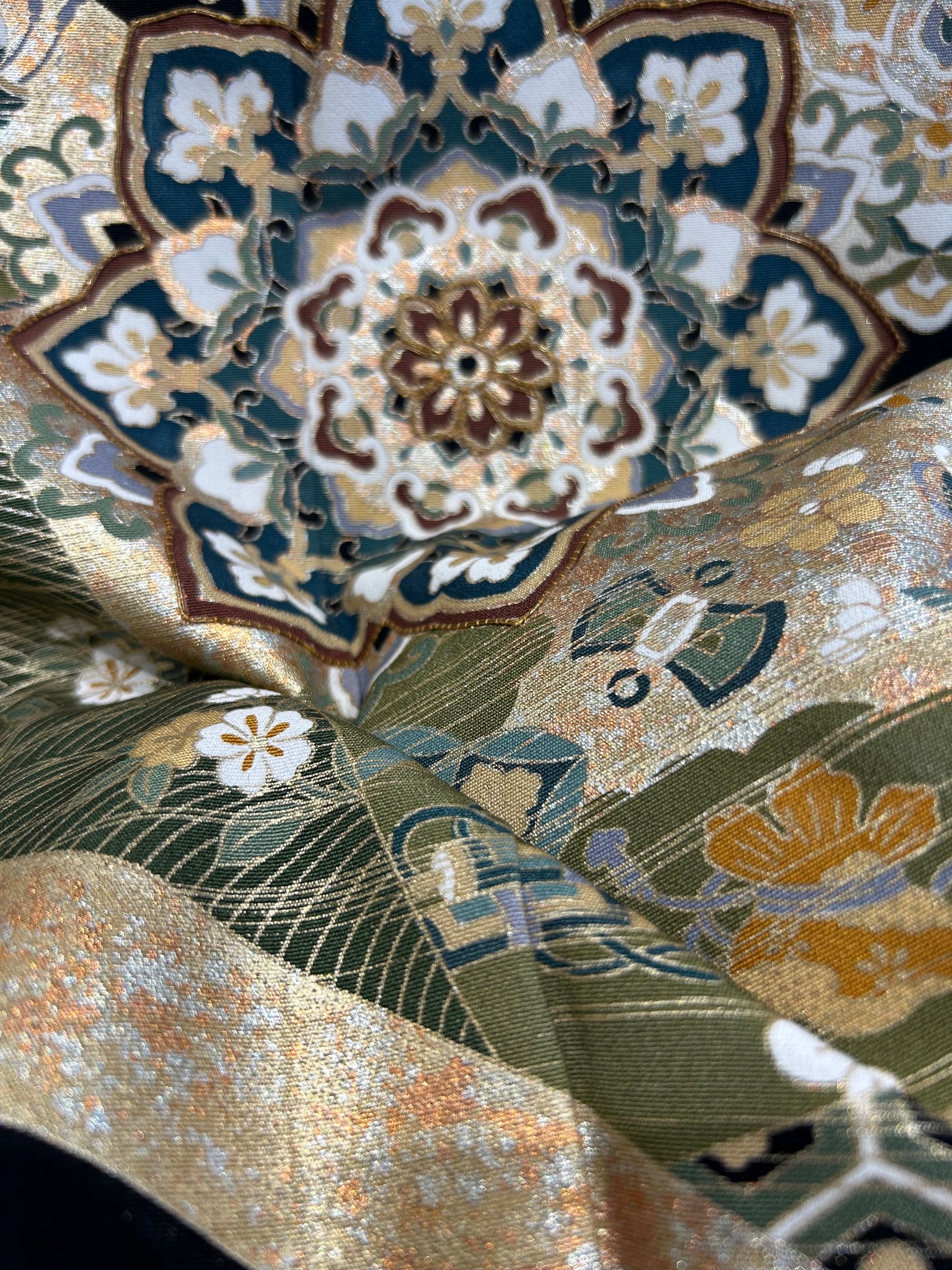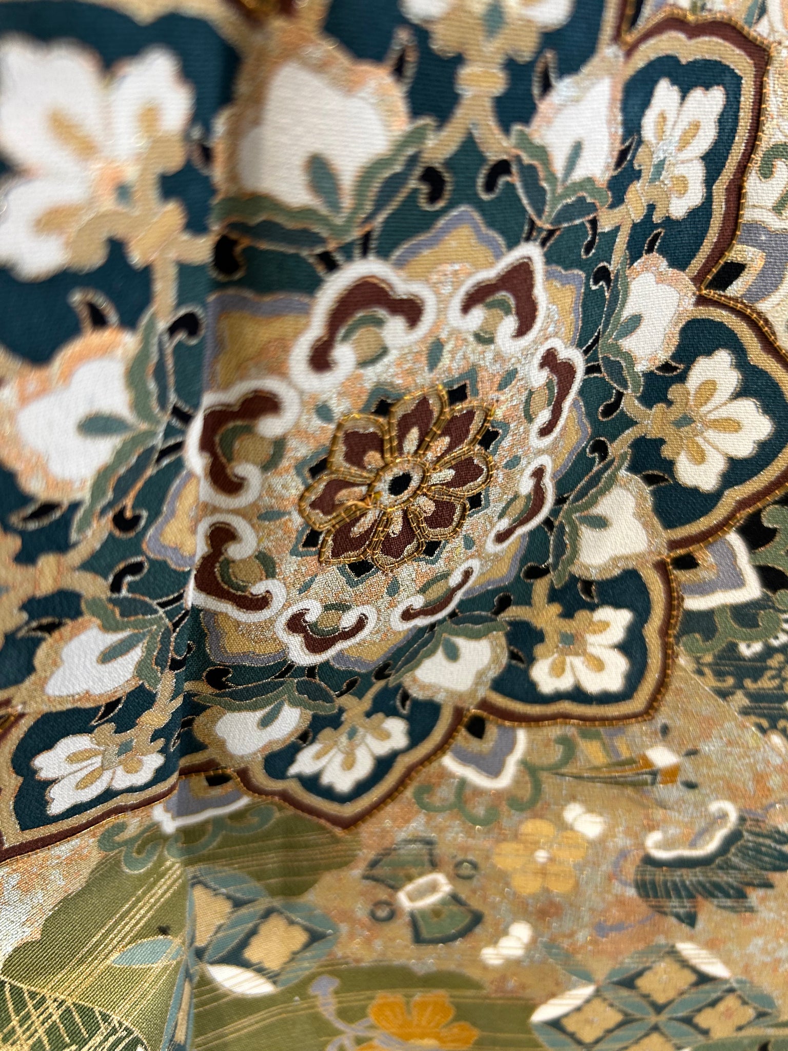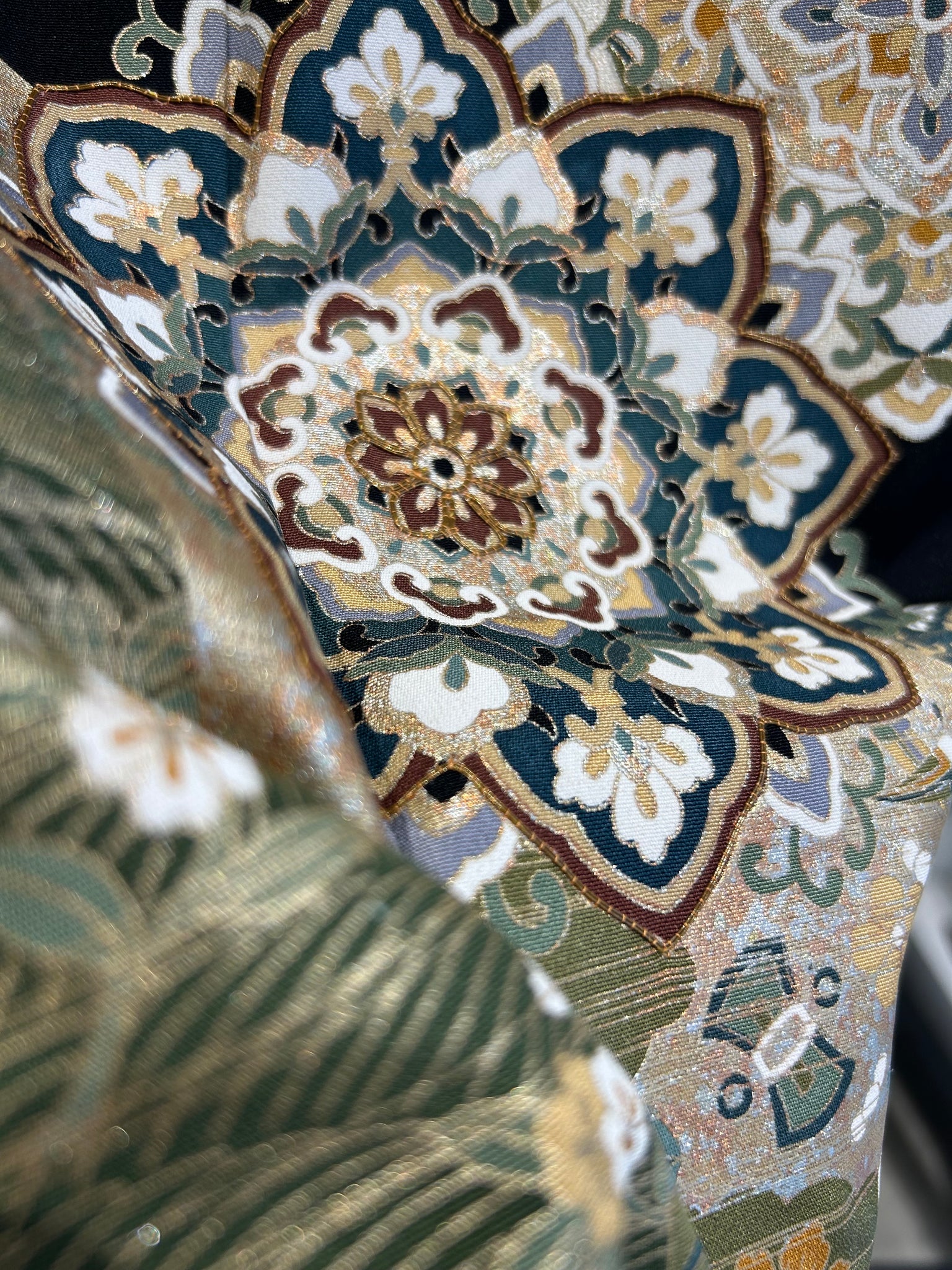 訪問着や付け下げは箔加工や刺繍、模様絵付けが特殊です。また胴裏、八掛がついておりますため水洗い厳禁。水に濡れると色移りする可能性がございます。お手入れはドライクリーニングにてお願い申し上げます。