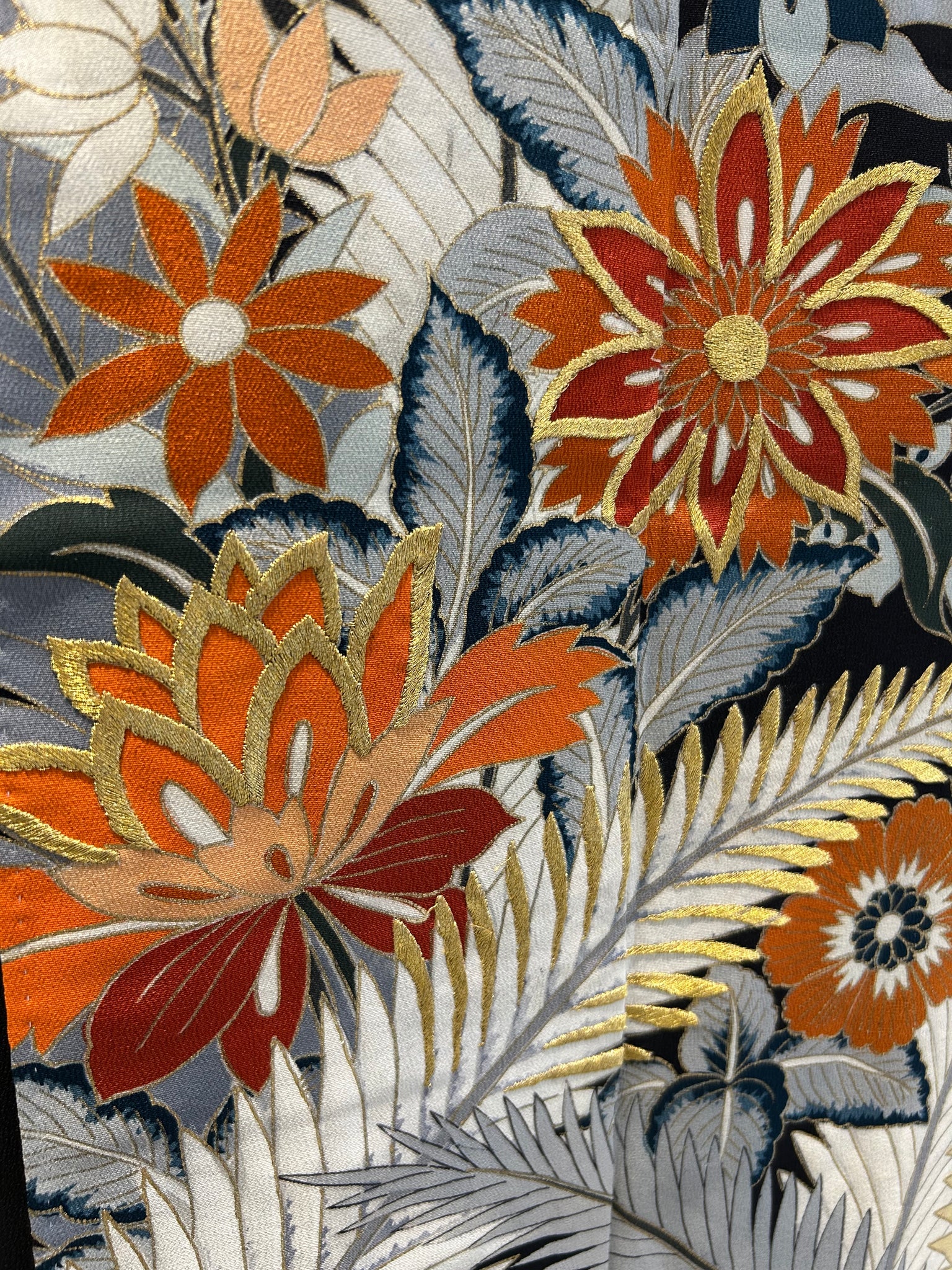 訪問着や付け下げは箔加工や刺繍、模様絵付けが特殊です。また胴裏、八掛がついておりますため水洗い厳禁。水に濡れると色移りする可能性がございます。お手入れはドライクリーニングにてお願い申し上げます。