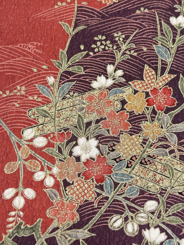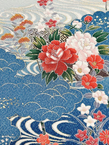 膨れ織り金彩縁どりの桜流水枝花模様【スリットワンピース】