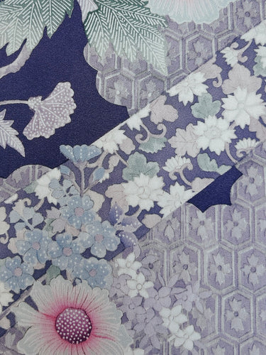 破れ格子地に変わり枝花紋模様暈し染め【スリットワンピース】