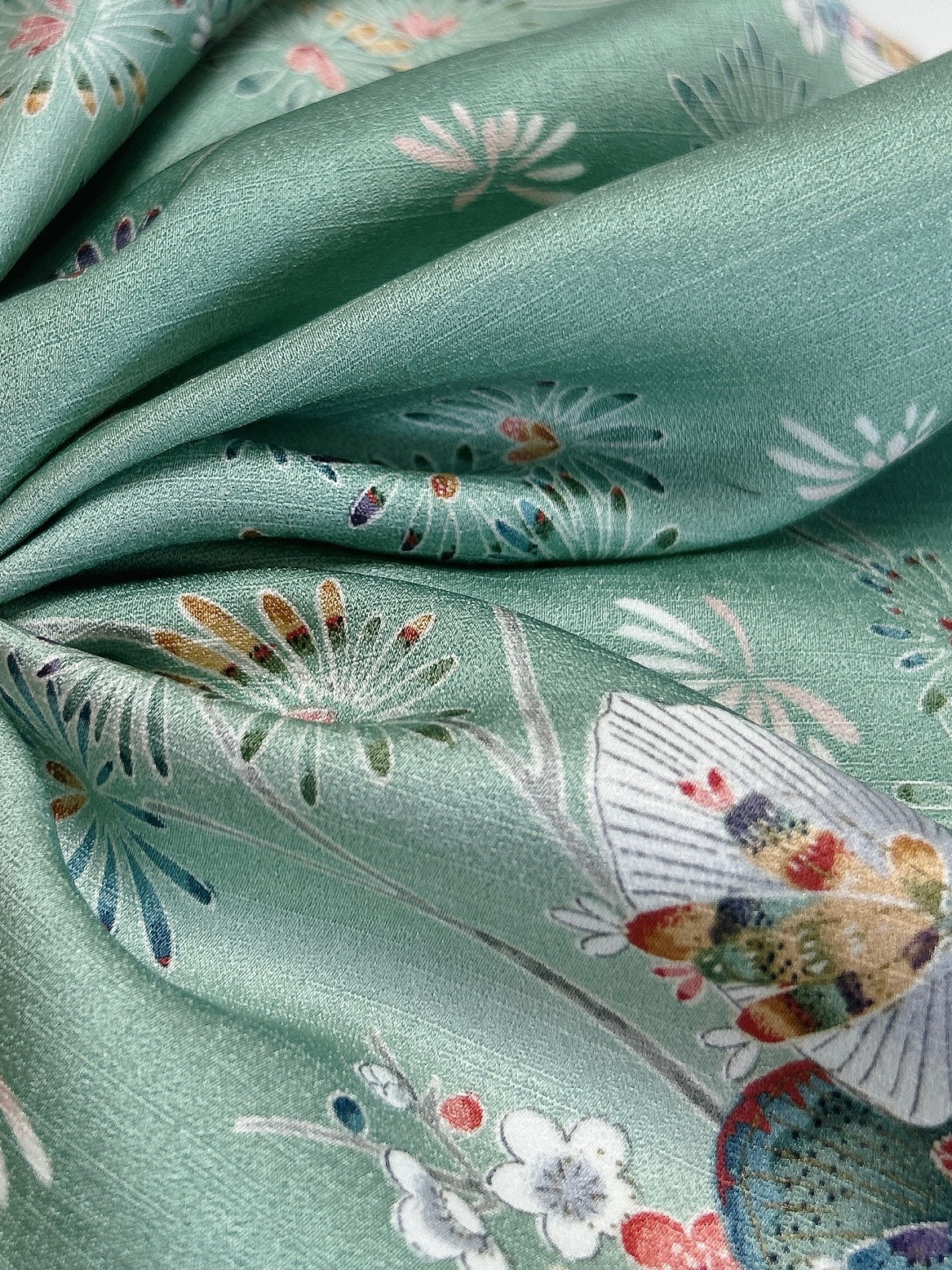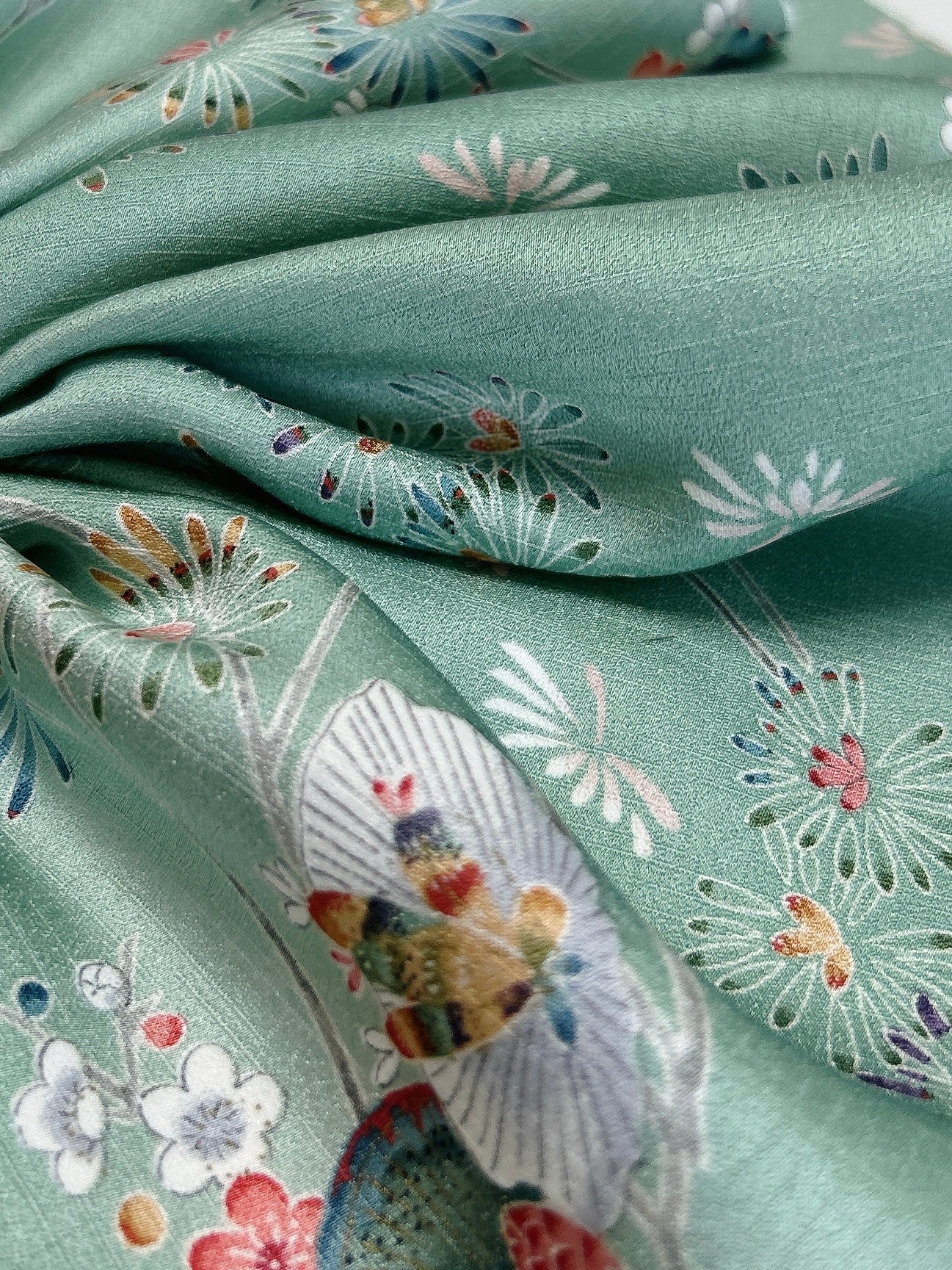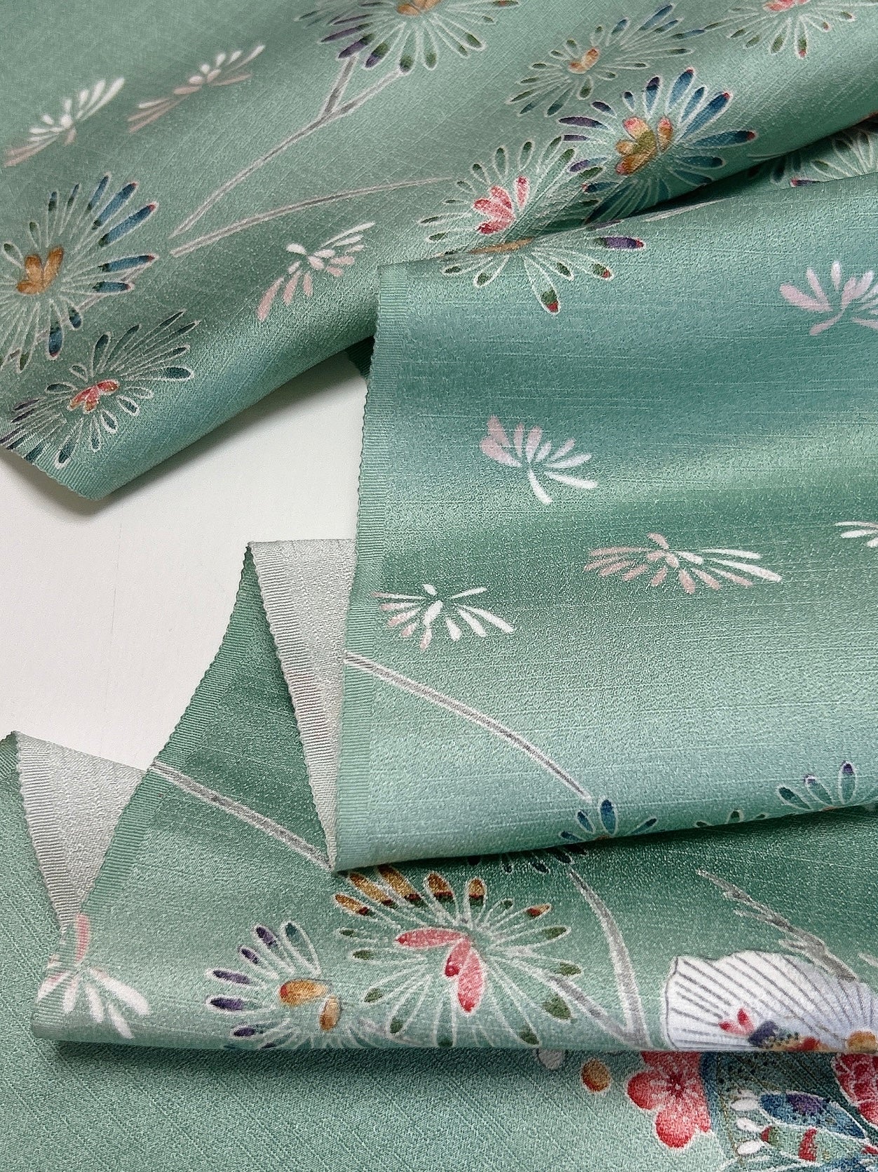 絹織物でございます、濡れた状態では摩擦に弱いため洗濯機でのお洗濯はお控えください、状態を綺麗に長く保つためにも手洗いでの手入れ、もしくはドライクリーニングがおすすめです。※お湯、ぬるま湯でのお手入れ厳禁
