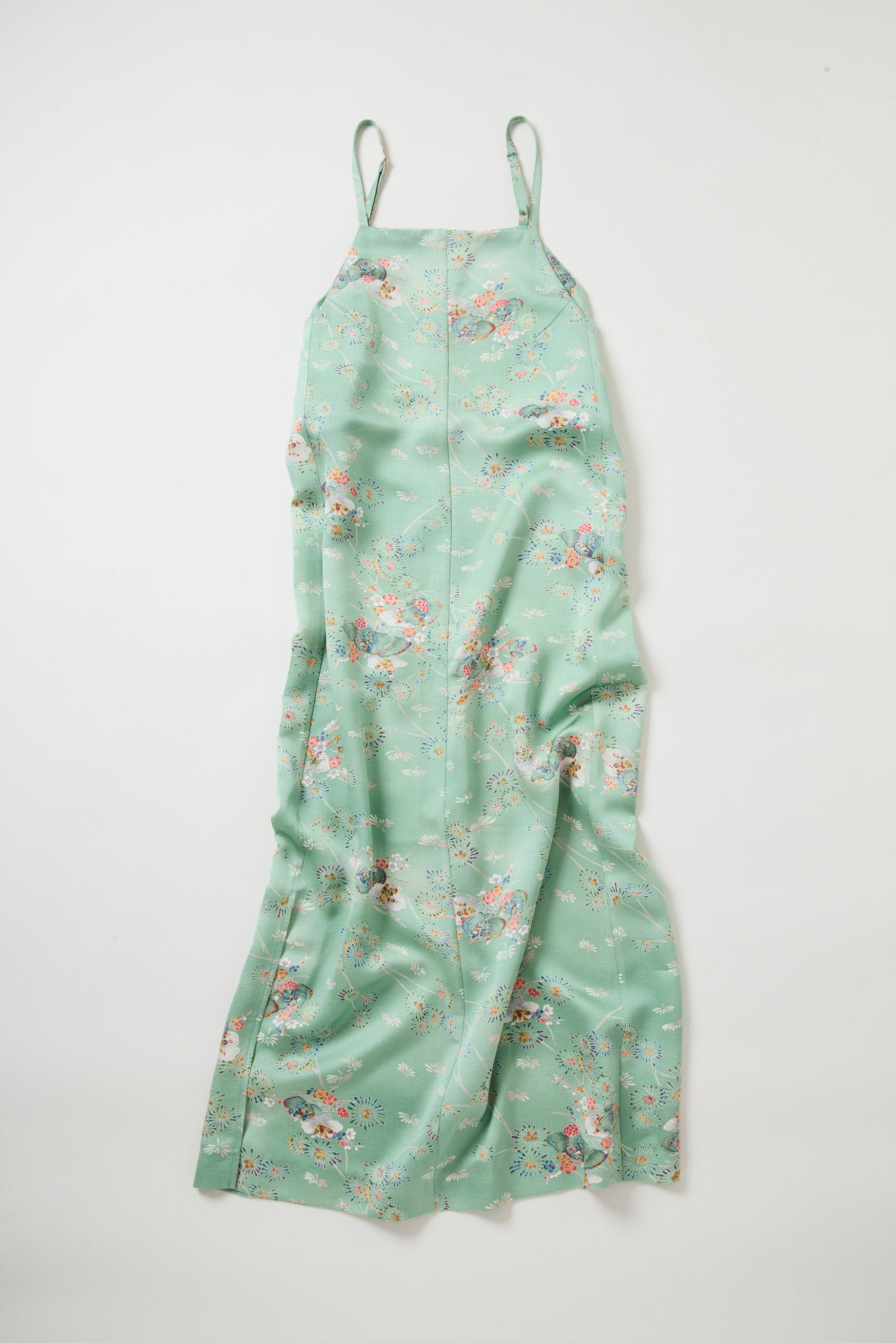 こちらのワンピースは、サイドのスリットはおくみを表現しました、また歩きやすいようバックにもスリットがあるのが特徴です。