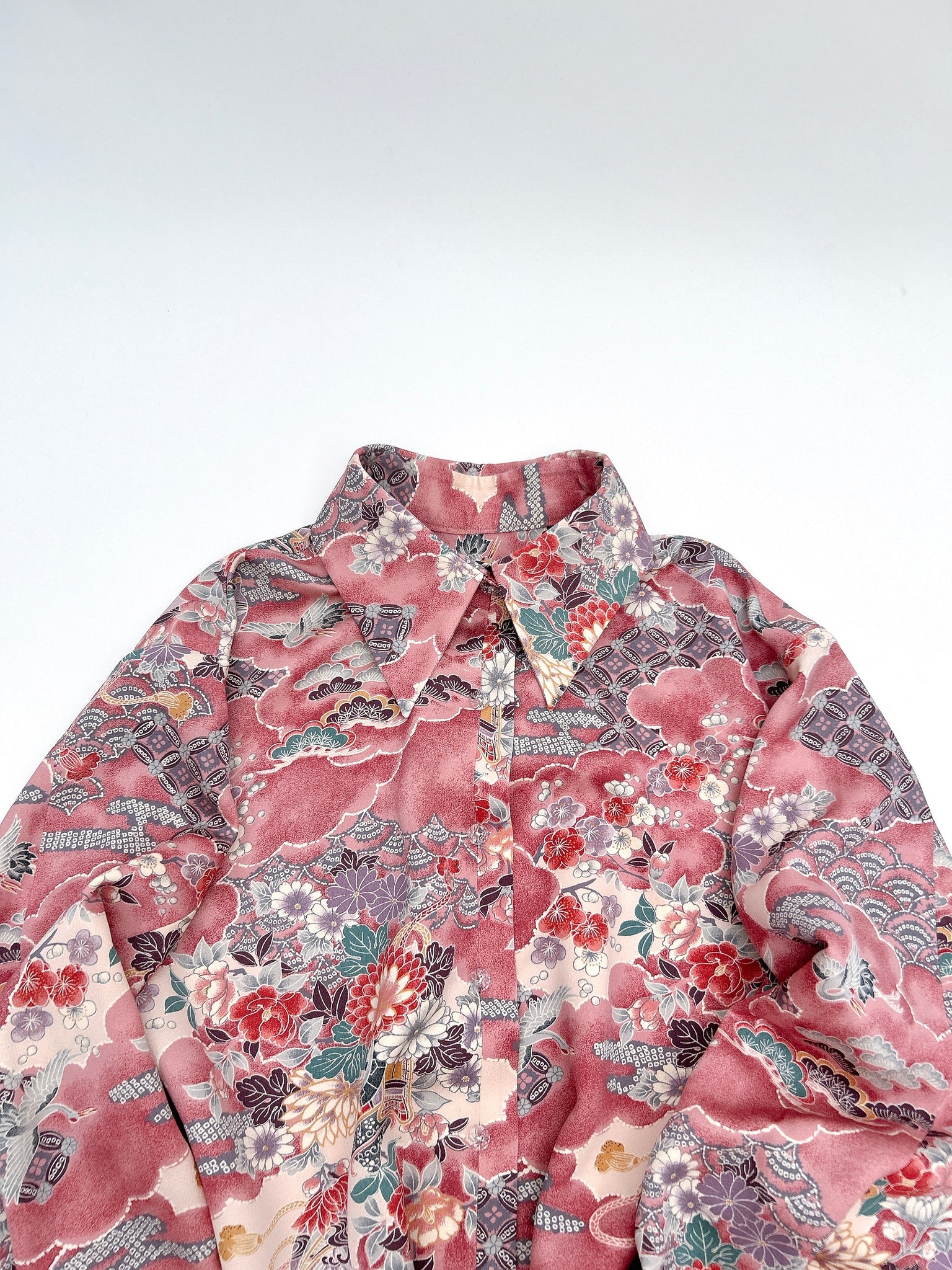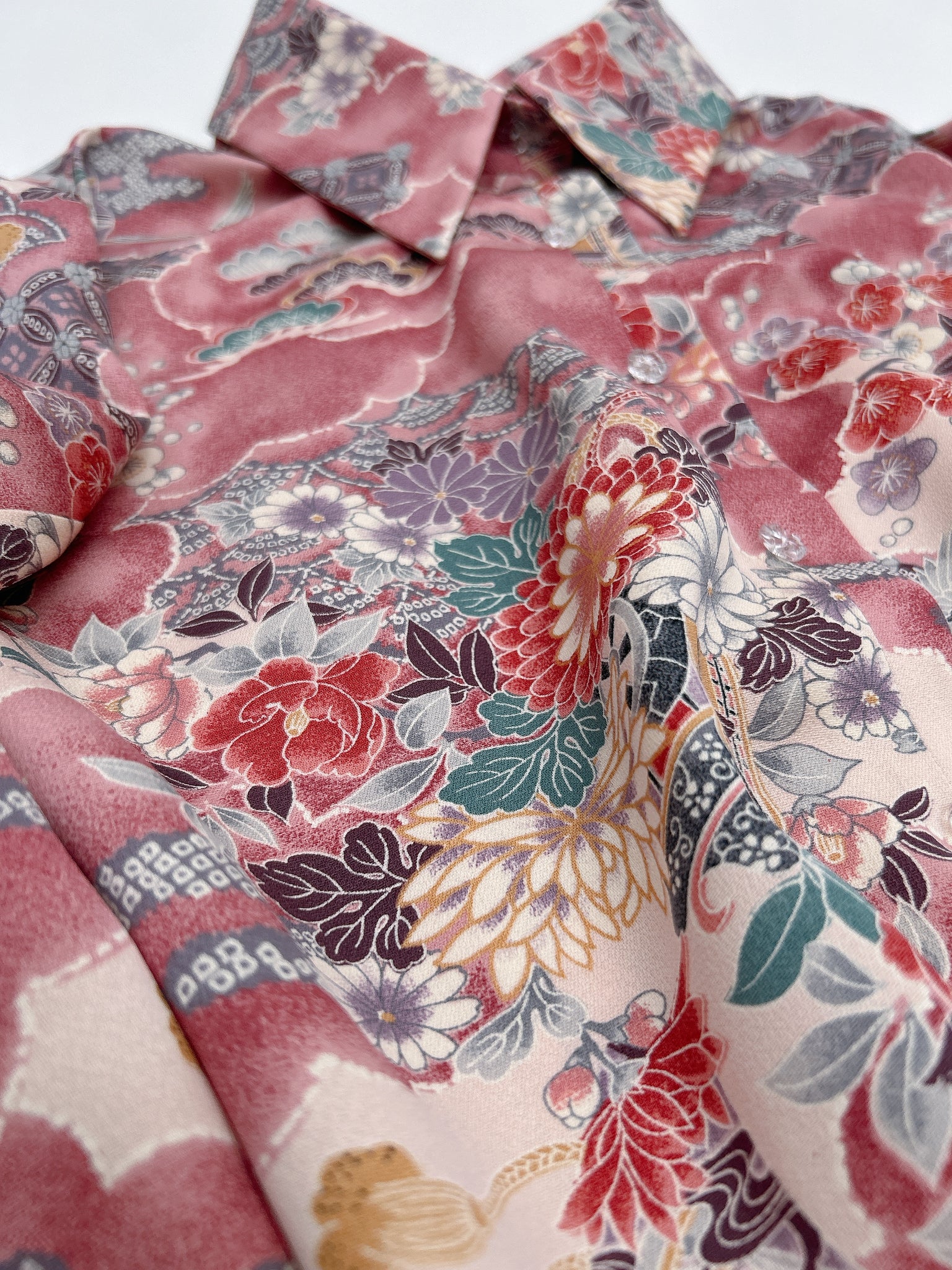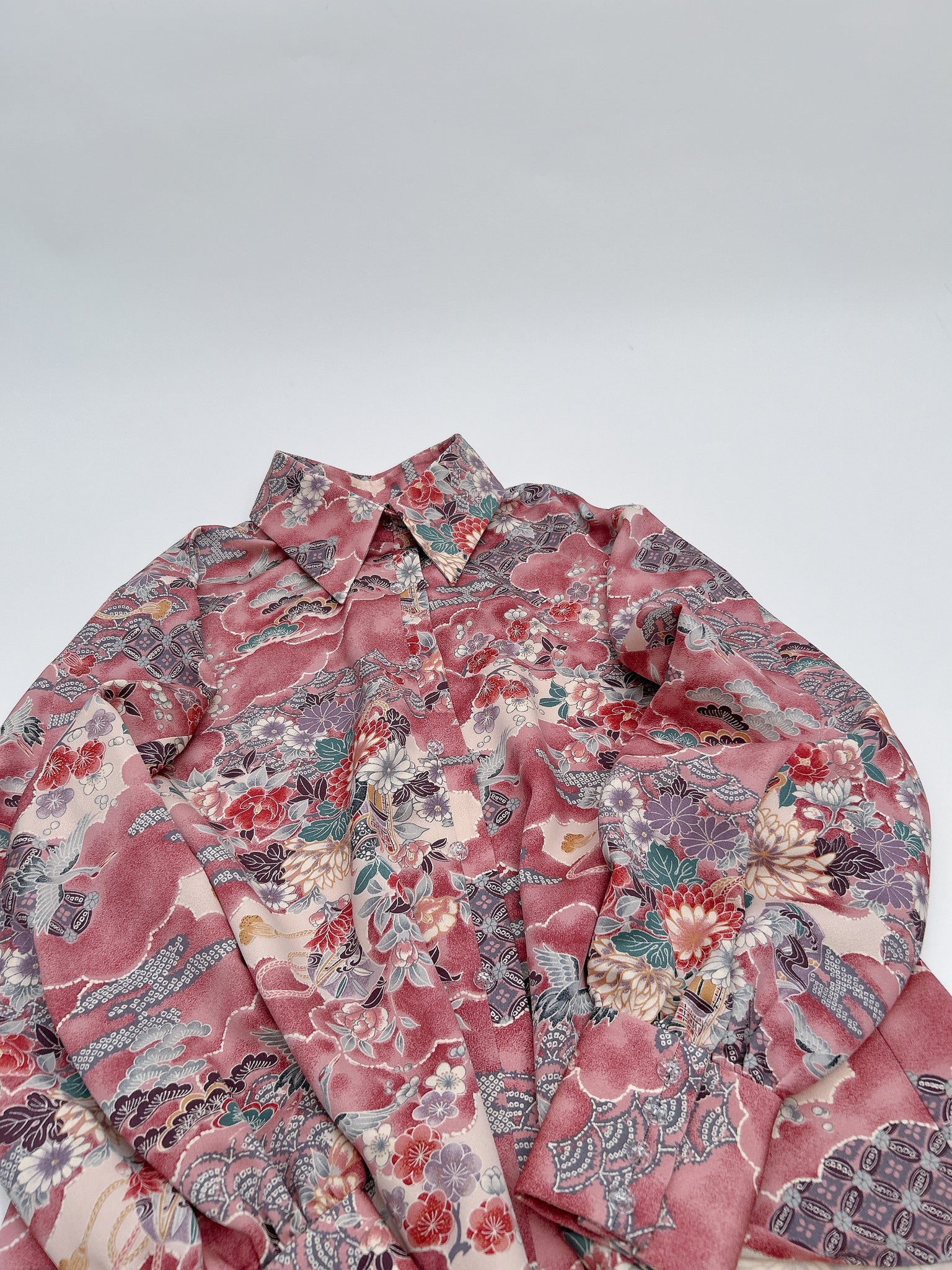 ⁑着物はシミや汚れ破れなどがつきもう着物としては着ることが難しくなったものや、ヴィンテージ、現代着物まで幅広く使用しておりますのでなるべくシミ汚れは逃がして仕立てております。が場合によっては少々アク、シミが付いてるものもございます。古いお着物の時代と時間の経過で現れるものですご理解のほどよろしくお願いもうしあげます。また正絹、化繊共に「防縮加工」をほどこしておりますのでご自宅でのお手入れが可能ですが、同じ色味艶状態を長く保たせるにはドライクリーニングがおすすめです。