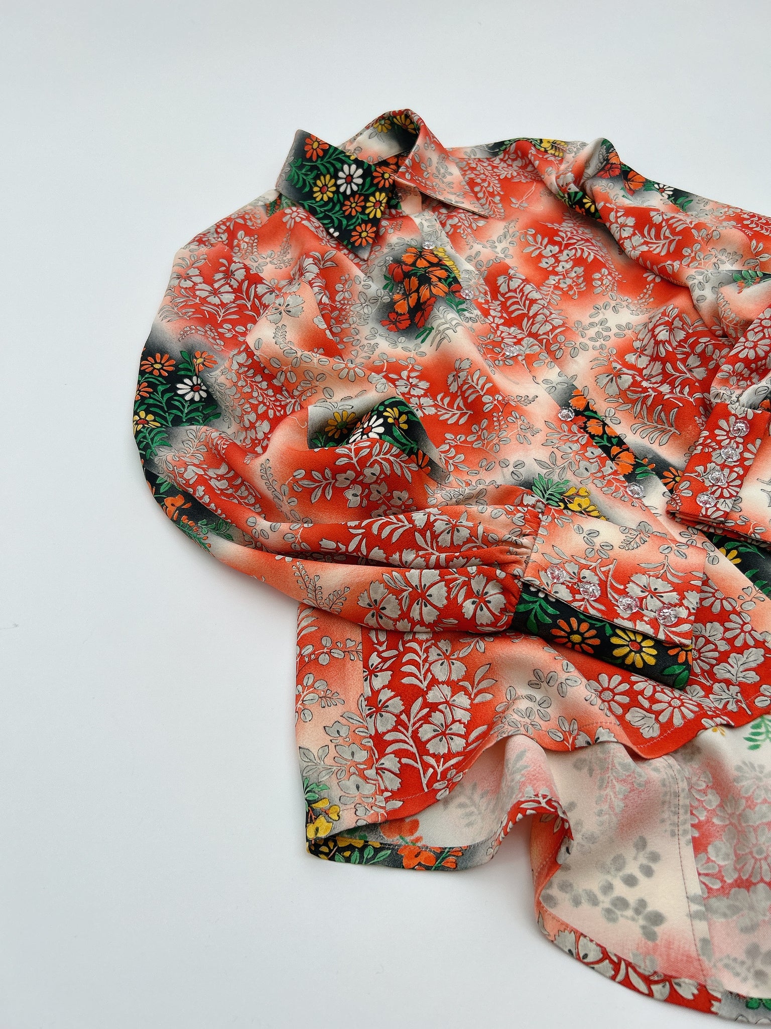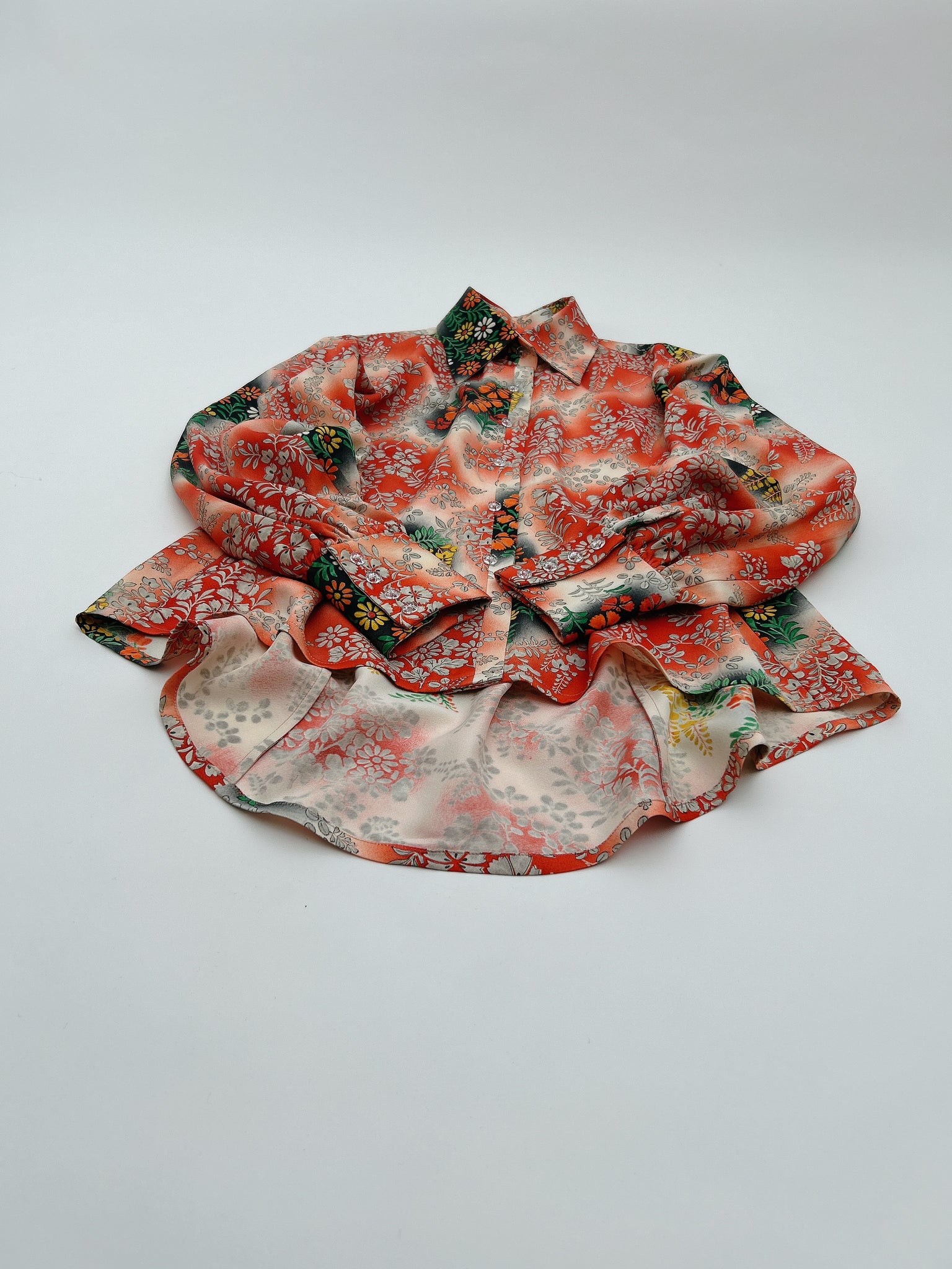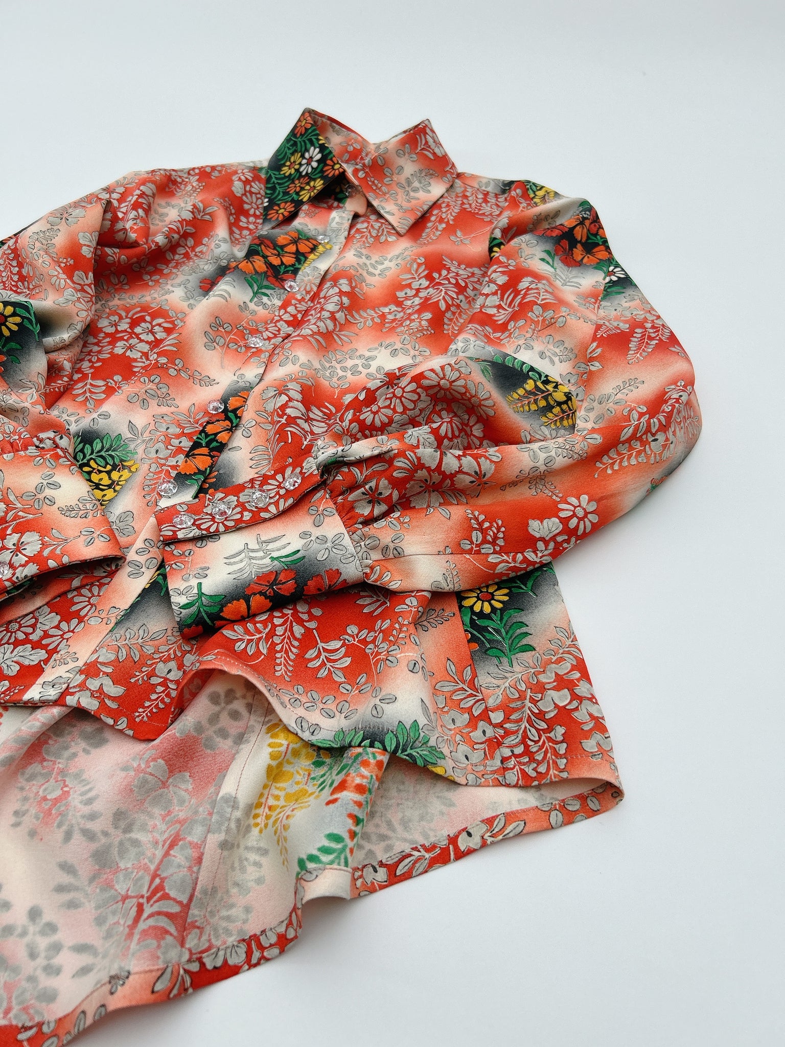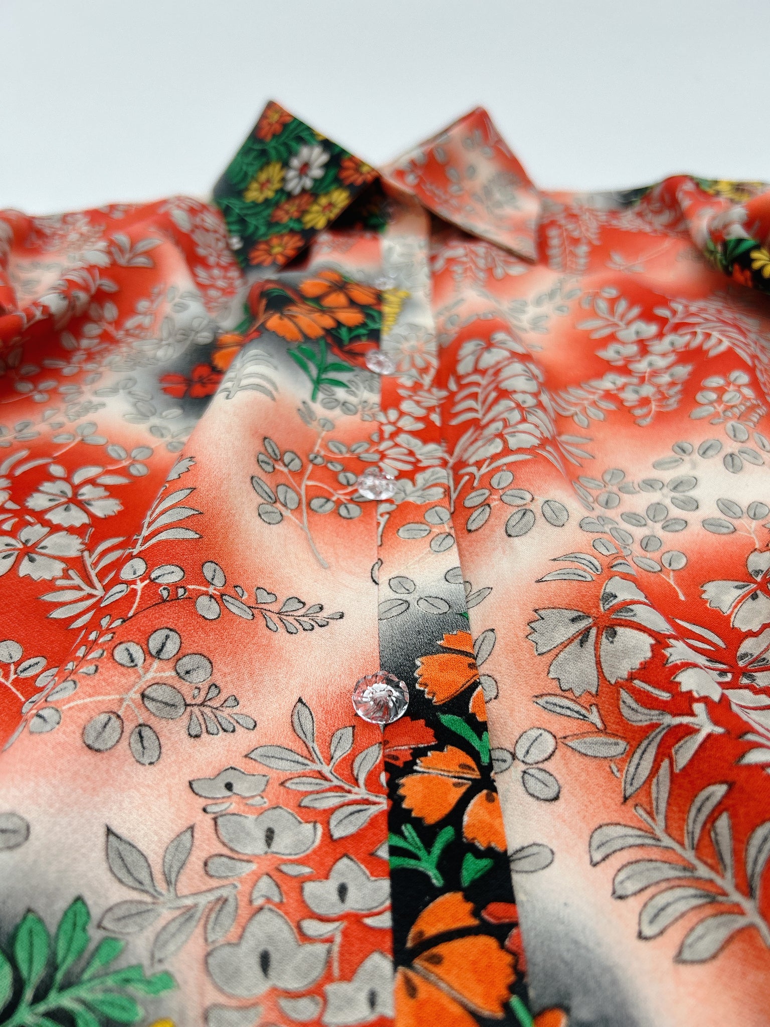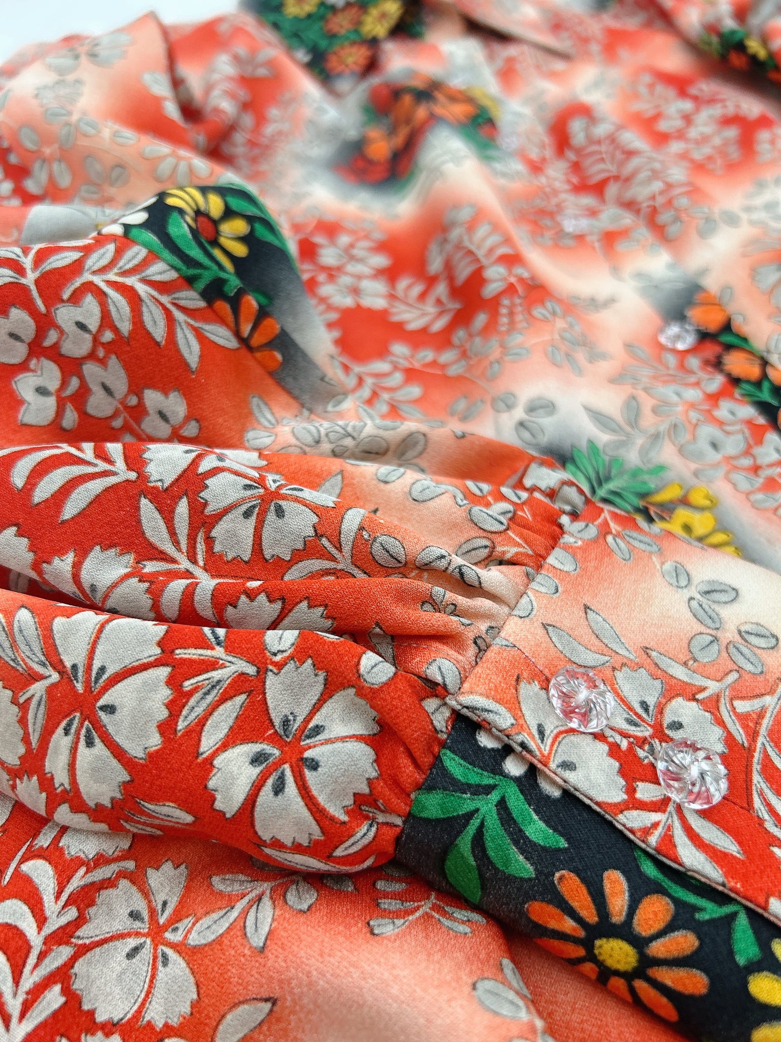 ⁑着物はシミや汚れ破れなどがつきもう着物としては着ることが難しくなったものや、ヴィンテージ、現代着物まで幅広く使用しておりますのでなるべくシミ汚れは逃がして仕立てております。が場合によっては少々アク、シミが付いてるものもございます。古いお着物の時代と時間の経過で現れるものですご理解のほどよろしくお願いもうしあげます。また正絹、化繊共に「防縮加工」をほどこしておりますのでご自宅でのお手入れが可能ですが、同じ色味艶状態を長く保たせるにはドライクリーニングがおすすめです。