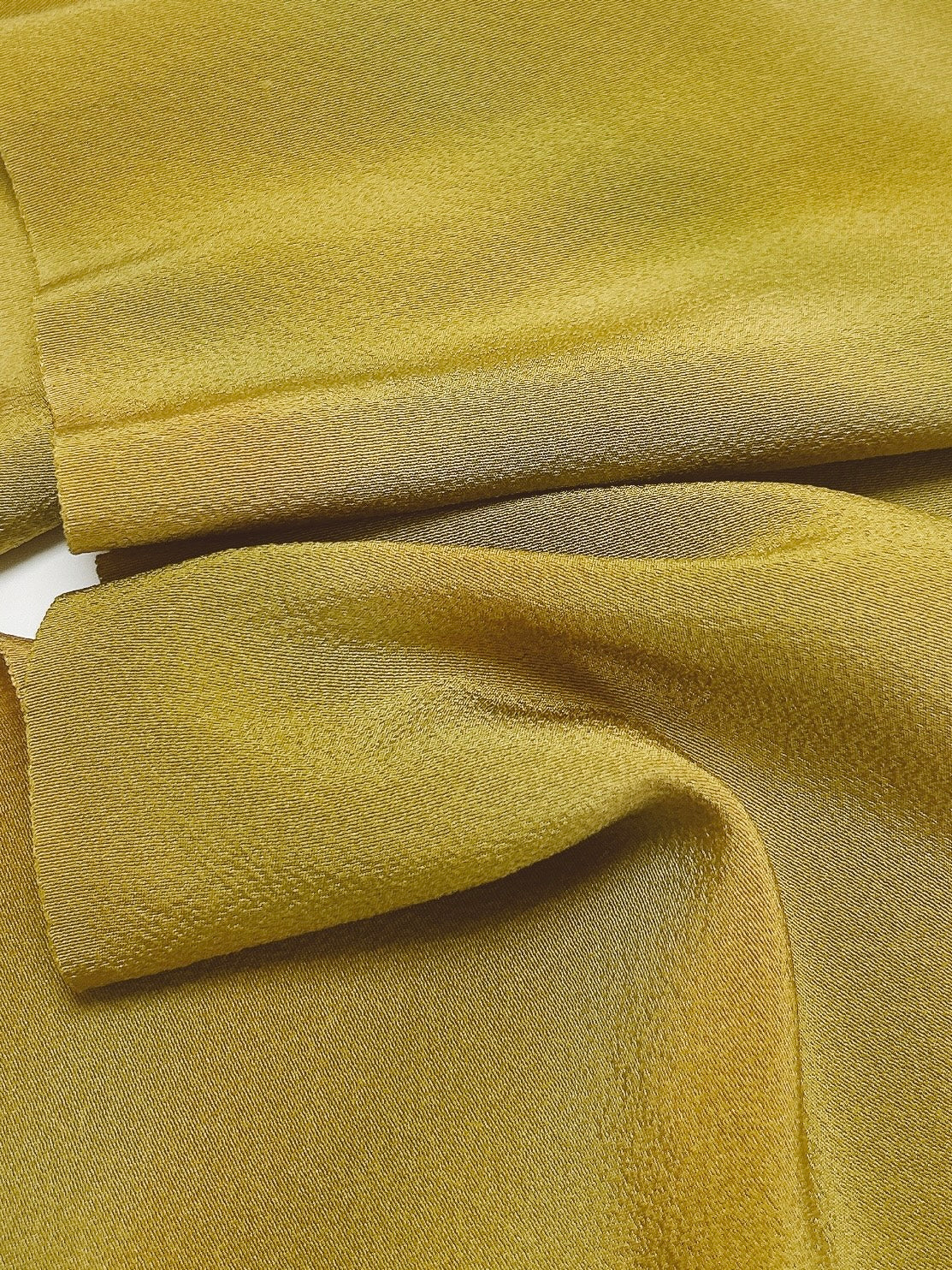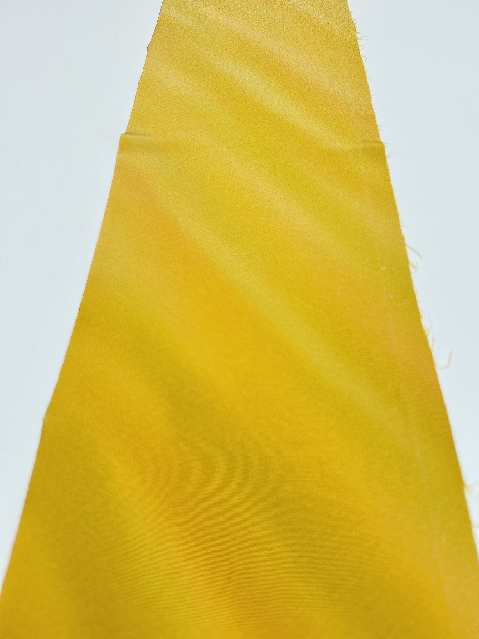 絹織物でございます、濡れた状態では摩擦に弱いため洗濯機でのお洗濯はお控えください、状態を綺麗に長く保つためにも手洗いでの手入れ、もしくはドライクリーニングがおすすめです。