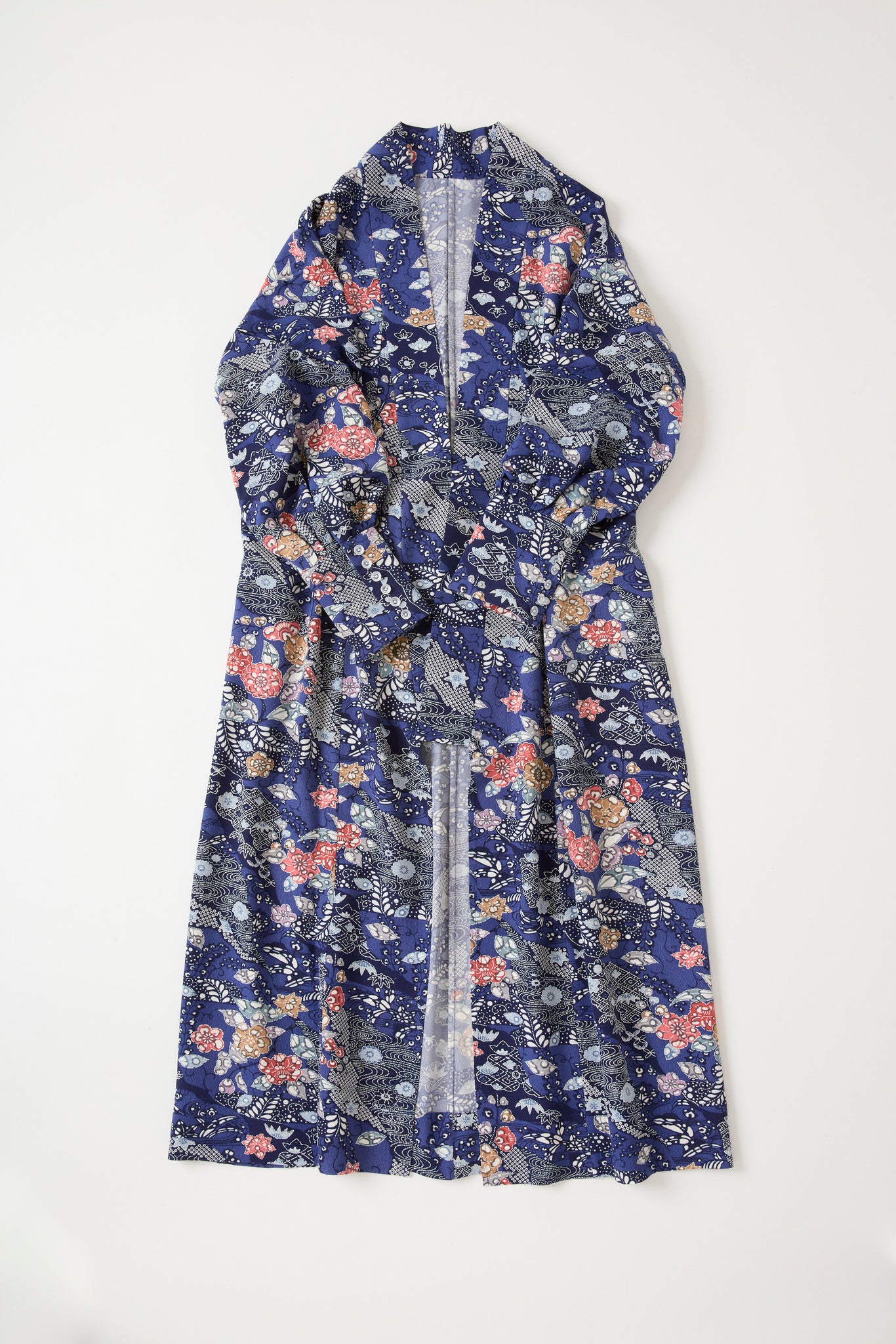 反物を極限まで活かすため3枚袖構造で立体的に。スリットがないためお着物に近いゆらめきが生まれます。
