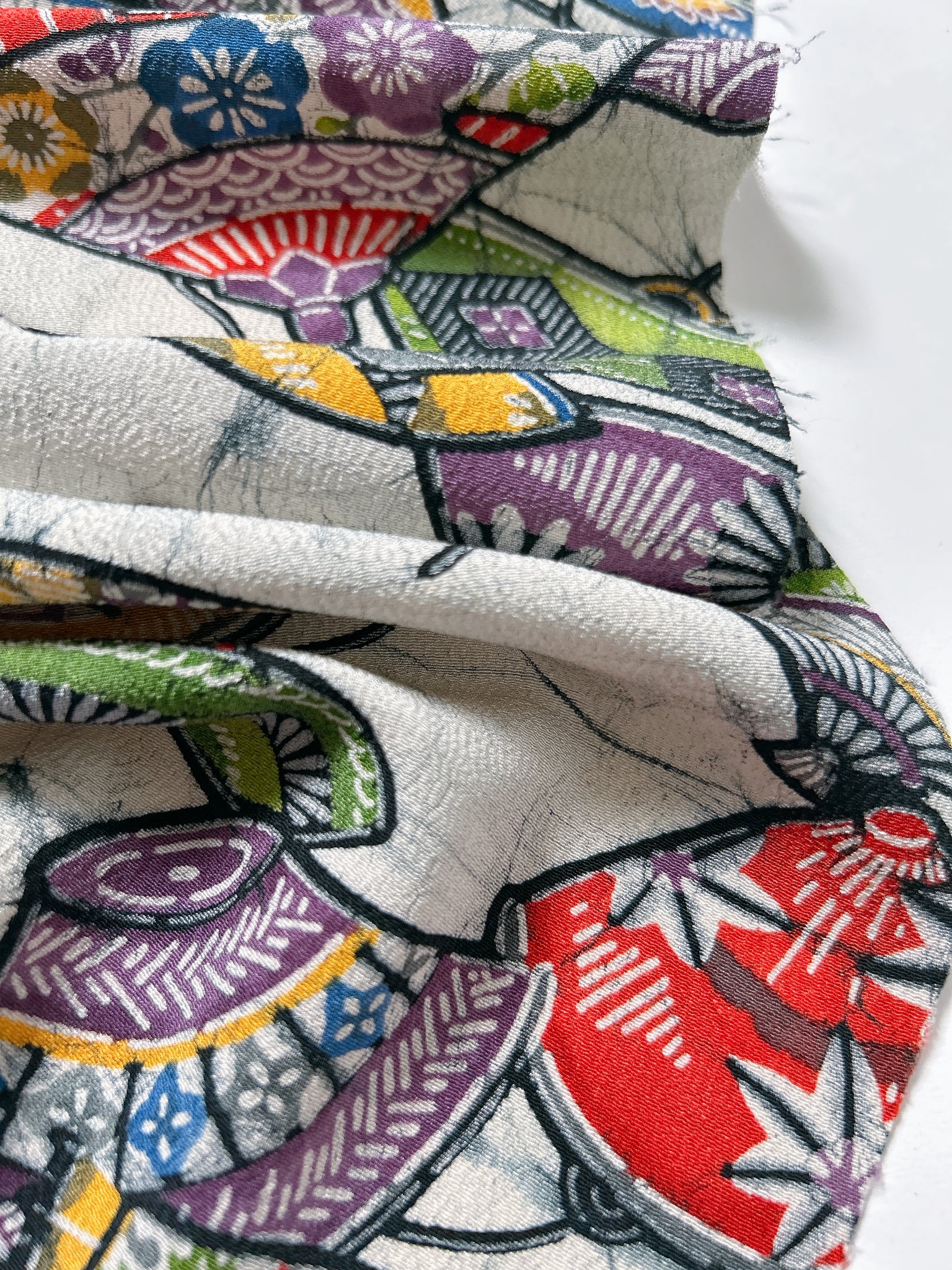 ⁑着物はシミや汚れ破れなどがつきもう着物としては着ることが難しくなったものや、ヴィンテージ、現代着物まで幅広く使用しておりますのでなるべくシミ汚れは逃がして仕立てております。が場合によっては少々アク、シミが付いてるものもございます。古いお着物の時代と時間の経過で現れるものですご理解のほどよろしくお願いもうしあげます。また正絹、化繊共に「防縮加工」をほどこしておりますのでご自宅でのお手入れが可能です。