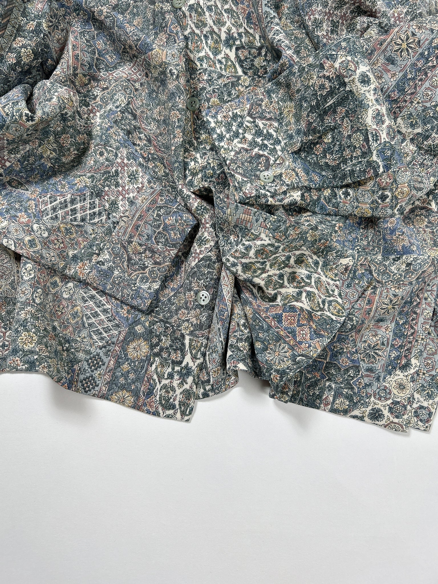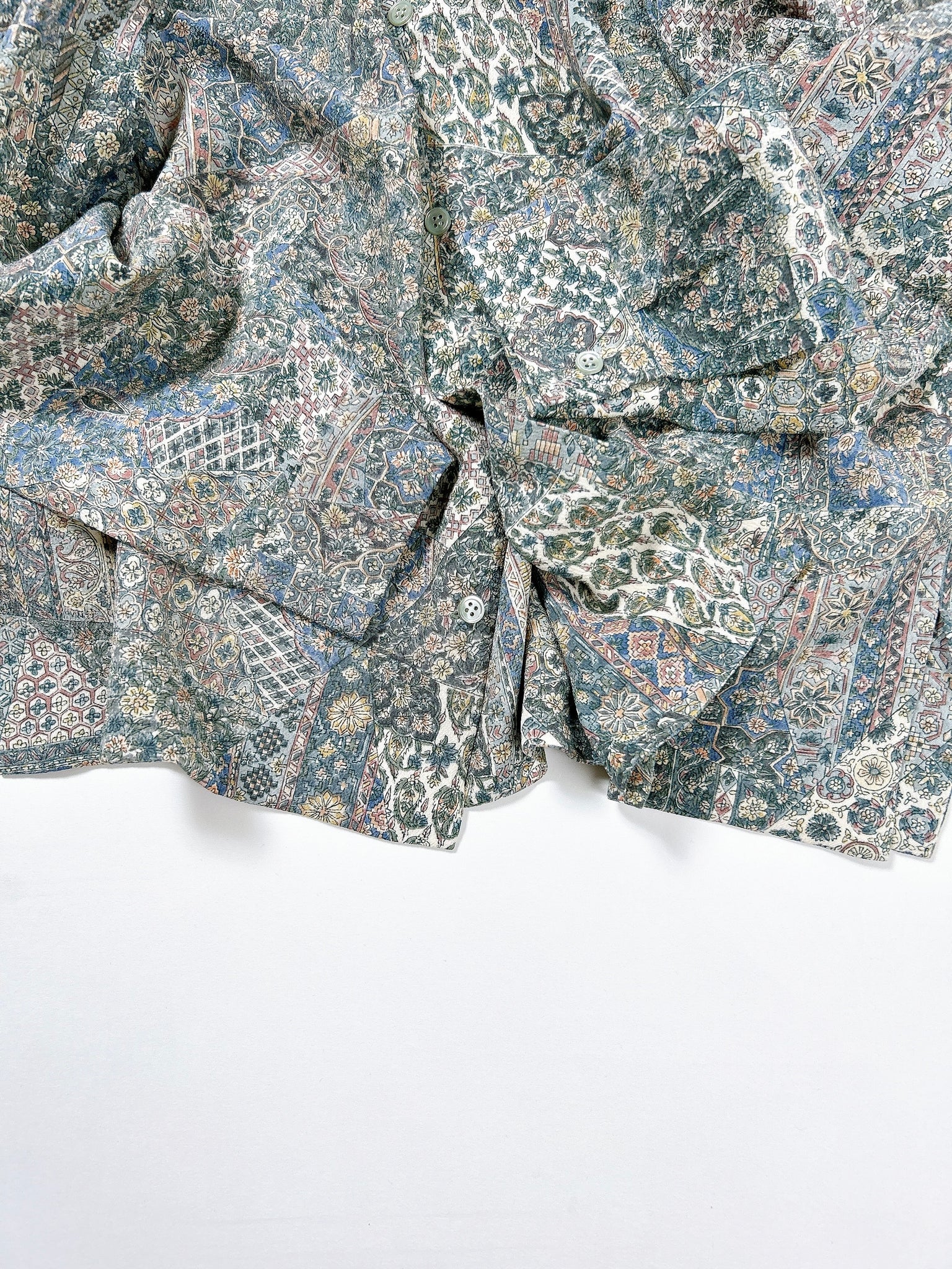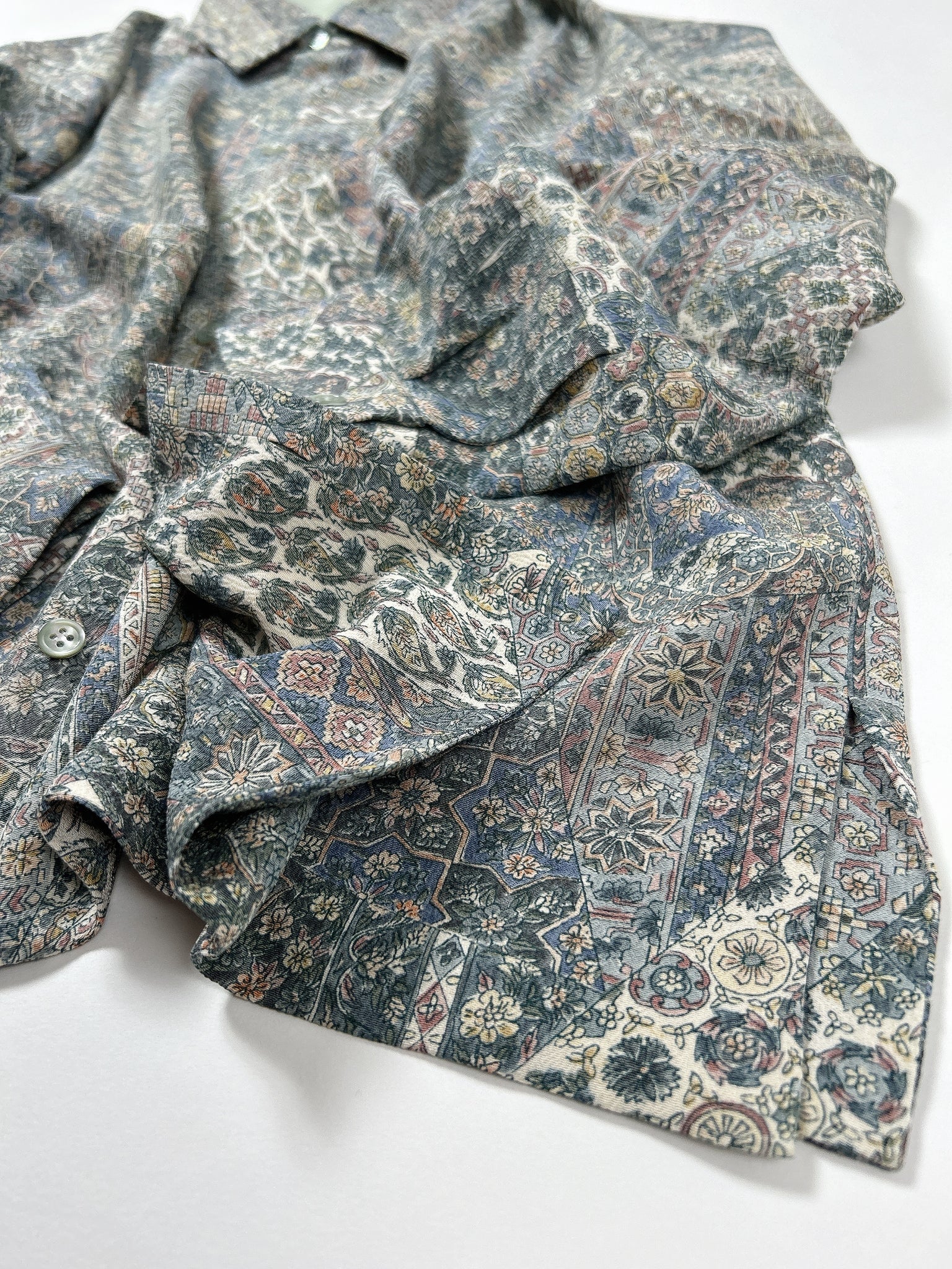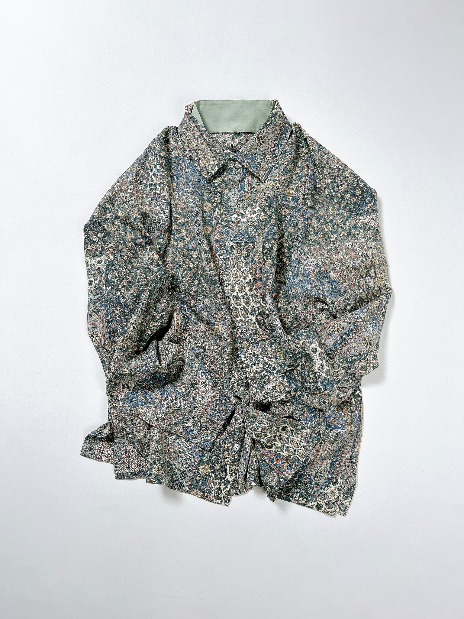 これまでと変わらず、ケニシャツは一反(約12メートル)のお着物生地を余すことなく使用し、総裏仕立ての二枚合わせにてお作りしております。そのため、程よい厚みと重みがあり、お着物一反から一点のみお作りできる、貴重なお品です。