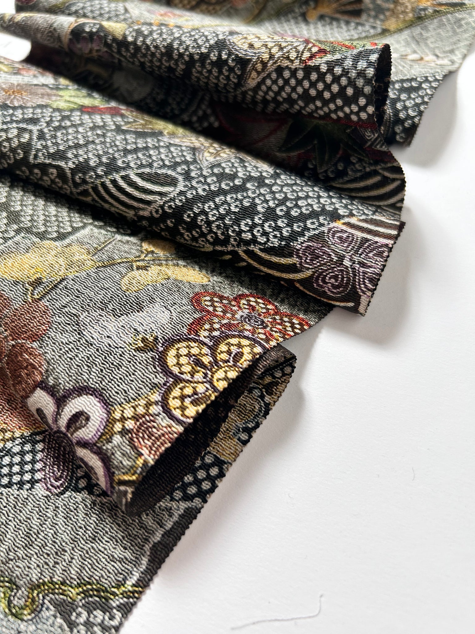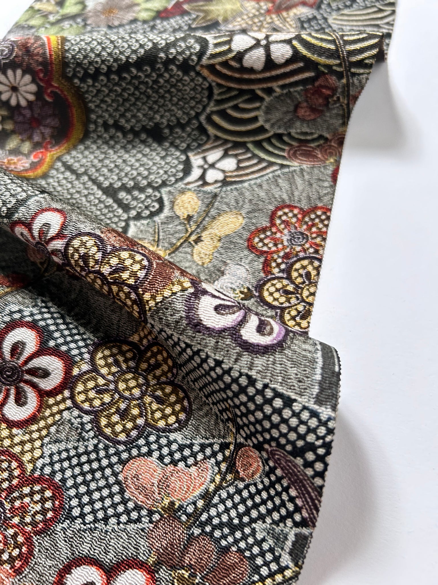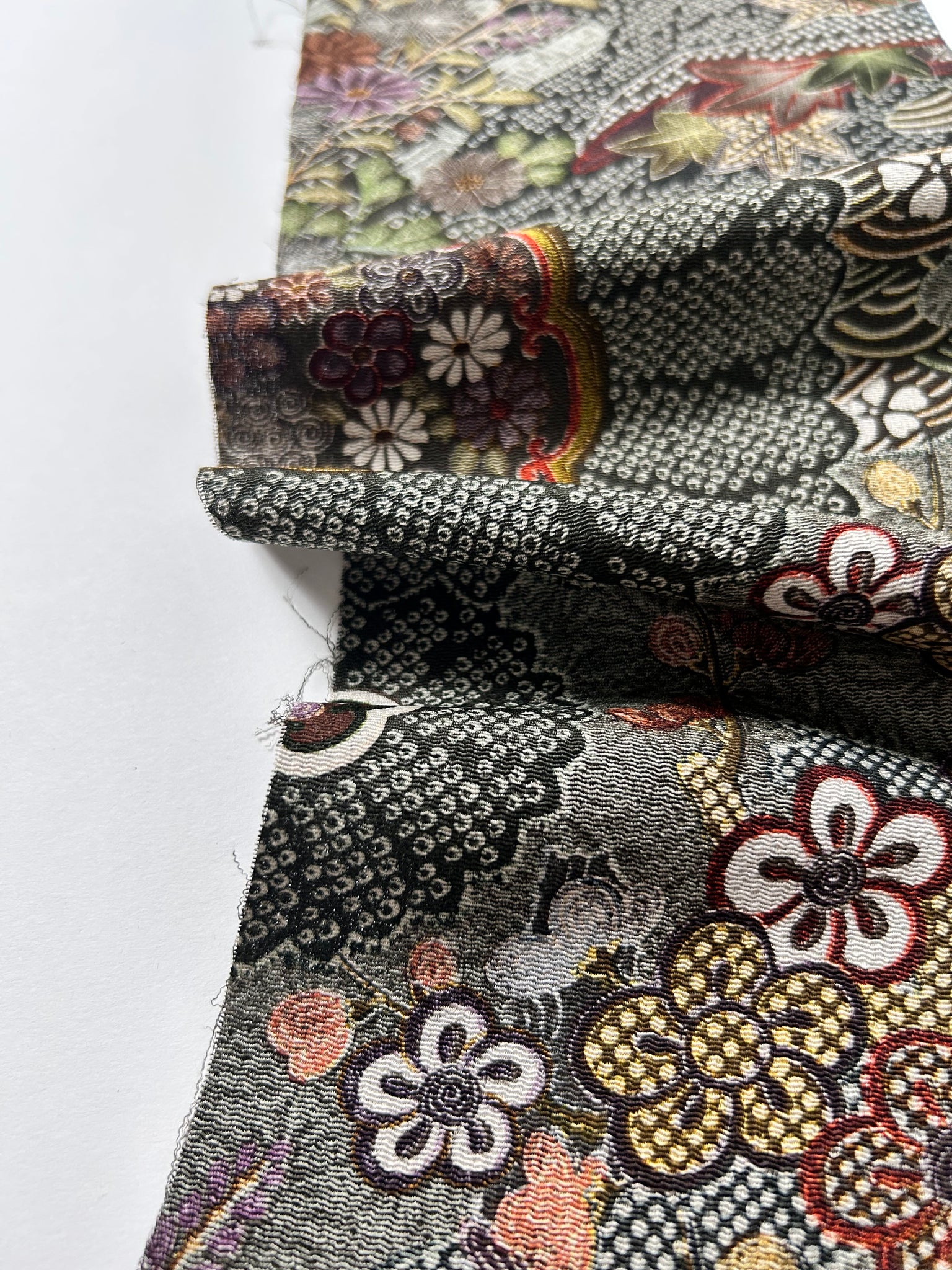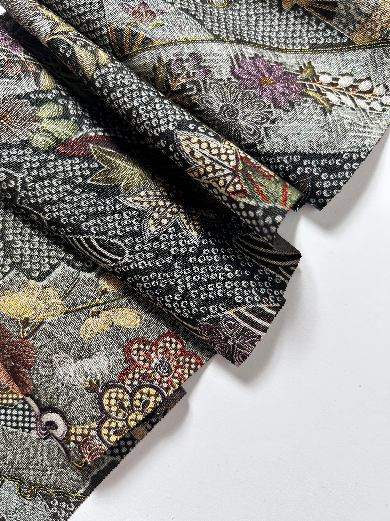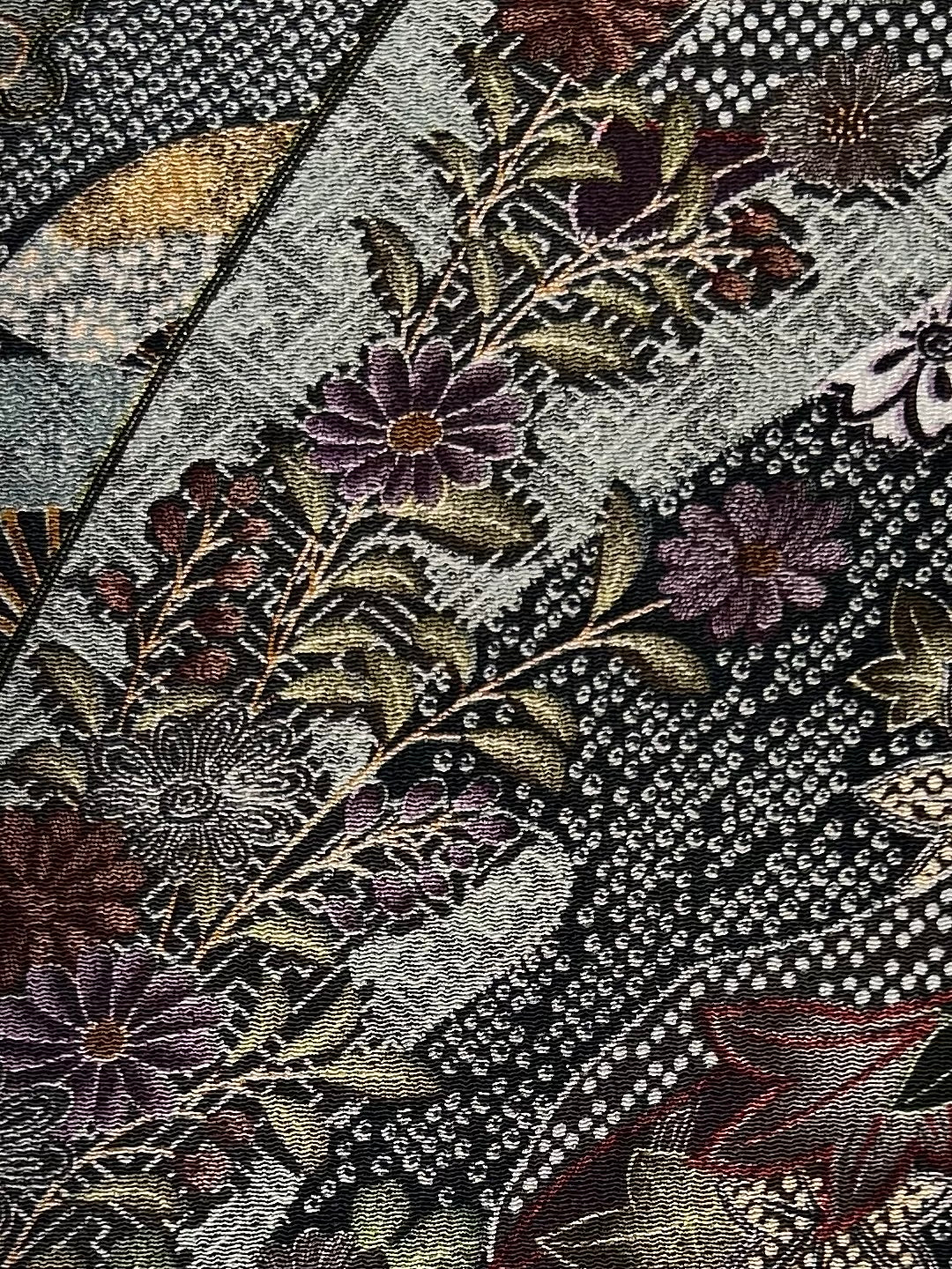 また、袖裏にはお着物の裏地として用いられる「同裏」の羽二重を、新たに織り・染め上げた絹生地で仕立てております。非常に滑らかで、腕通しの良い、心地よい着用感をお楽しみいただけます。
