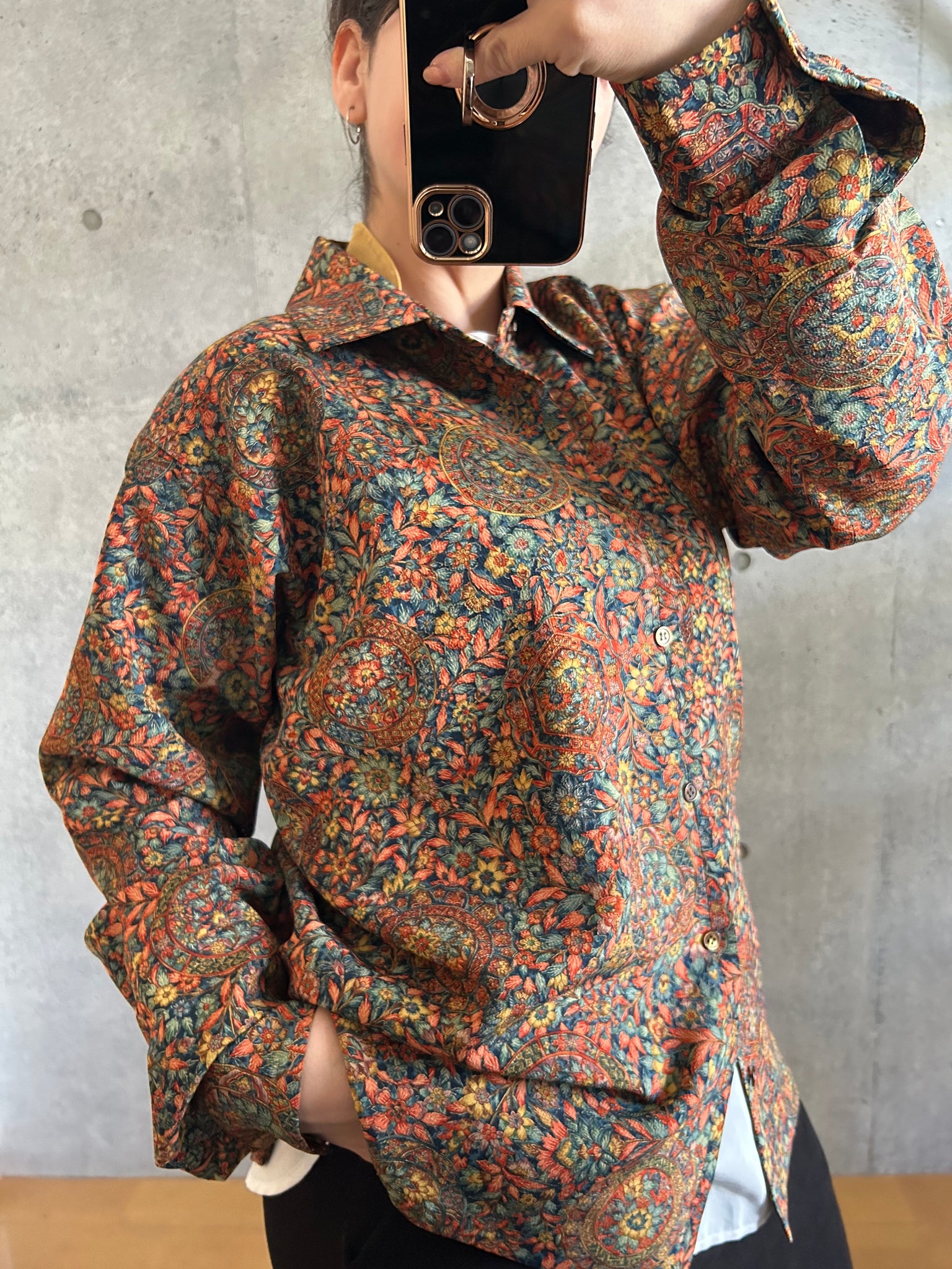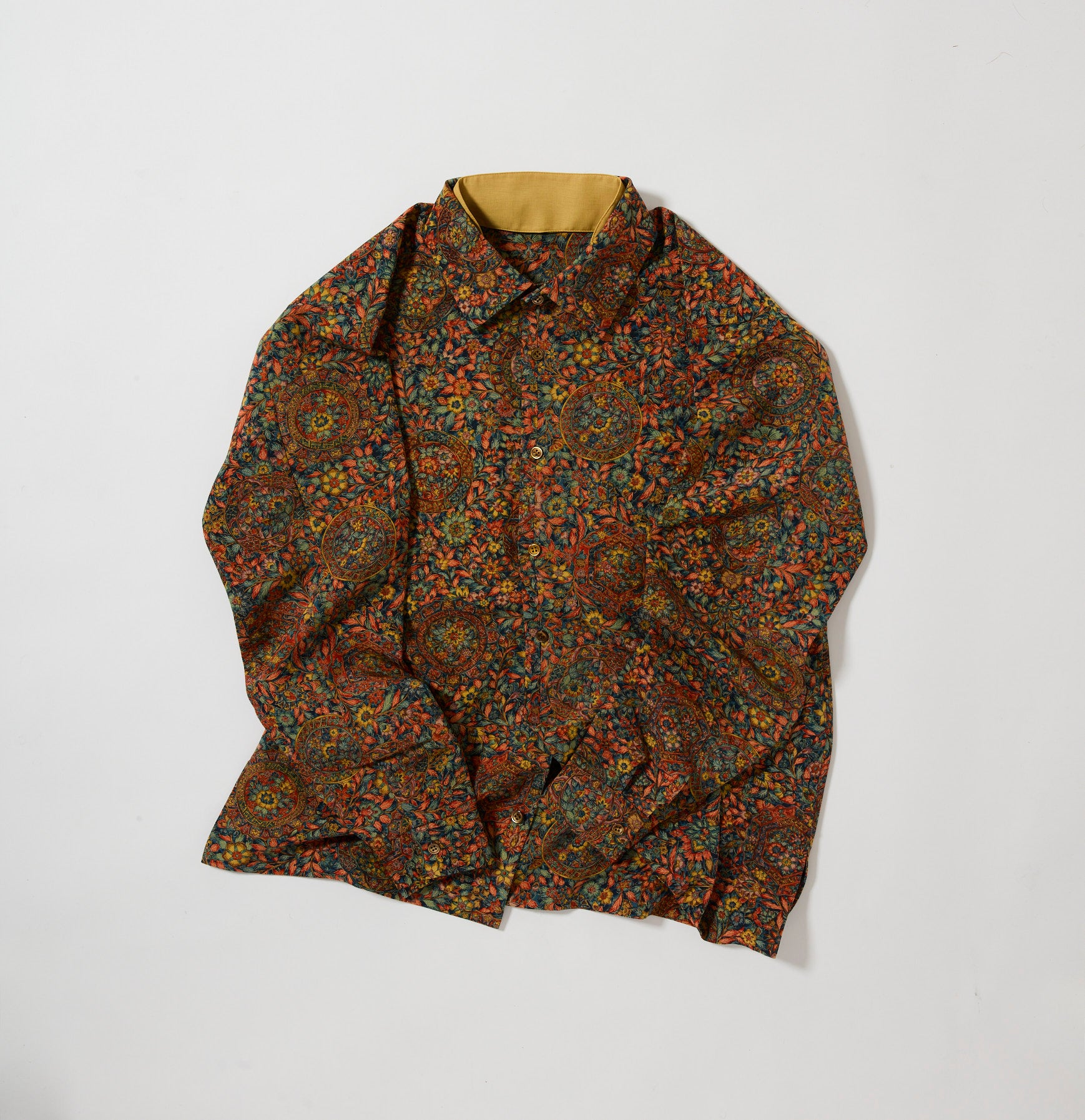 これまでと変わらず、ケニシャツは一反(約12メートル)のお着物生地を余すことなく使用し、総裏仕立ての二枚合わせにてお作りしております。そのため、程よい厚みと重みがあり、お着物一反から一点のみお作りできる、貴重なお品です。