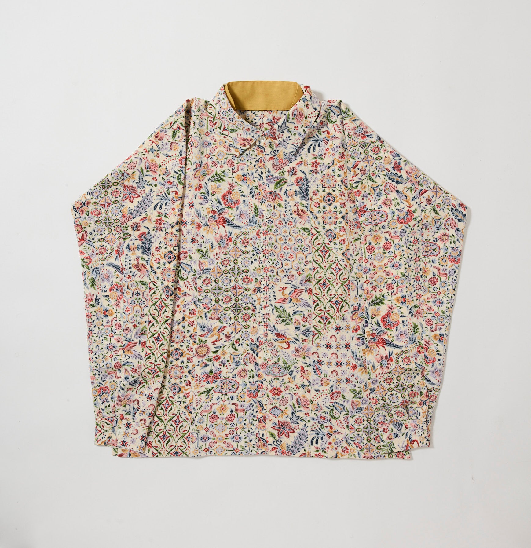これまでと変わらず、ケニシャツは一反(約12メートル)のお着物生地を余すことなく使用し、総裏仕立ての二枚合わせにてお作りしております。そのため、程よい厚みと重みがあり、お着物一反から一点のみお作りできる、貴重なお品です。