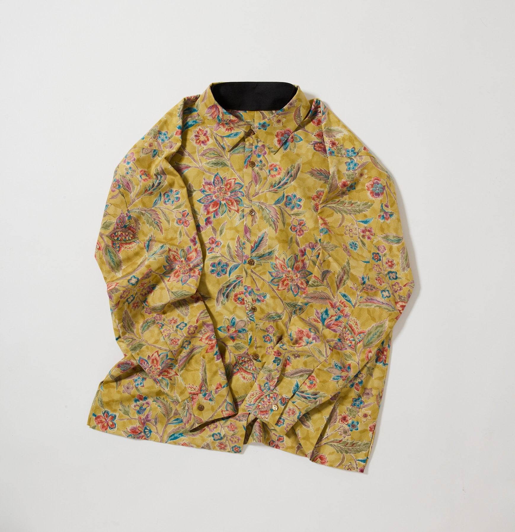 これまでと変わらず、ケニシャツは一反(約12メートル)のお着物生地を余すことなく使用し、総裏仕立ての二枚合わせにてお作りしております。そのため、程よい厚みと重みがあり、お着物一反から一点のみお作りできる、貴重なお品です。