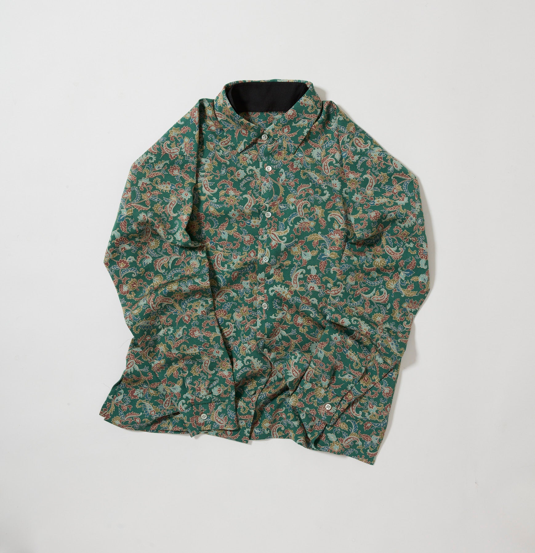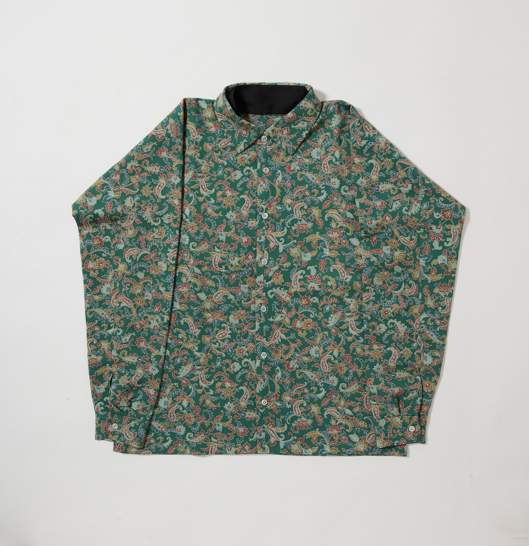 今季は、和裁の縫製仕様を踏襲するだけでなく、より「きものを纏う感覚」に近づけるために、シャツとしての肩線やヨークを省き、首元には付け襟を施しました。これにより、首回りのカーブをお着物の襟に見立てた、独自の設計となっております。