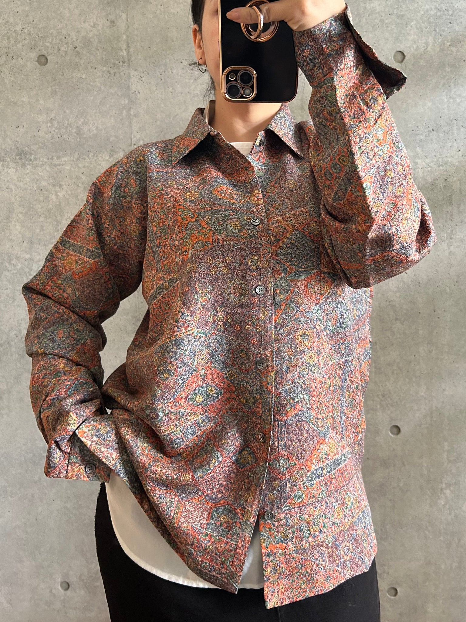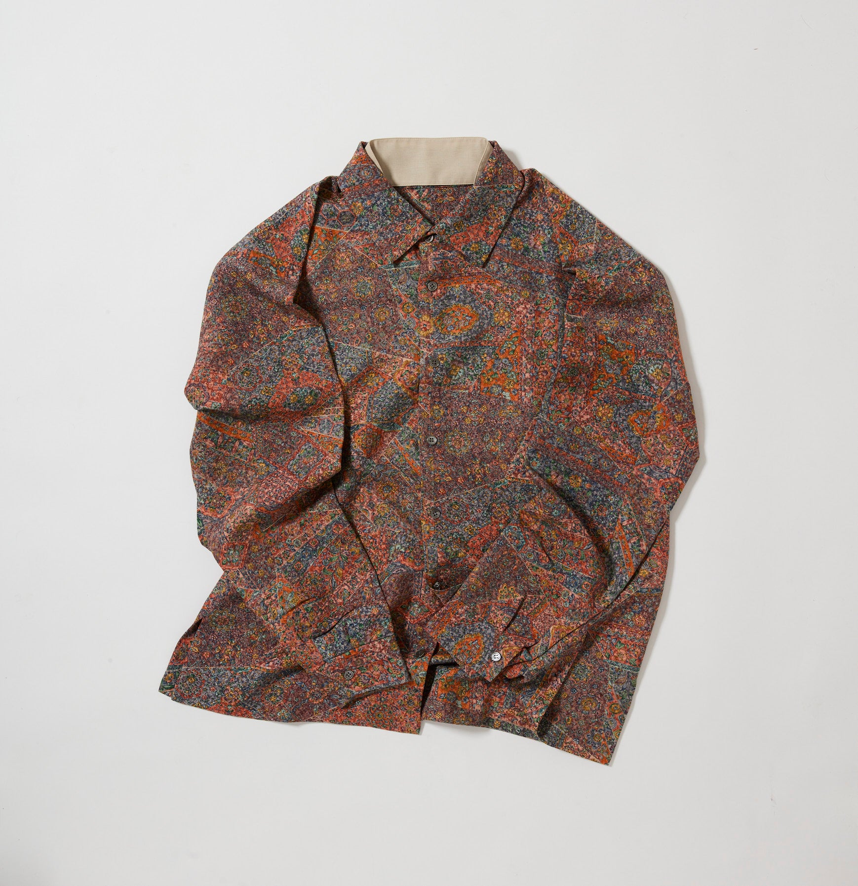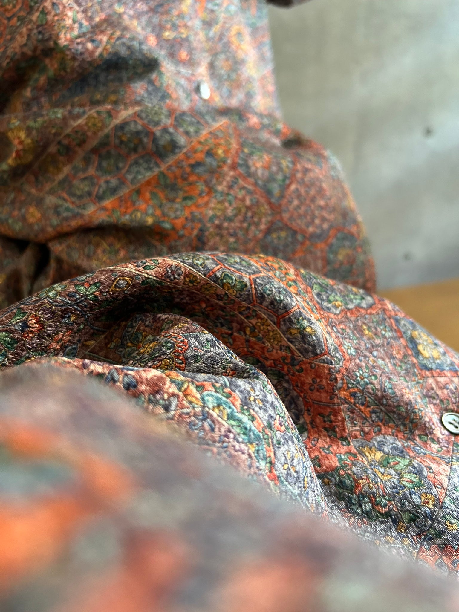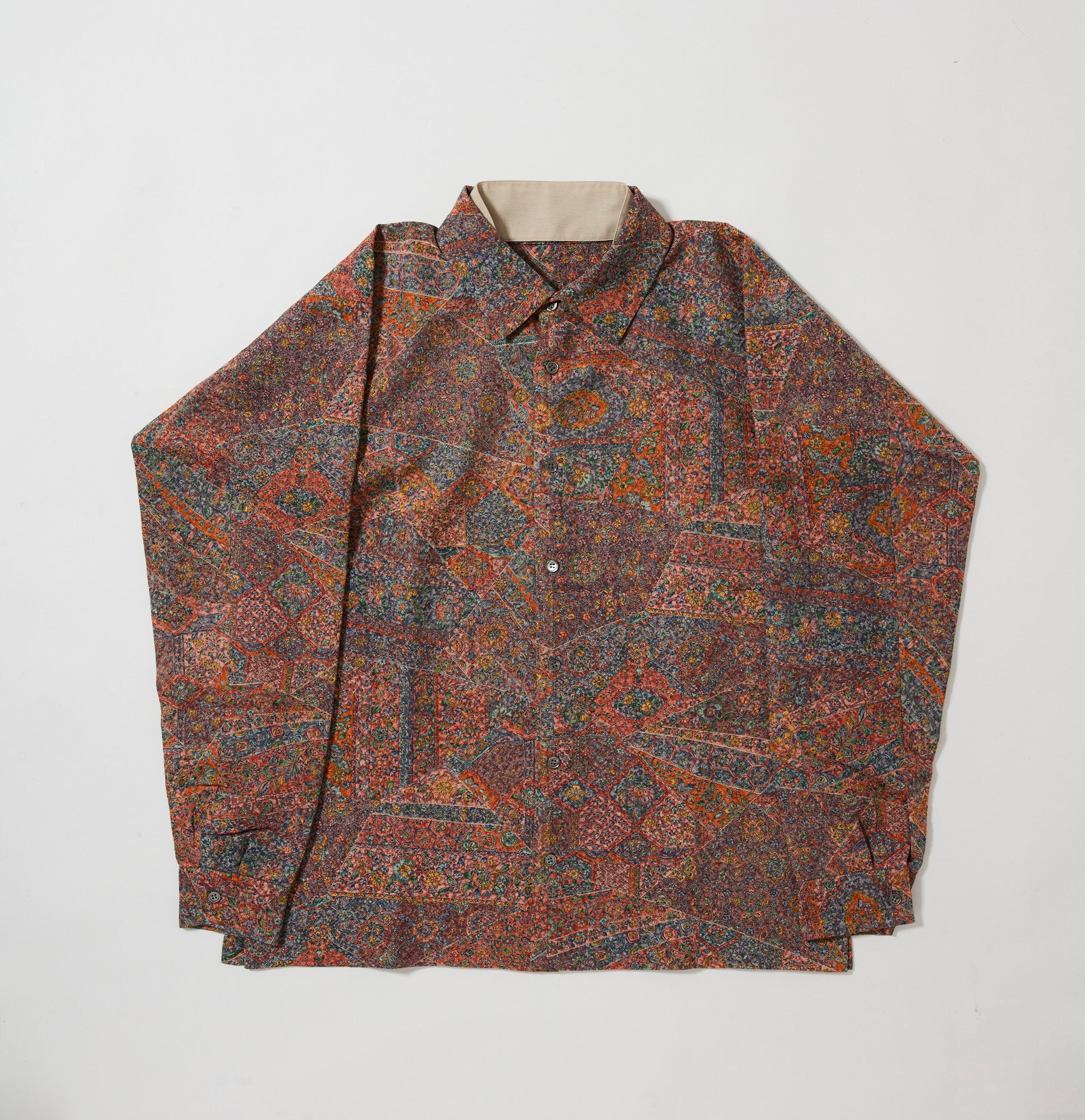 これまでと変わらず、ケニシャツは一反(約12メートル)のお着物生地を余すことなく使用し、総裏仕立ての二枚合わせにてお作りしております。そのため、程よい厚みと重みがあり、お着物一反から一点のみお作りできる、貴重なお品です。