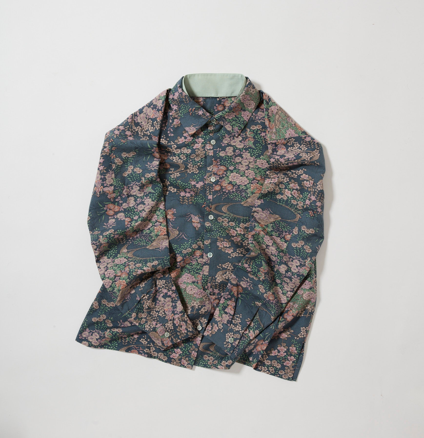 これまでと変わらず、ケニシャツは一反(約12メートル)のお着物生地を余すことなく使用し、総裏仕立ての二枚合わせにてお作りしております。そのため、程よい厚みと重みがあり、お着物一反から一点のみお作りできる、貴重なお品です。