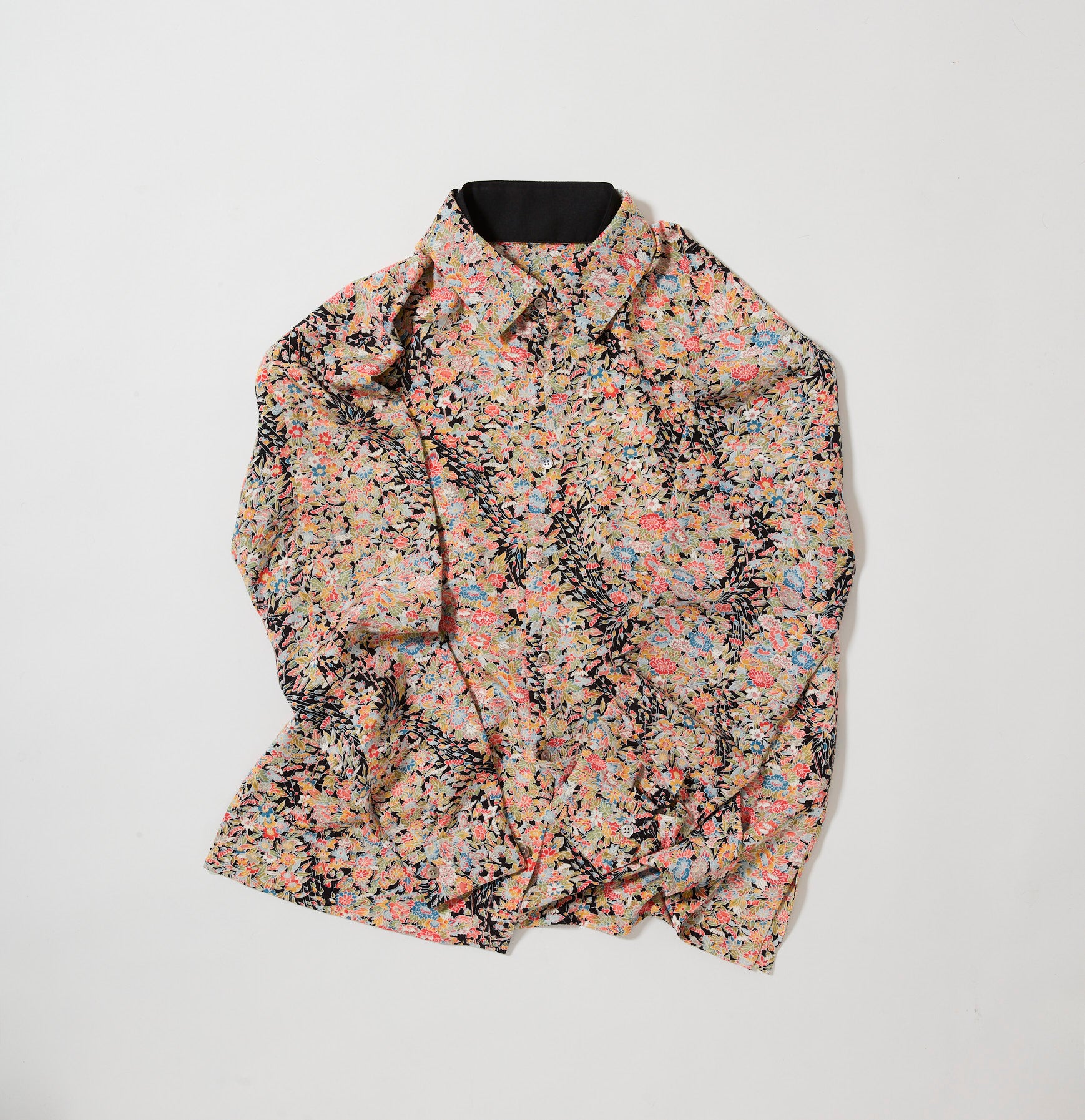今季は、和裁の縫製仕様を踏襲するだけでなく、より「きものを纏う感覚」に近づけるために、シャツとしての肩線やヨークを省き、首元には付け襟を施しました。これにより、首回りのカーブをお着物の襟に見立てた、独自の設計となっております。