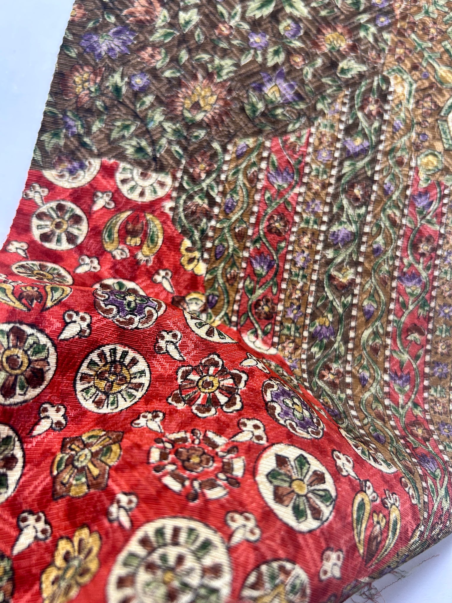 ⁑着物はシミや汚れ破れなどがつきもう着物としては着ることが難しくなったものや、ヴィンテージ、現代着物まで幅広く使用しておりますのでなるべくシミ汚れは逃がして仕立てております。が場合によっては少々アク、シミが付いてるものもございます。古いお着物の時代と時間の経過で現れるものですご理解のほどよろしくお願いもうしあげます。また正絹、化繊共に「防縮加工」をほどこしておりますのでご自宅でのお手入れが可能です。