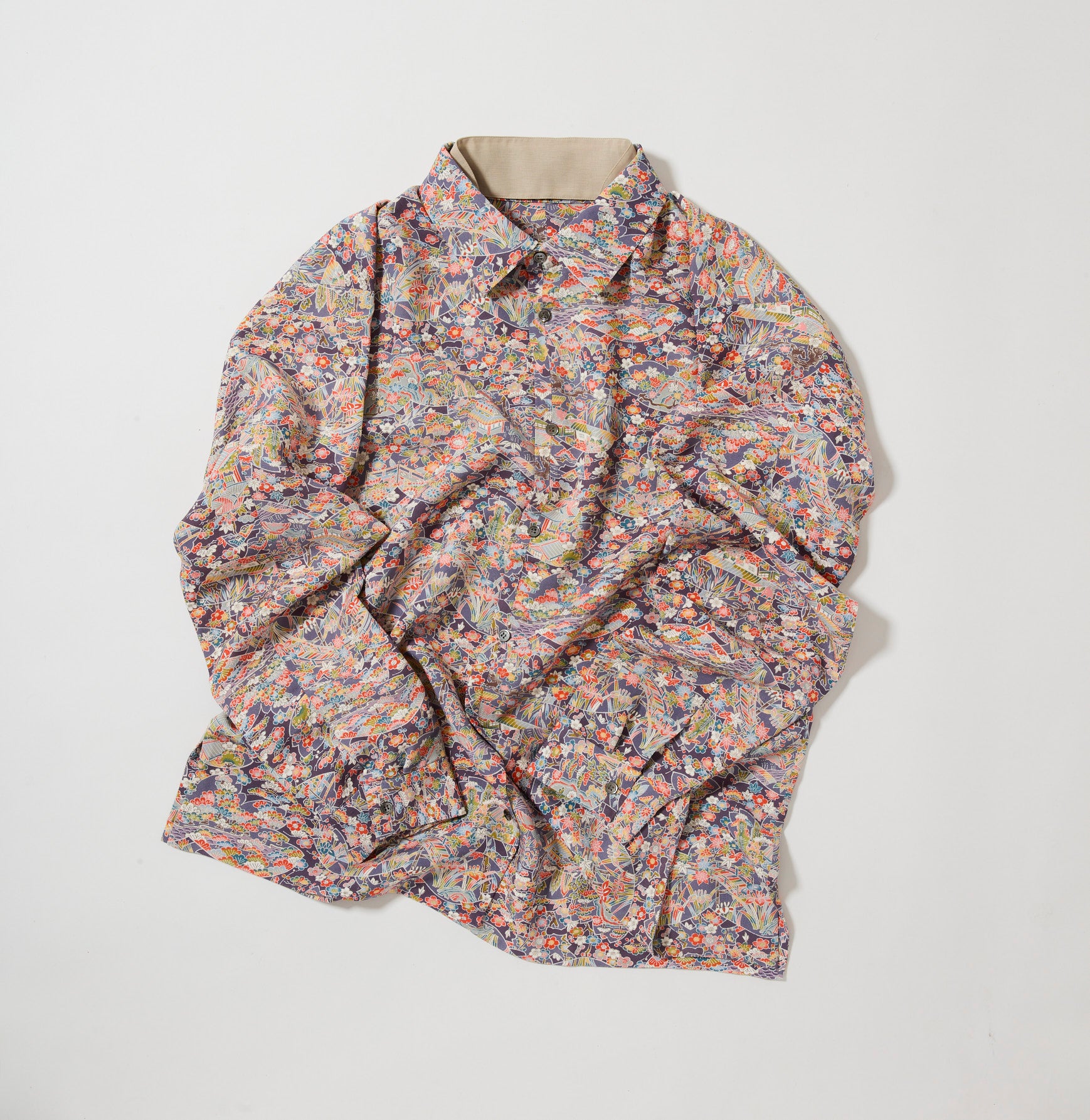 今季は、和裁の縫製仕様を踏襲するだけでなく、より「きものを纏う感覚」に近づけるために、シャツとしての肩線やヨークを省き、首元には付け襟を施しました。これにより、首回りのカーブをお着物の襟に見立てた、独自の設計となっております。