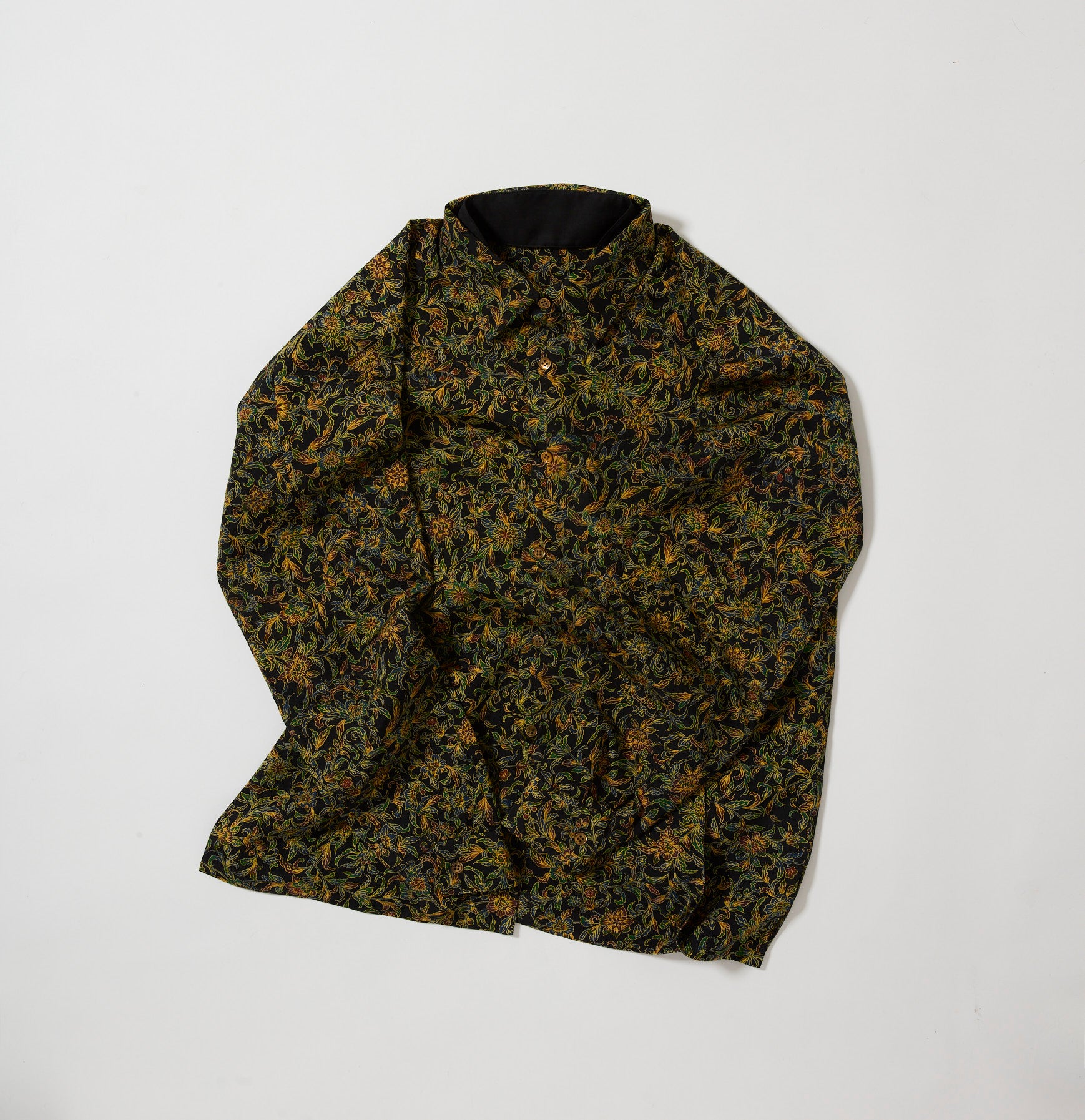 今季は、和裁の縫製仕様を踏襲するだけでなく、より「きものを纏う感覚」に近づけるために、シャツとしての肩線やヨークを省き、首元には付け襟を施しました。これにより、首回りのカーブをお着物の襟に見立てた、独自の設計となっております。