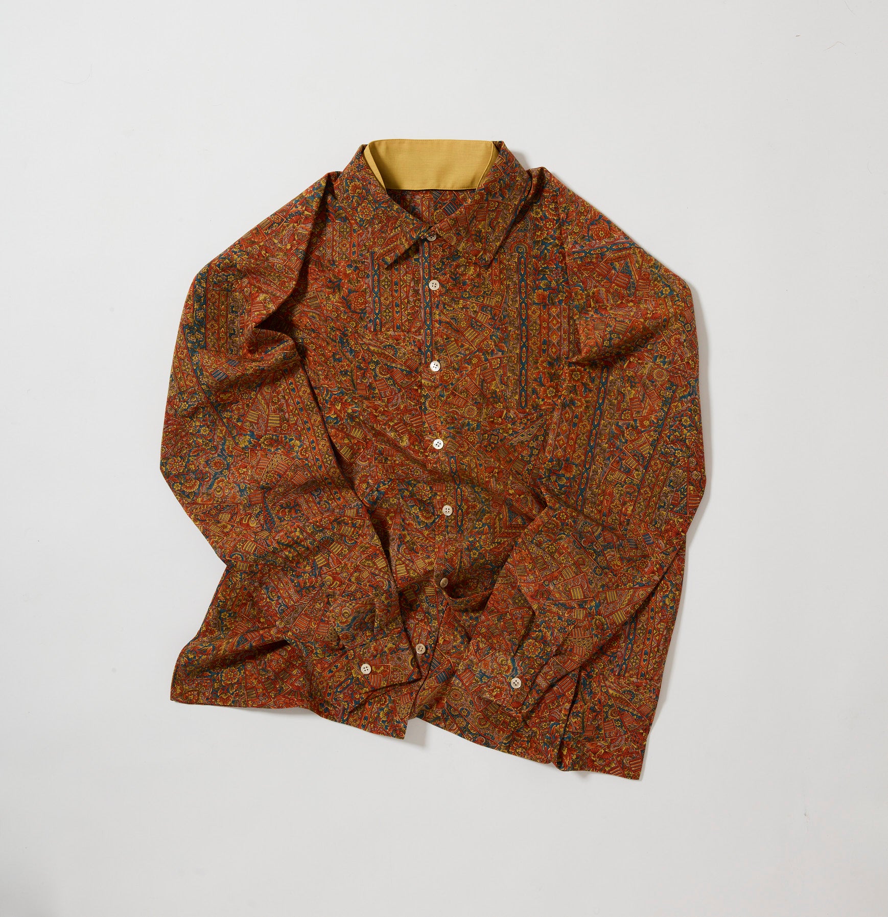 これまでと変わらず、ケニシャツは一反(約12メートル)のお着物生地を余すことなく使用し、総裏仕立ての二枚合わせにてお作りしております。そのため、程よい厚みと重みがあり、お着物一反から一点のみお作りできる、貴重なお品です。
