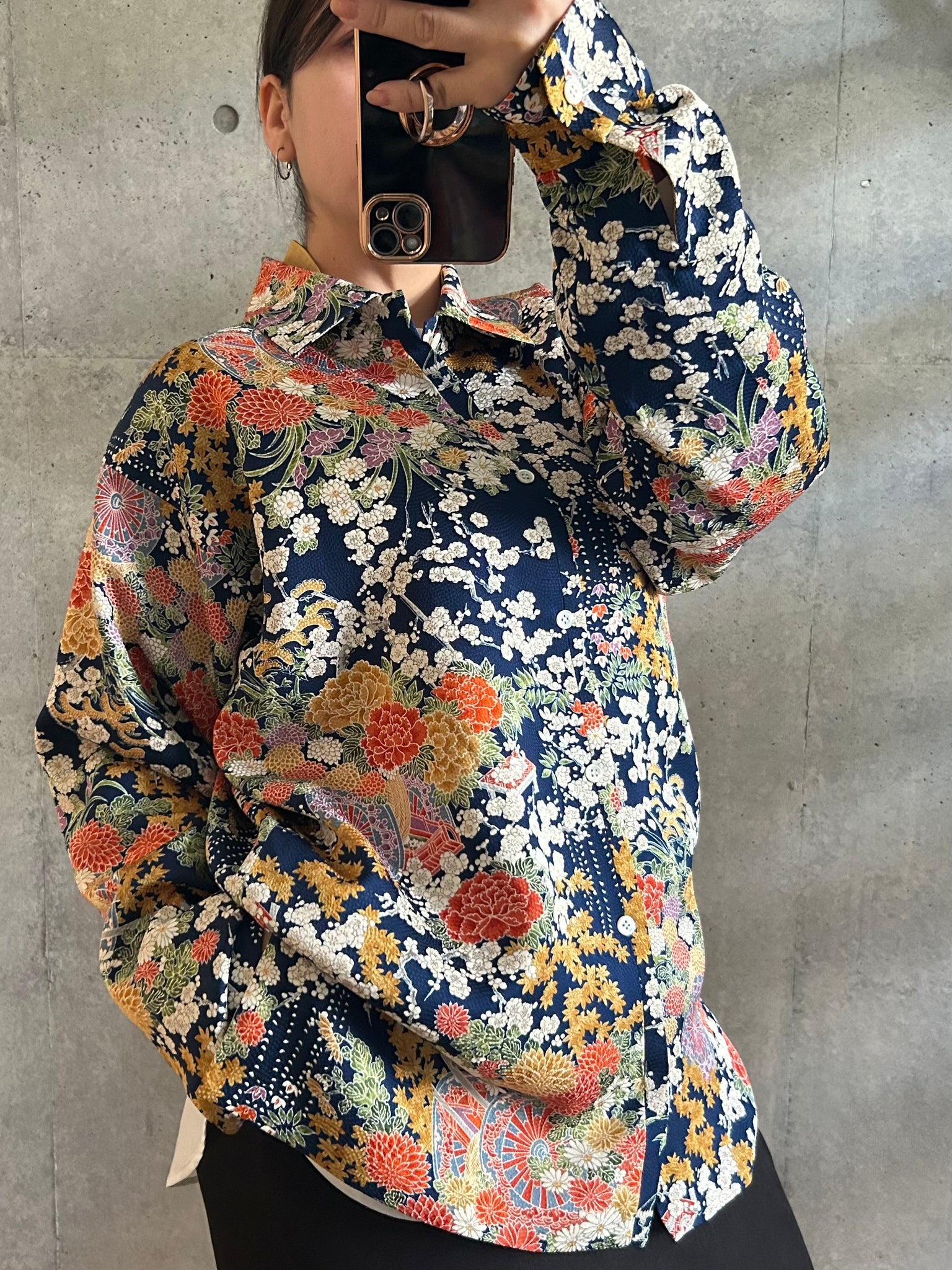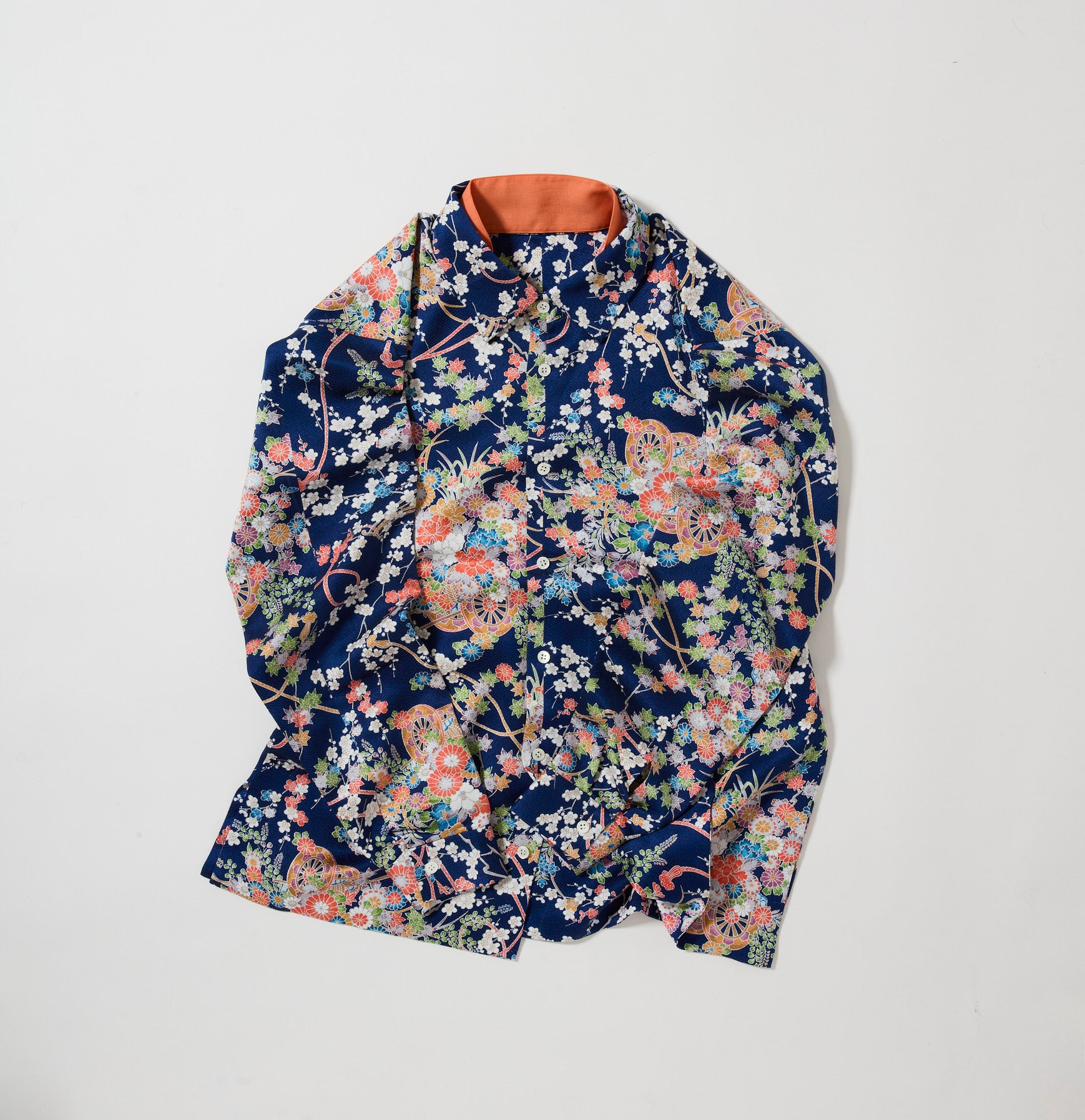これまでと変わらず、ケニシャツは一反(約12メートル)のお着物生地を余すことなく使用し、総裏仕立ての二枚合わせにてお作りしております。そのため、程よい厚みと重みがあり、お着物一反から一点のみお作りできる、貴重なお品です。