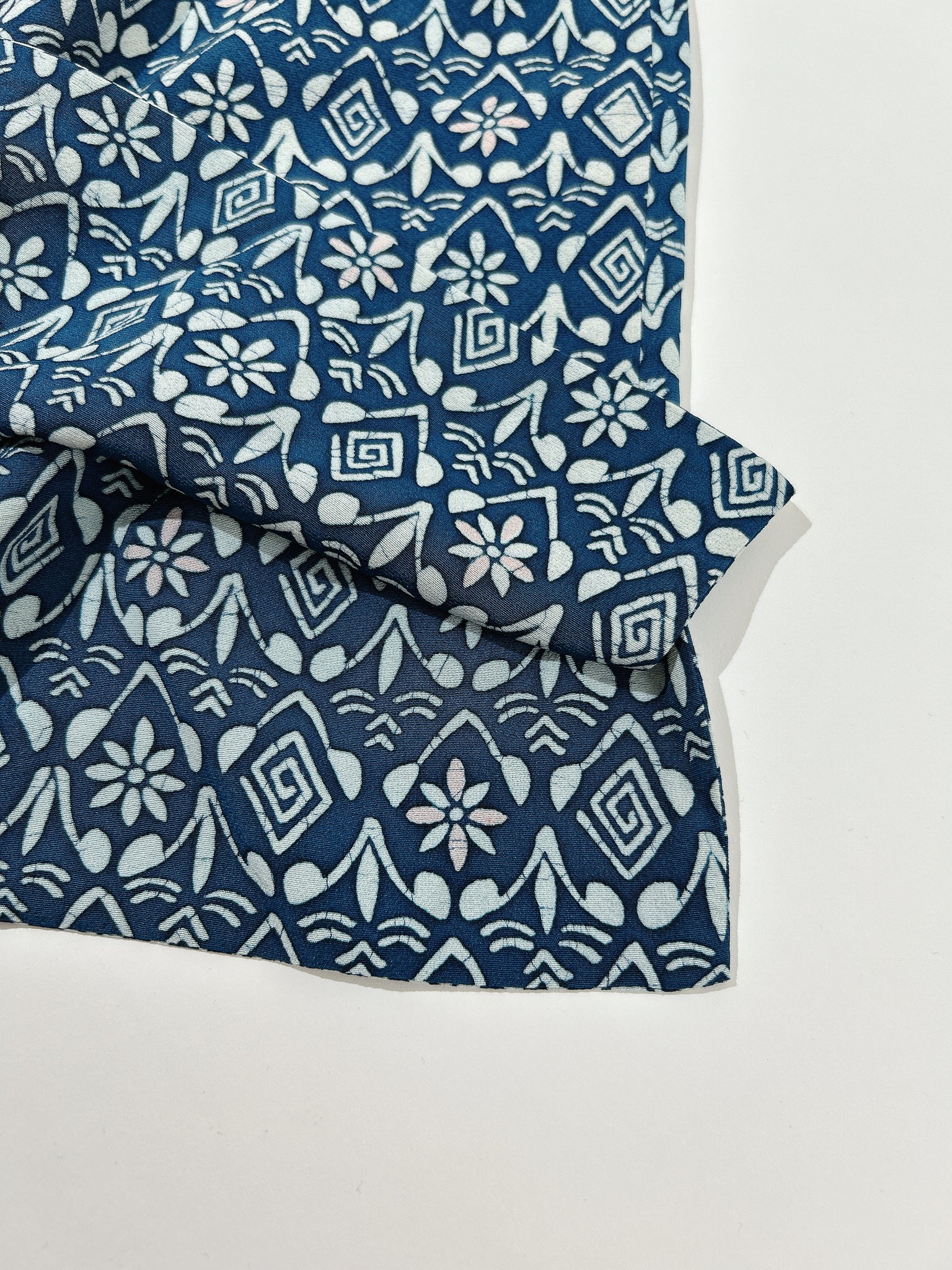極力垂直断ちにすることでまるでおきものを纏っている様な着心地とシルエットにデザインいたしました。着物を着ることが難しくても、せめて反物から作られる服には