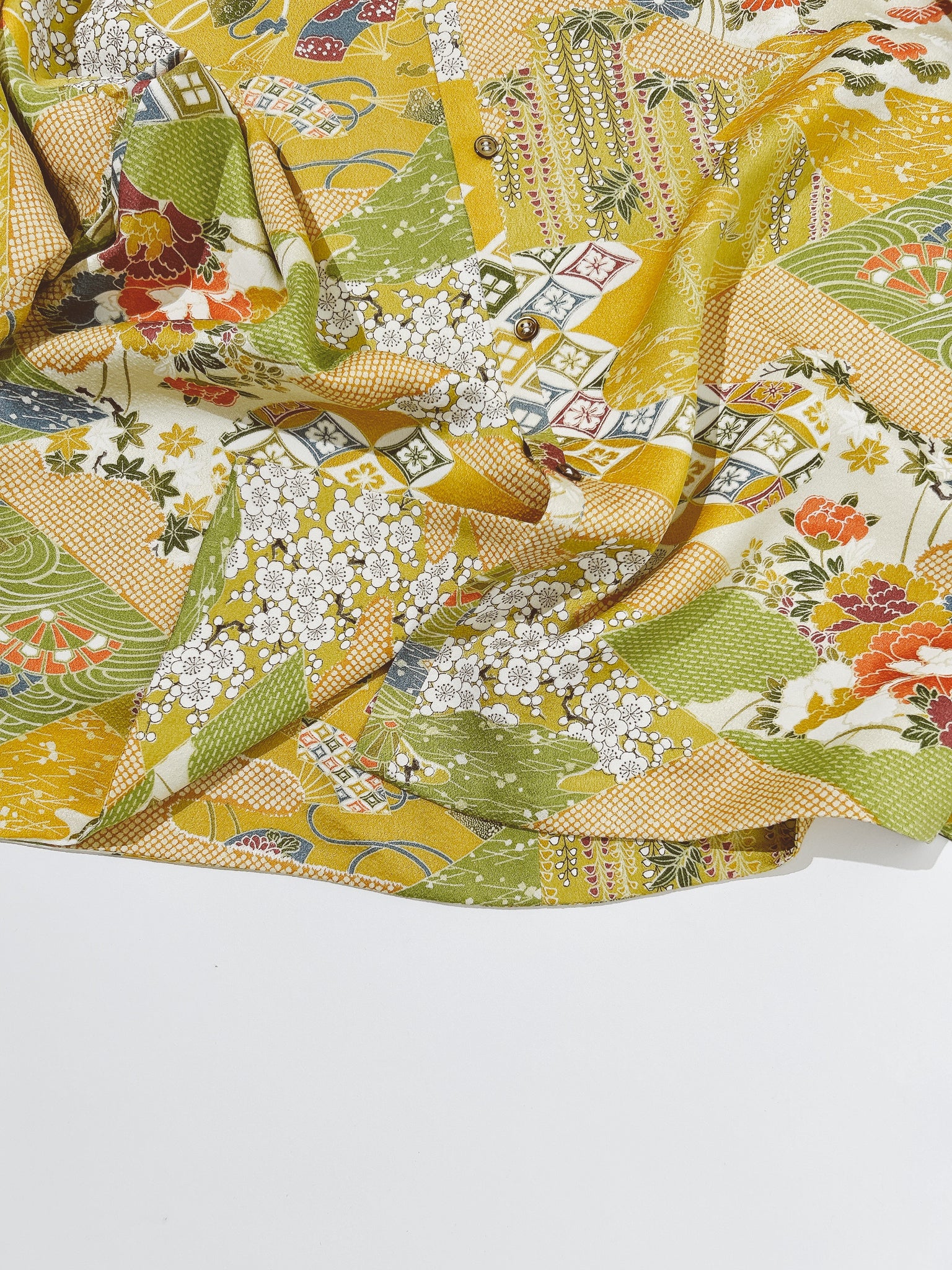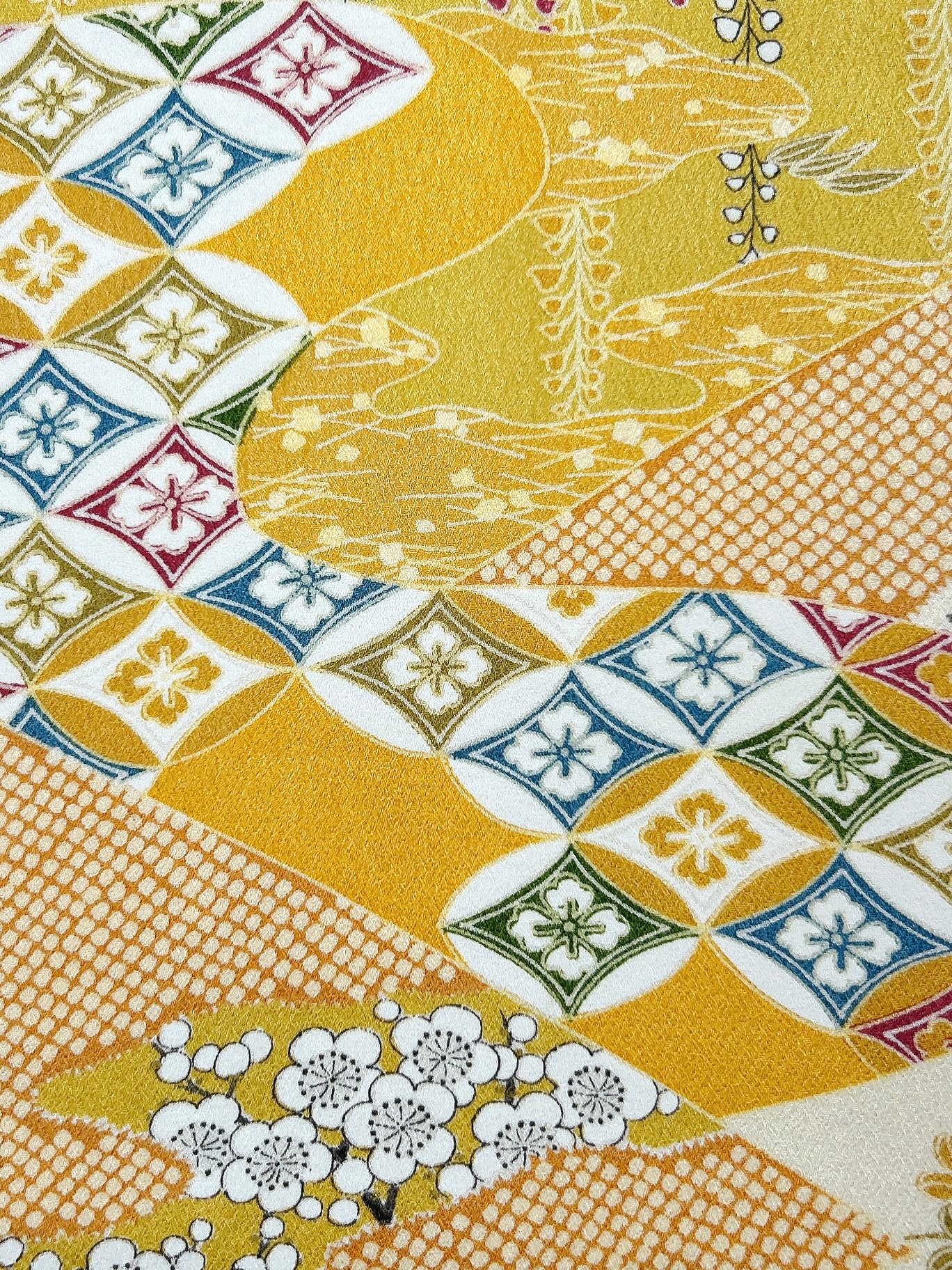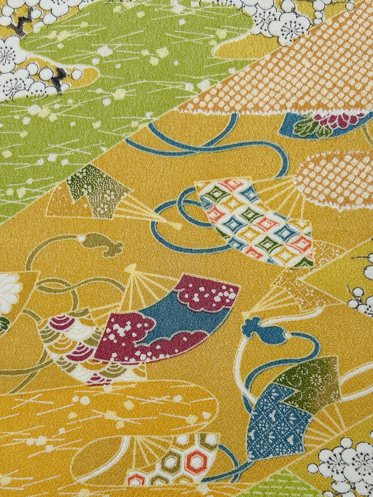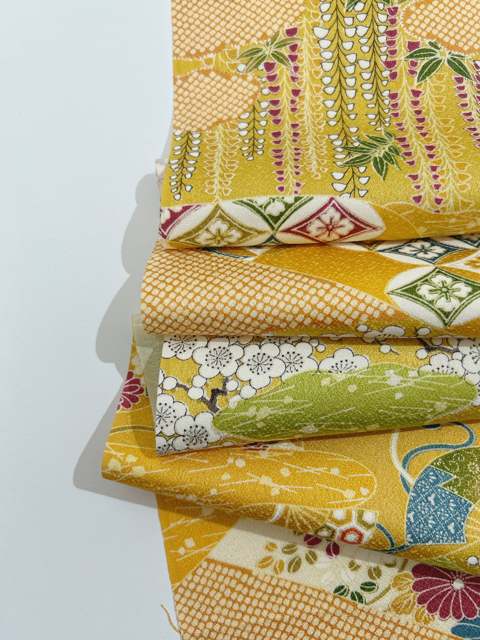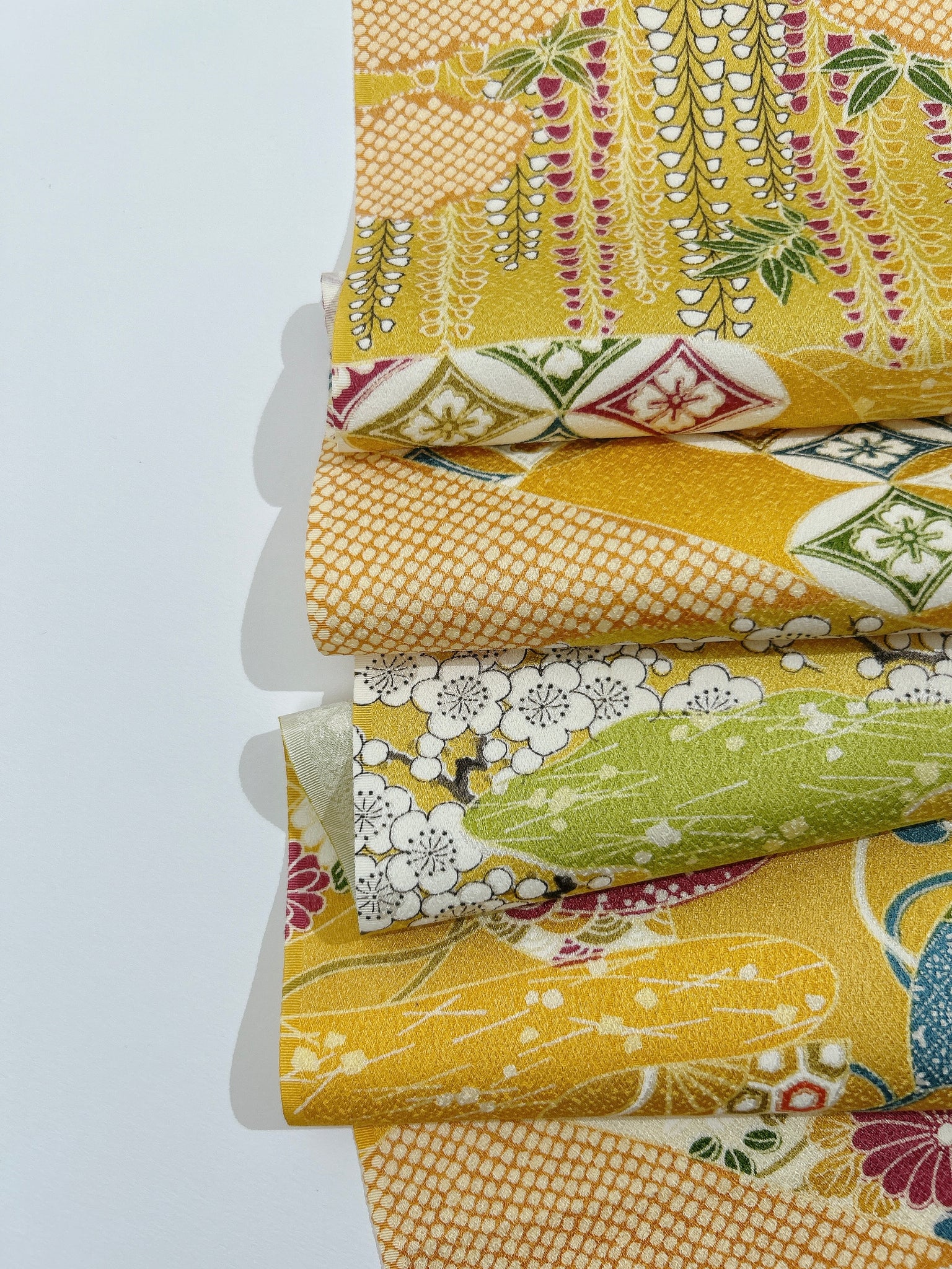 ⁑着物はシミや汚れ破れなどがつきもう着物としては着ることが難しくなったものや、ヴィンテージ、現代着物まで幅広く使用しておりますのでなるべくシミ汚れは逃がして仕立てております。が場合によっては少々アク、シミが付いてるものもございます。古いお着物の時代と時間の経過で現れるものですご理解のほどよろしくお願いもうしあげます。