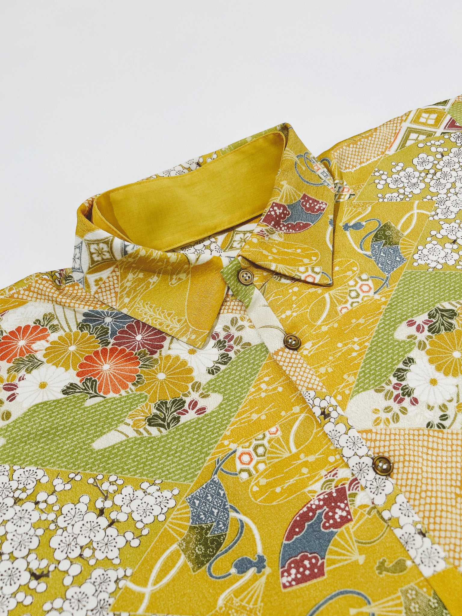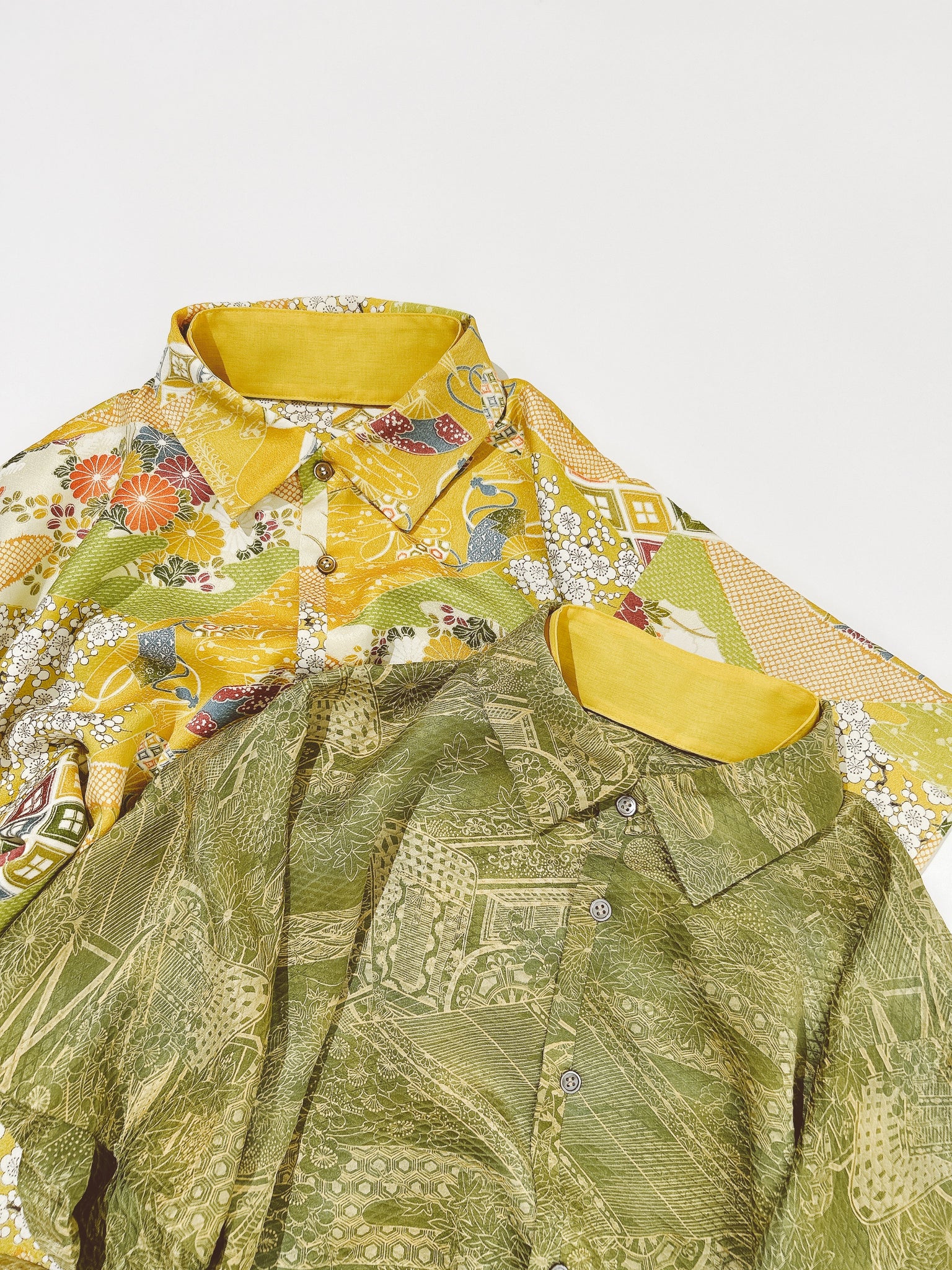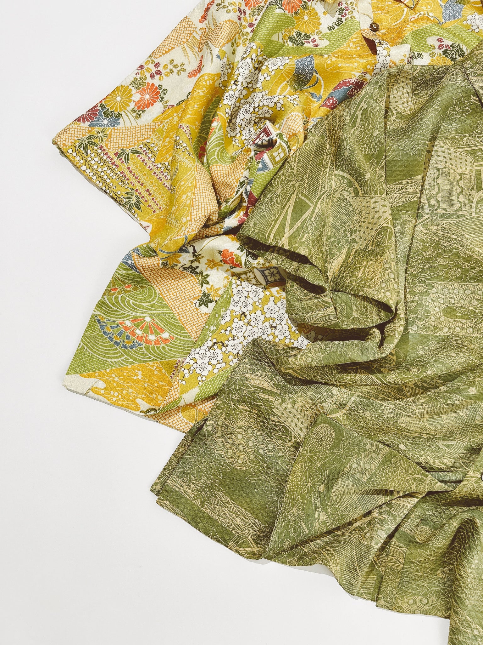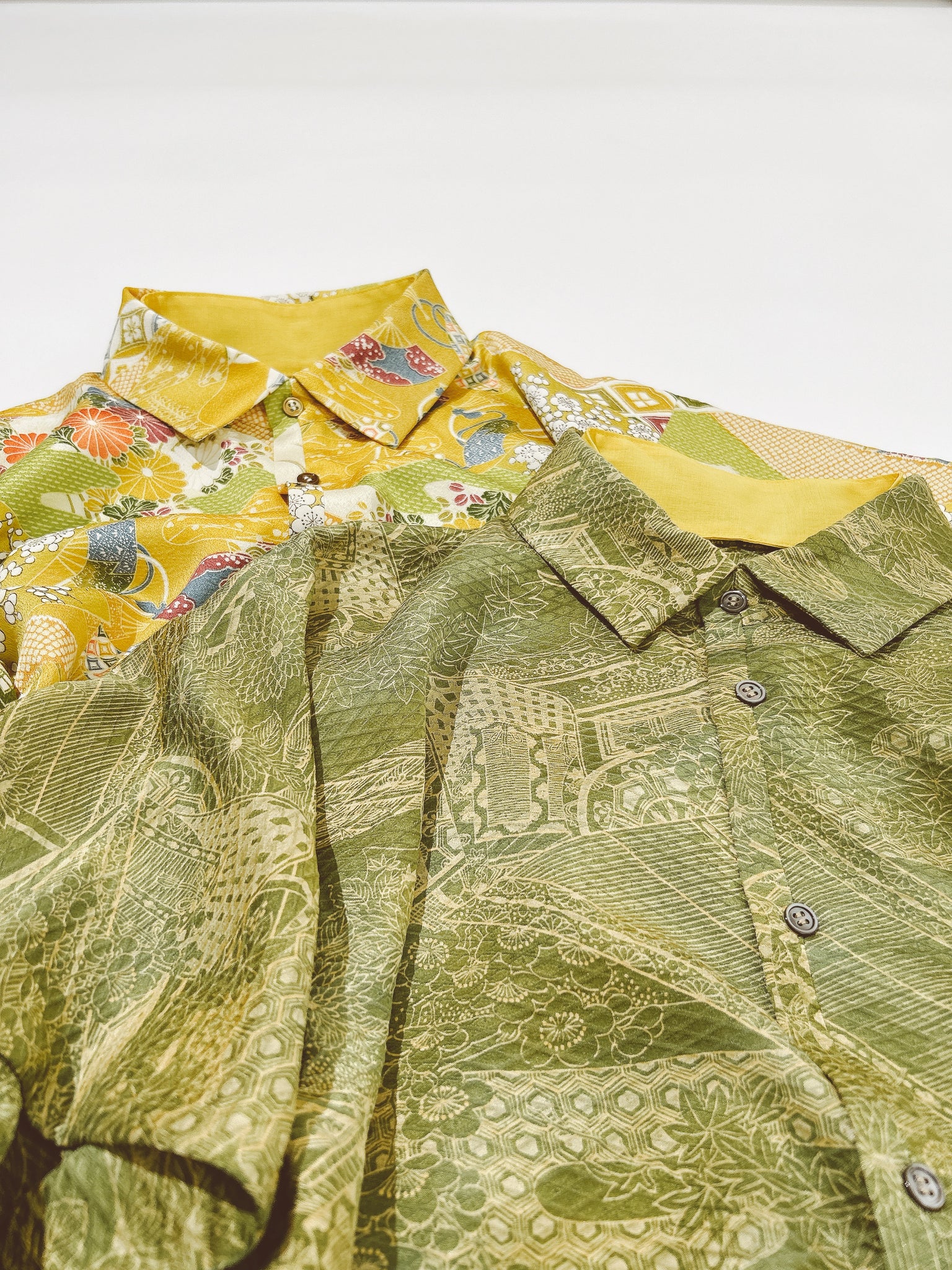 羽織・着物の形を元にシャツの型紙を起こしたデザインに進化しました。
