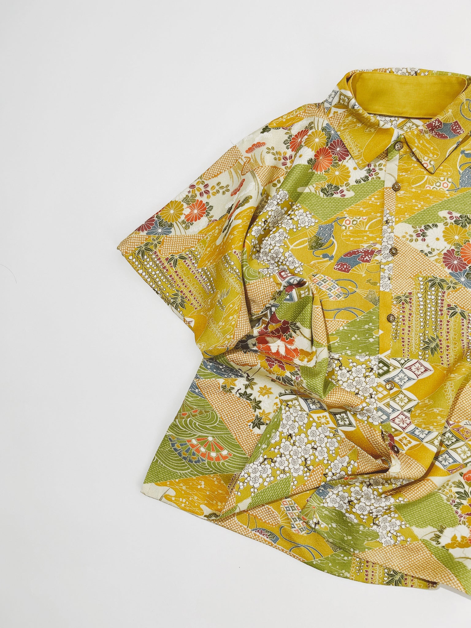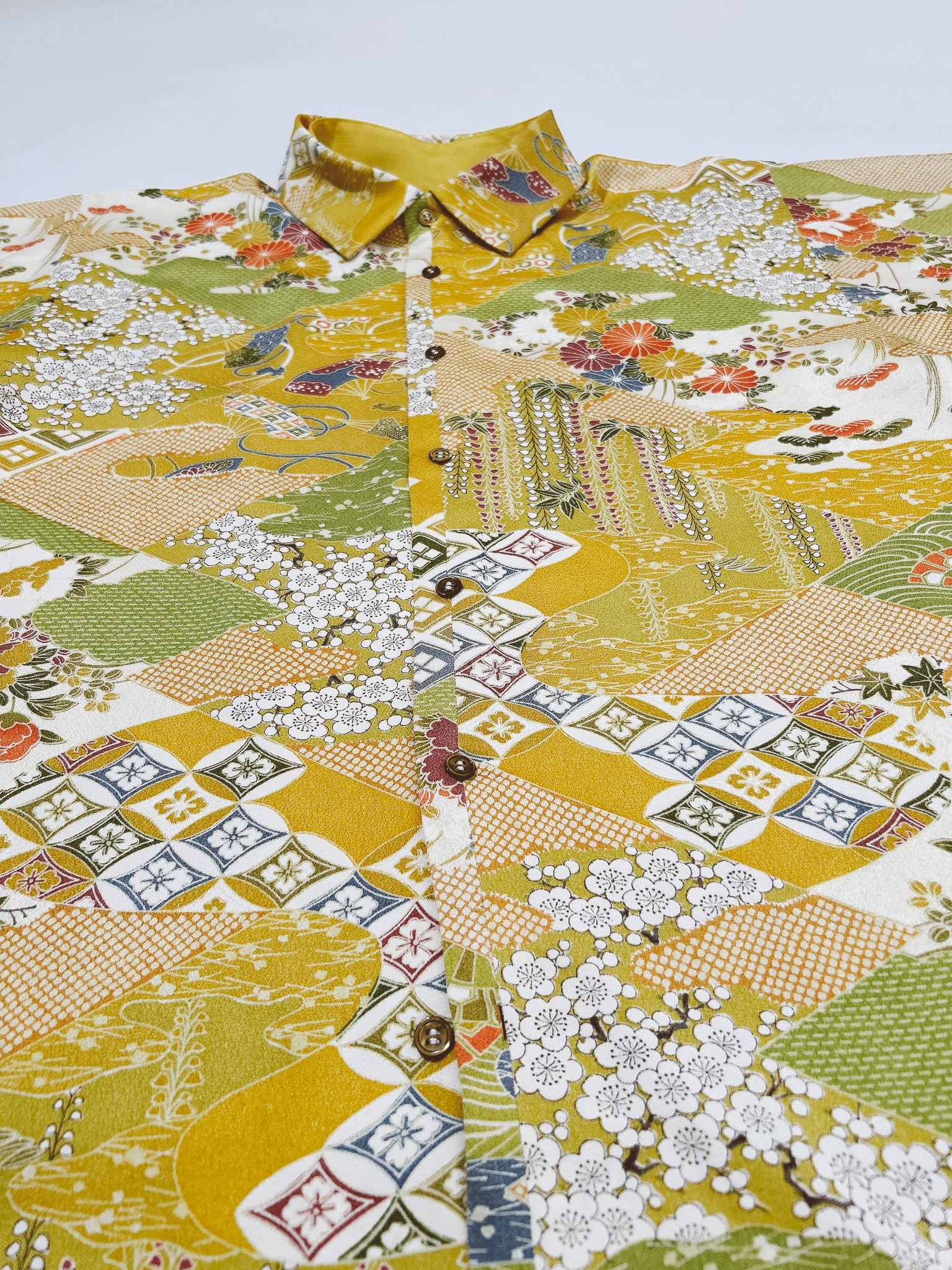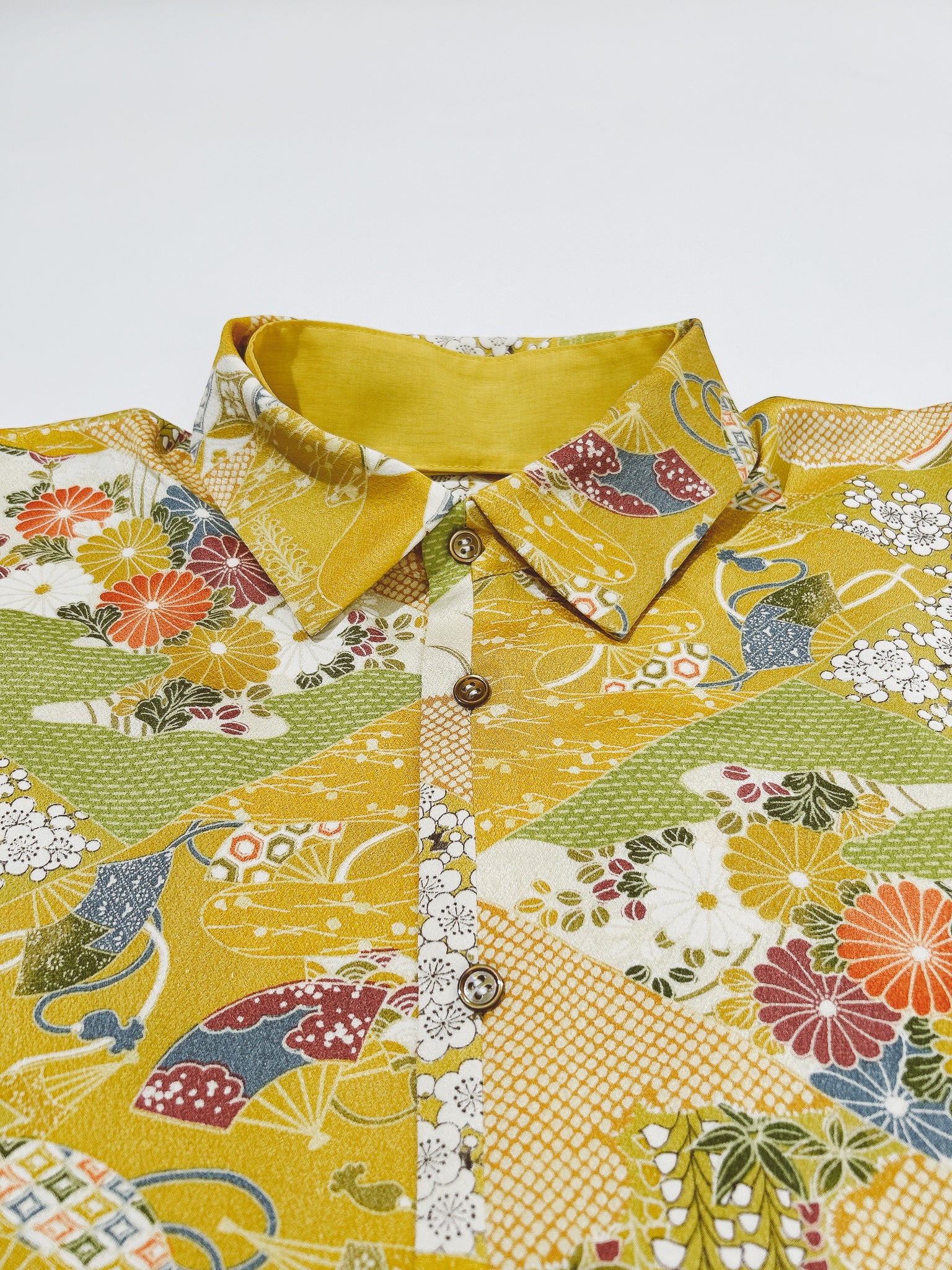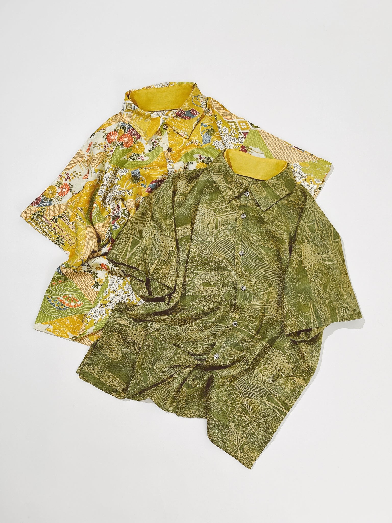 羽織・着物の形を元にシャツの型紙を起こしたデザインに進化しました。