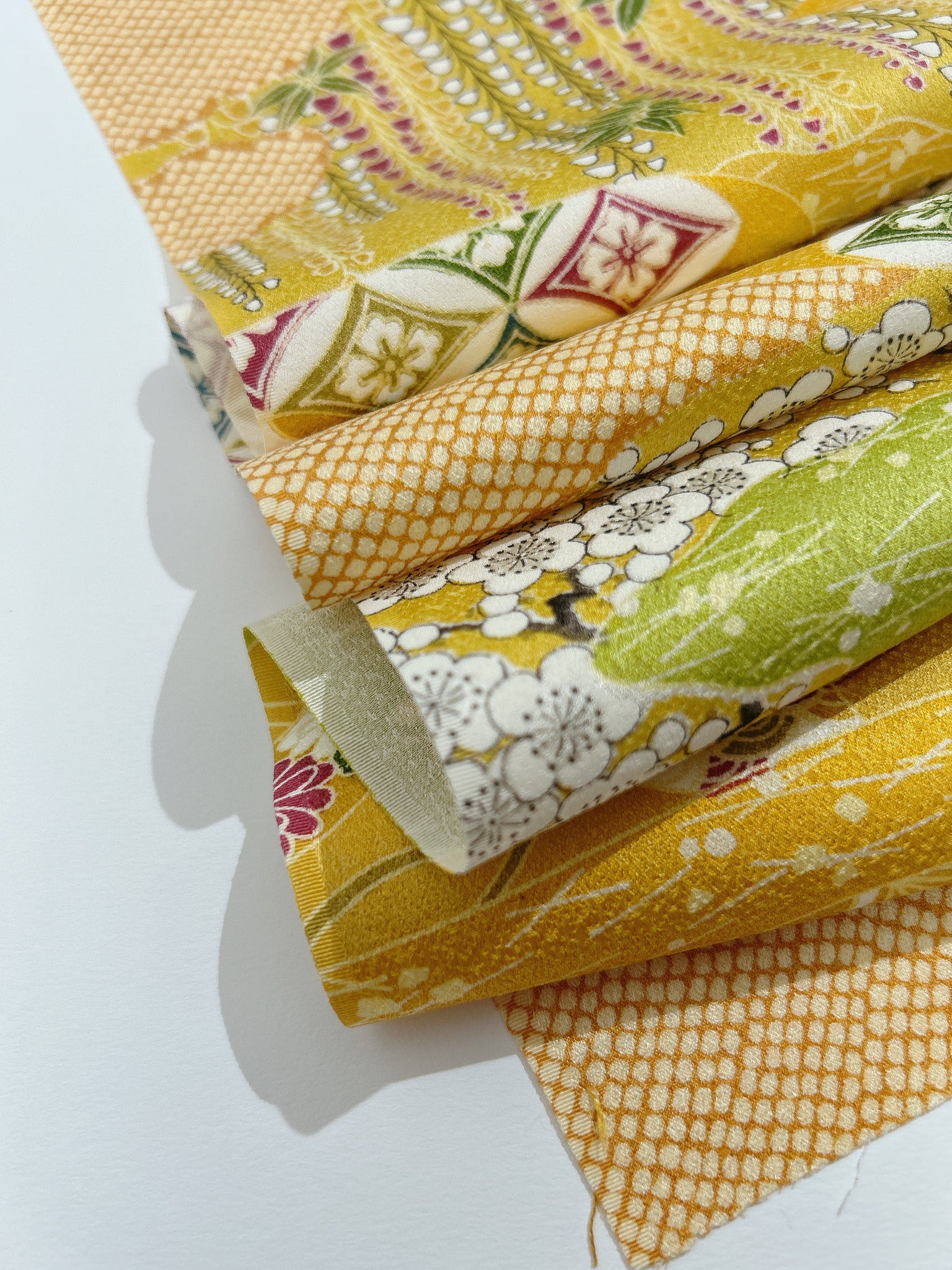 keniamariliaでは古着のお着物を使用しております。事前に洗剤を使用しよく洗い香りをはらった後お仕立てしておりますがときどき古着着物特有の香りが若干残るものもございます。古着の香りは日常で日光にあたったり空気に触れたり洗いを繰り返してるうちに弱くなり落ちるようになるものでございます。万が一香りが強く残ってしまいお肌に合わないものがございましたらお手数ですがお問い合わせより一報くださいませ。
