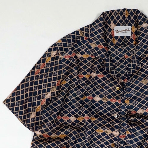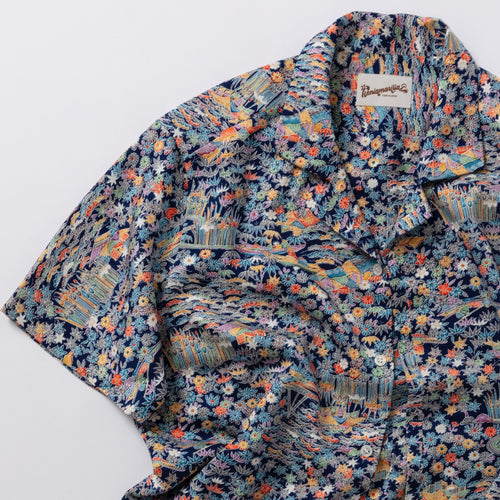 kenismariliaオリジナル企画のシャツ「ケニシャツ」和裁の技法を取り入れた一反を贅沢に使って仕立てた一点限りのお品です。