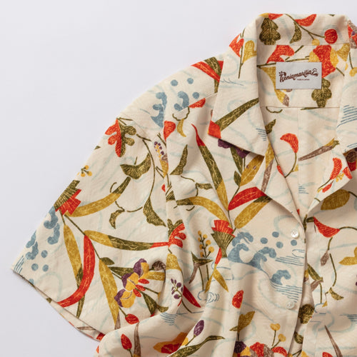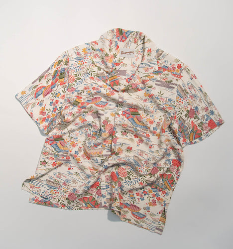 kenismariliaオリジナル企画のシャツ「ケニシャツ」和裁の技法を取り入れた一反を贅沢に使って仕立てた一点限りのお品です。