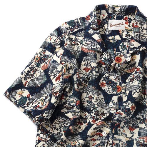 kenismariliaオリジナル企画のシャツ「ケニシャツ」和裁の技法を取り入れた一反を贅沢に使って仕立てた一点限りのお品です。