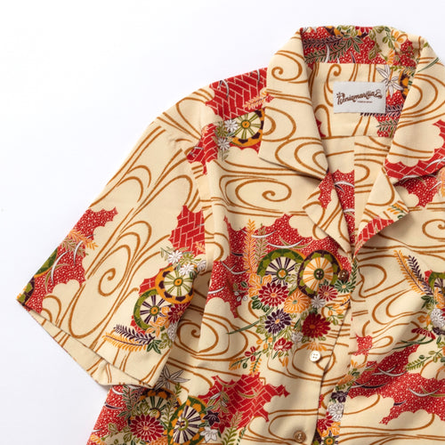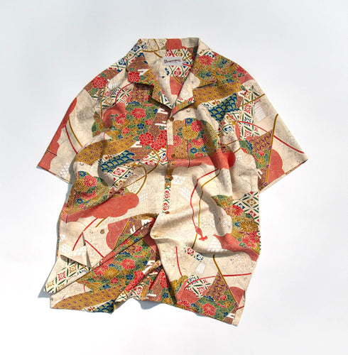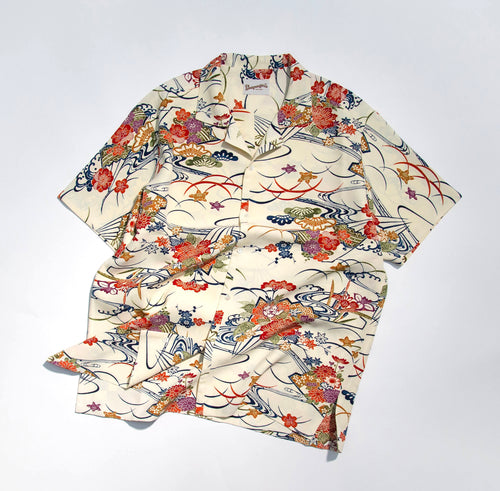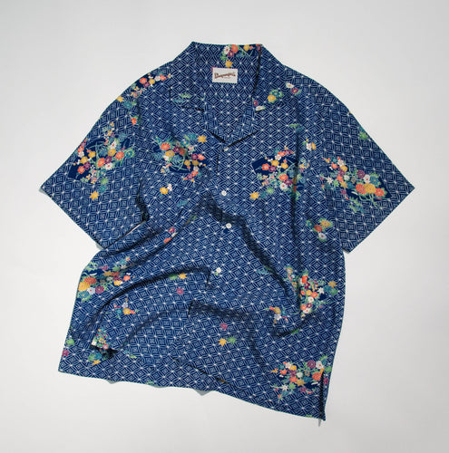 kenismariliaオリジナル企画のシャツ「ケニシャツ」和裁の技法を取り入れた一反を贅沢に使って仕立てた一点限りのお品です。