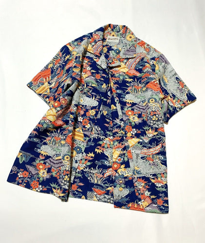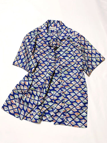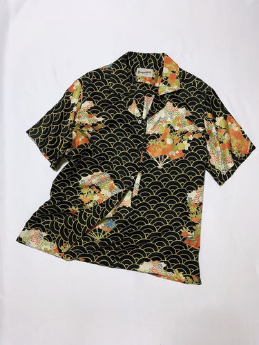 扇面に花・古典柄模様(地紋入り)【M・ケニシャツ】