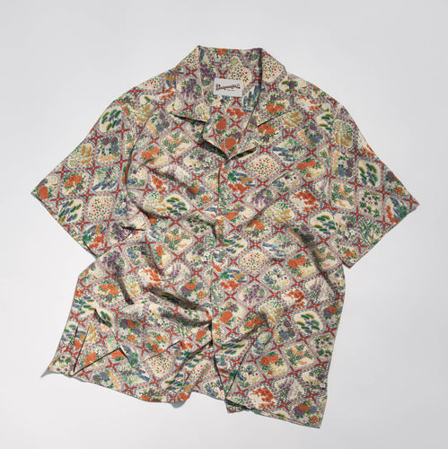 kenismariliaオリジナル企画のシャツ「ケニシャツ」和裁の技法を取り入れた一反を贅沢に使って仕立てた一点限りのお品です。