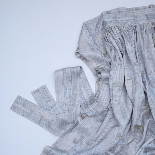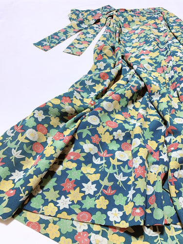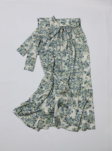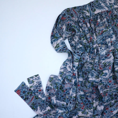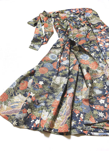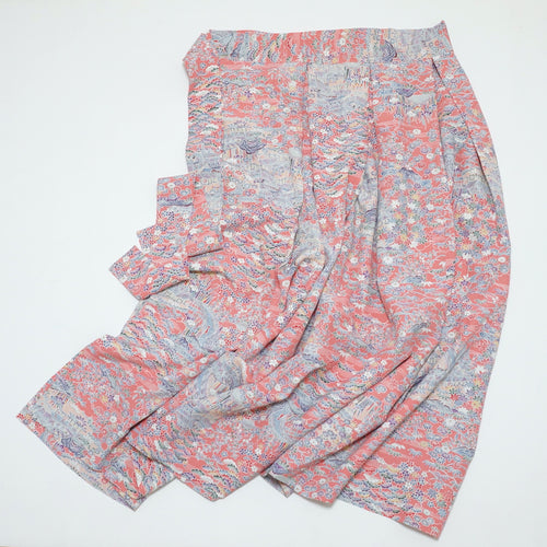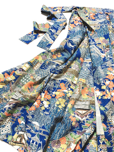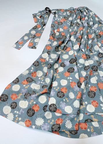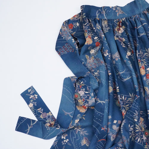 流水に家屋花鳥模様【ギャザーラップスカート】