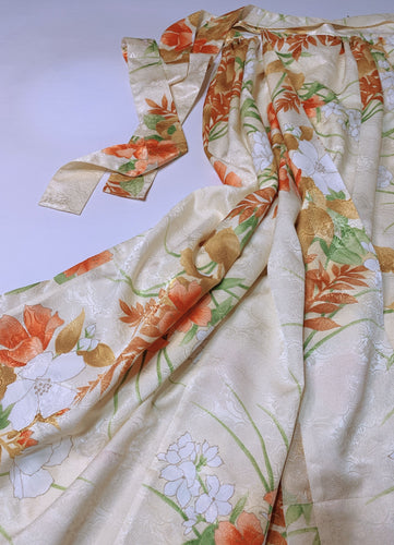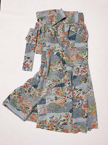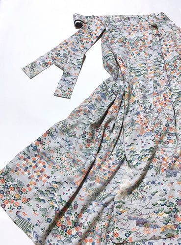 アンティーク大正ロマン流水に草花橋模様(正絹地紋つき)