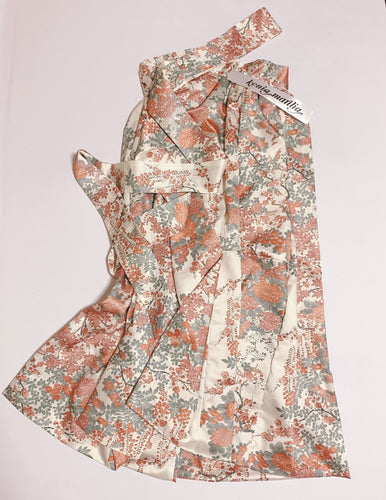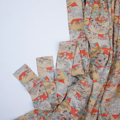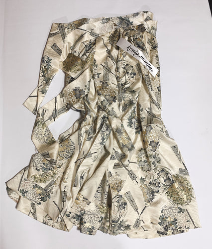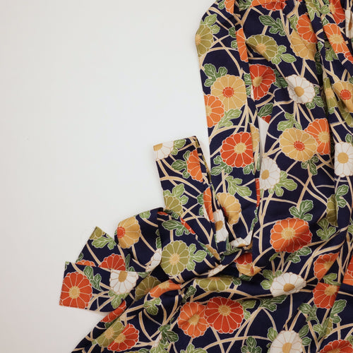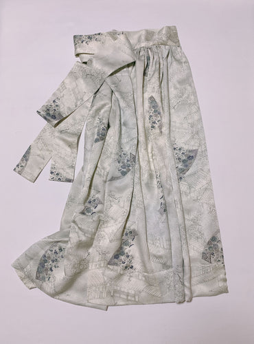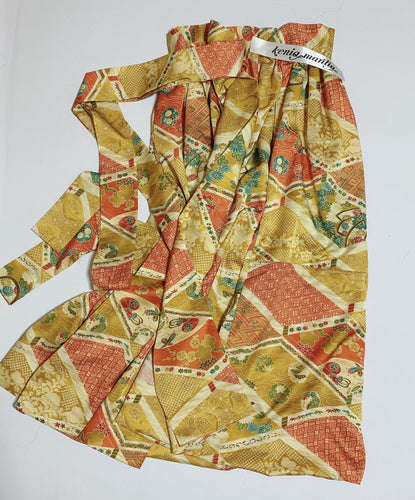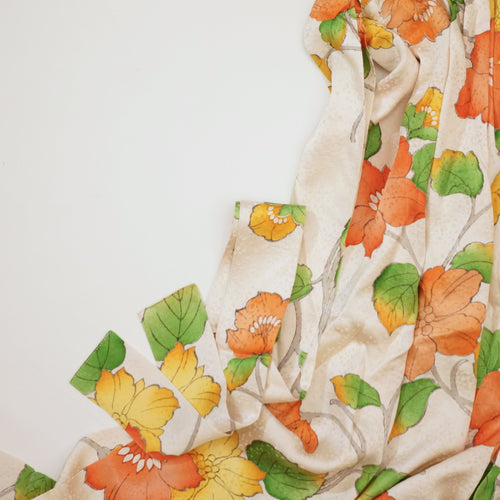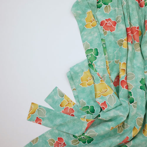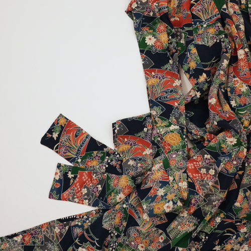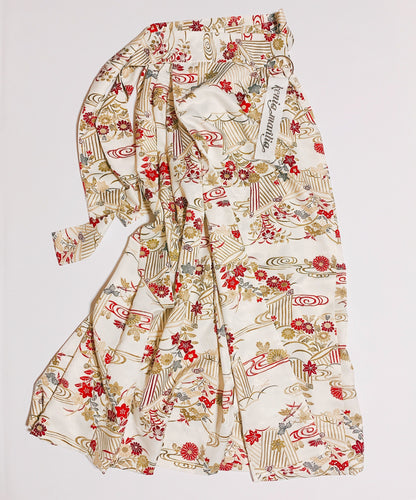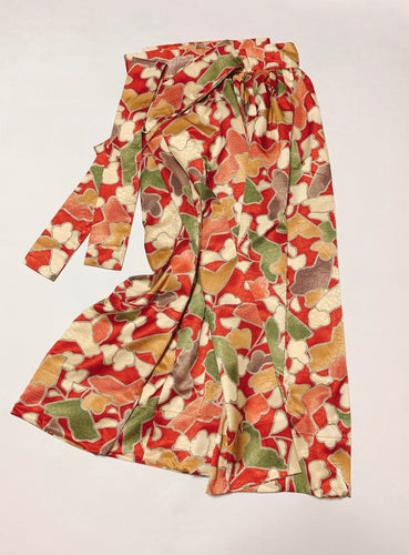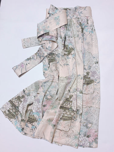 ビンテージ花模様ラップスカート(地紋なし縮絹)