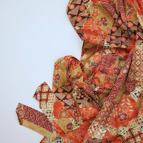 青海波に梅菊楓模様【ギャザーラップスカート】